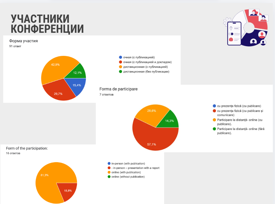 Conferința a reunit studenți și masteranzi din 20 de instituții de învățământ din Republica Moldova și din străinătate. În program au fost incluși participanți ai universităților de stat din 10 țări: Republica Moldova, România, Ucraina, Turcia, Rusia, Azerbaidjan, Kazahstan, Uzbekistan, Polonia și Bulgaria, precum și ai Colegiului „Mihail Ciachir” din municipiul Comrat.