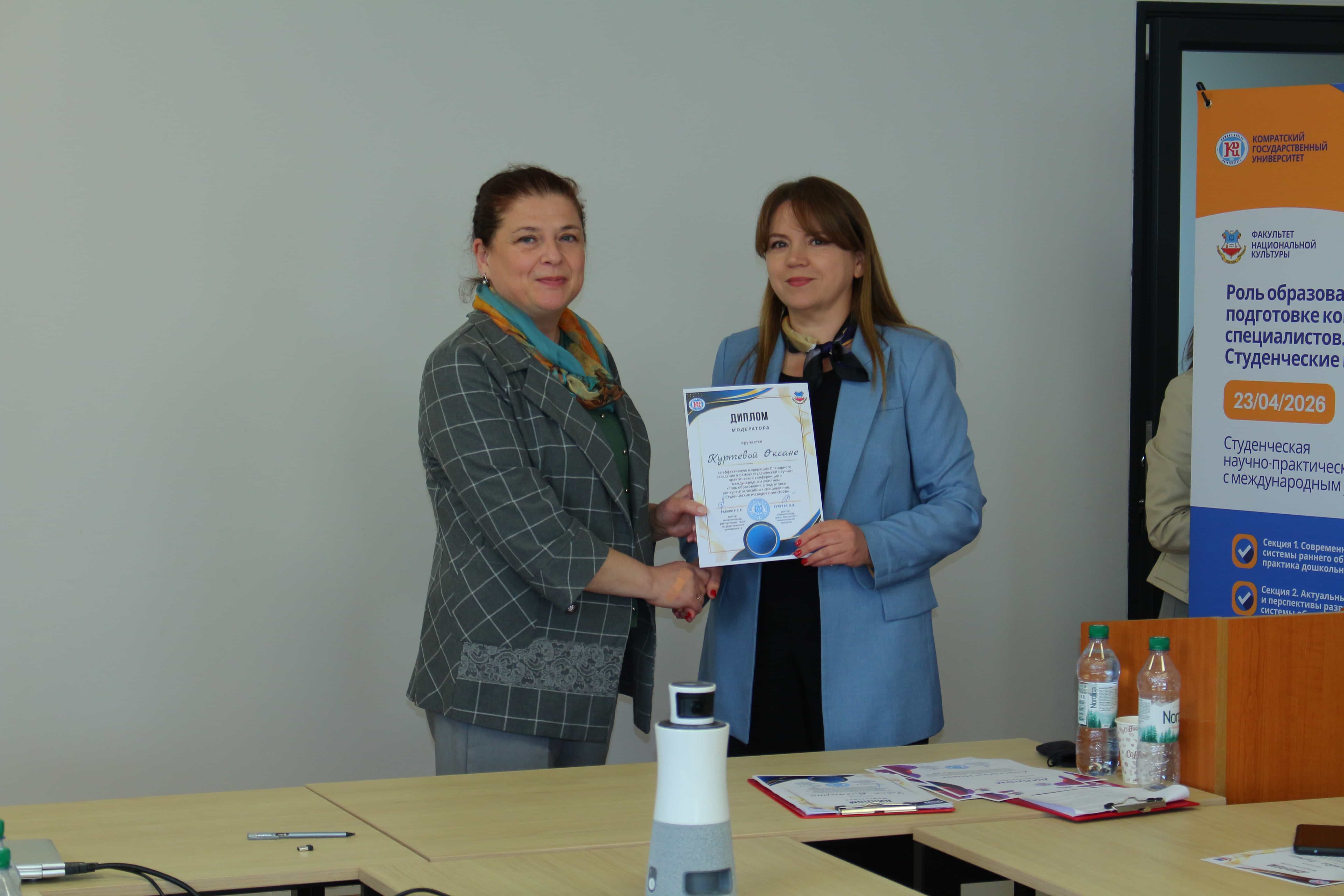 În conformitate cu Planul activității de cercetare științifică, la 23 aprilie 2026, la Facultatea de Cultură Națională s-a desfășurat Conferința științifico-practică a studenților cu participare internațională „Rolul educației în pregătirea specialiștilor competitivi. Cercetarea științifică a studenților–2026”, dedicată celei de-a 35-a aniversări a Universității de Stat din Comrat. Conferința s-a desfășurat în format mixt – online și offline. Programul manifestării, în cadrul căreia a fost prevăzut și un concurs pentru selectarea celor mai bune cercetări și a prezentărilor acestora, a inclus: ședința plenară, activitatea în cinci secțiuni, totalizarea rezultatelor și premierea studenților-câștigători.