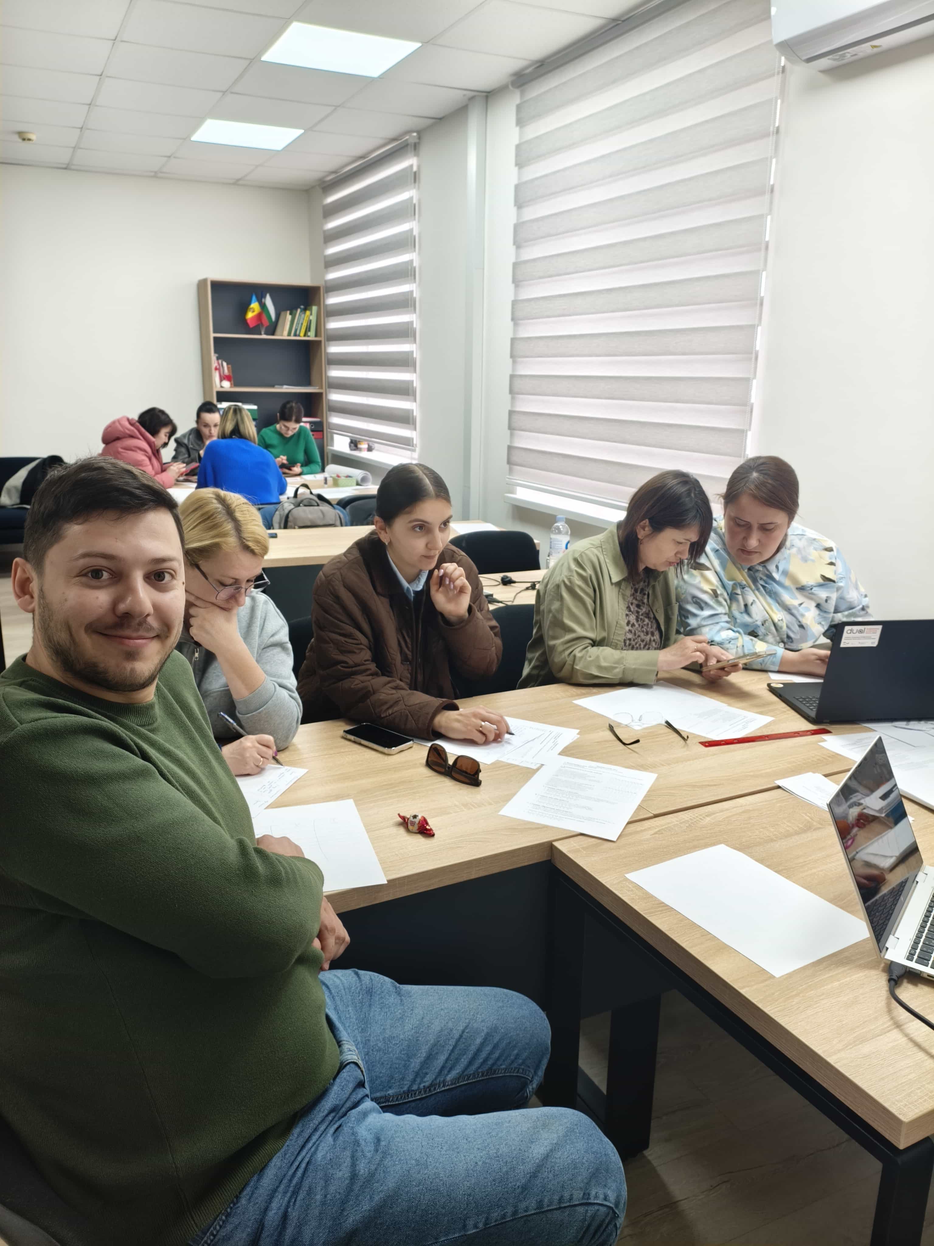 Activitatea a fost organizată în conformitate cu modelul „Rotația stațiilor” al tehnologiei de învățare mixtă. În etapa inițială, masteranzii au fost repartizați în trei grupuri, fiecare lucrând la o stație educațională distinctă: stația de lucru cu profesorul, stația de învățare online și stația de activitate proiectuală. Pe parcursul lecției, grupurile s-au deplasat succesiv de la o stație la alta, ceea ce a permis fiecărui participant să activeze în fiecare zonă și să experimenteze diverse formate de activitate didactică.