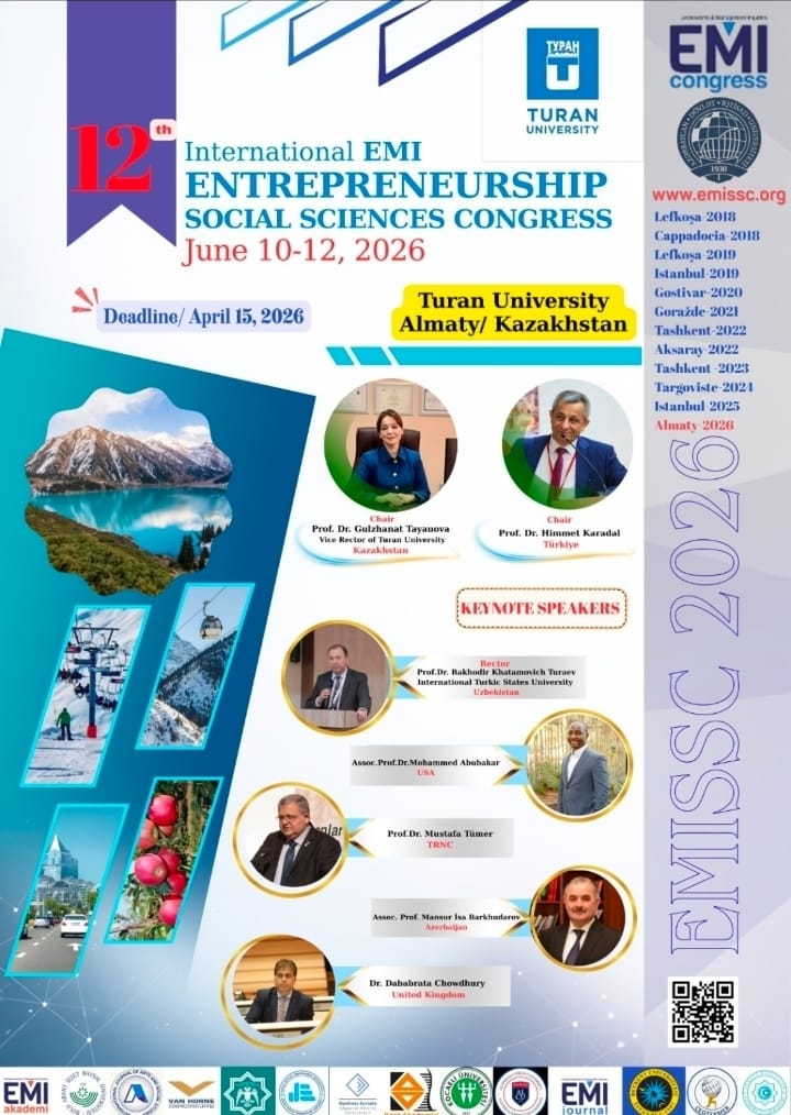 Vă invităm să participați la al 12-lea Congres Internațional EMI privind antreprenoriatul și științele sociale, care va avea loc în perioada 10–12 iunie 2026 la Turan University (Almaty, Kazahstan).