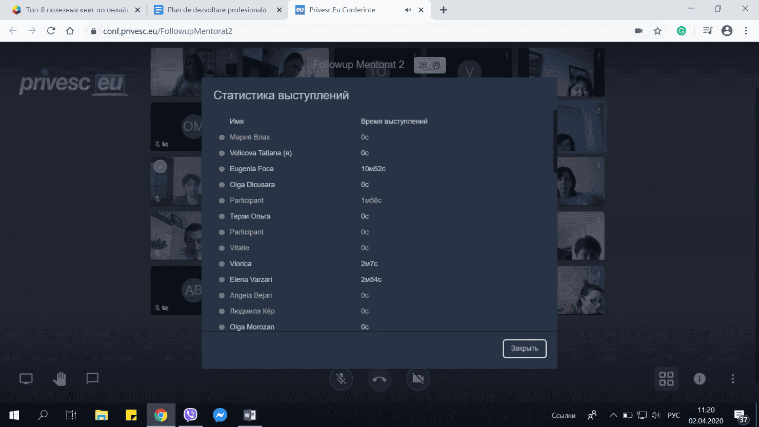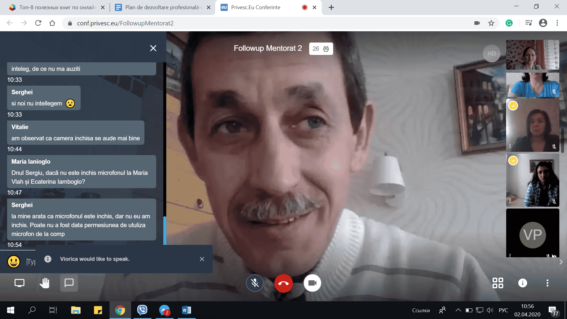 La 2 aprilie curent, 9 profesori universitari de la Universitatea de Stat din Comrat, alături de reprezentanții universităților-partenere: Universitatea de Stat din Moldova și Universitatea de Stat „Alecu Russo” din Bălți, utilizând platforma Privesc.Eu, au participat la un seminar on-line de dezvoltare profesională cu privire la problematica mentoratului.