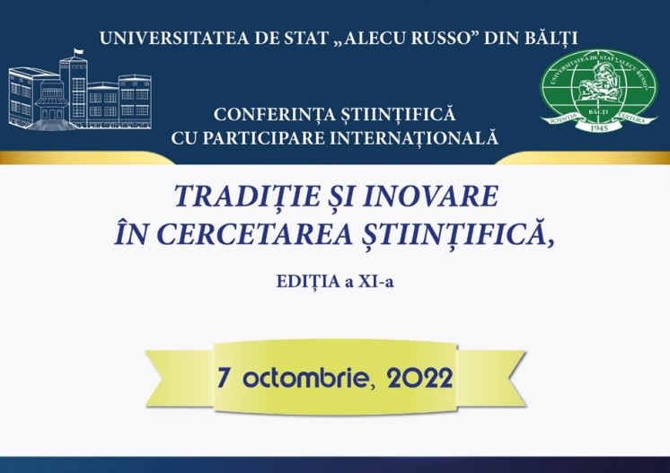 Universitatea de Stat „Alecu Russo” din Bălţi organizează în data de 7 octombrie 2022, Conferința științifică cu participare internaţională, TRADIŢIE ŞI INOVARE ÎN CERCETAREA ŞTIINŢIFICĂ, ediţia a XI-a, inclusă în Registrul național al manifestărilor ştiinţifice pentru anul 2022!
