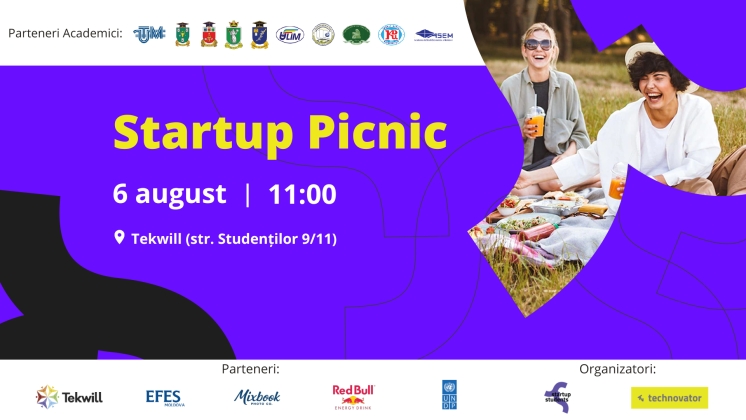 Comunitatea „Startup Students” invită studenții la cel mai tare eveniment al sfârșitului verii „Startup Picnic”, parte a Programului „Startup Students”, care va avea loc în data de 6 august, în intervalul orelor 11:00 – 18:00, în față la Tekwill.