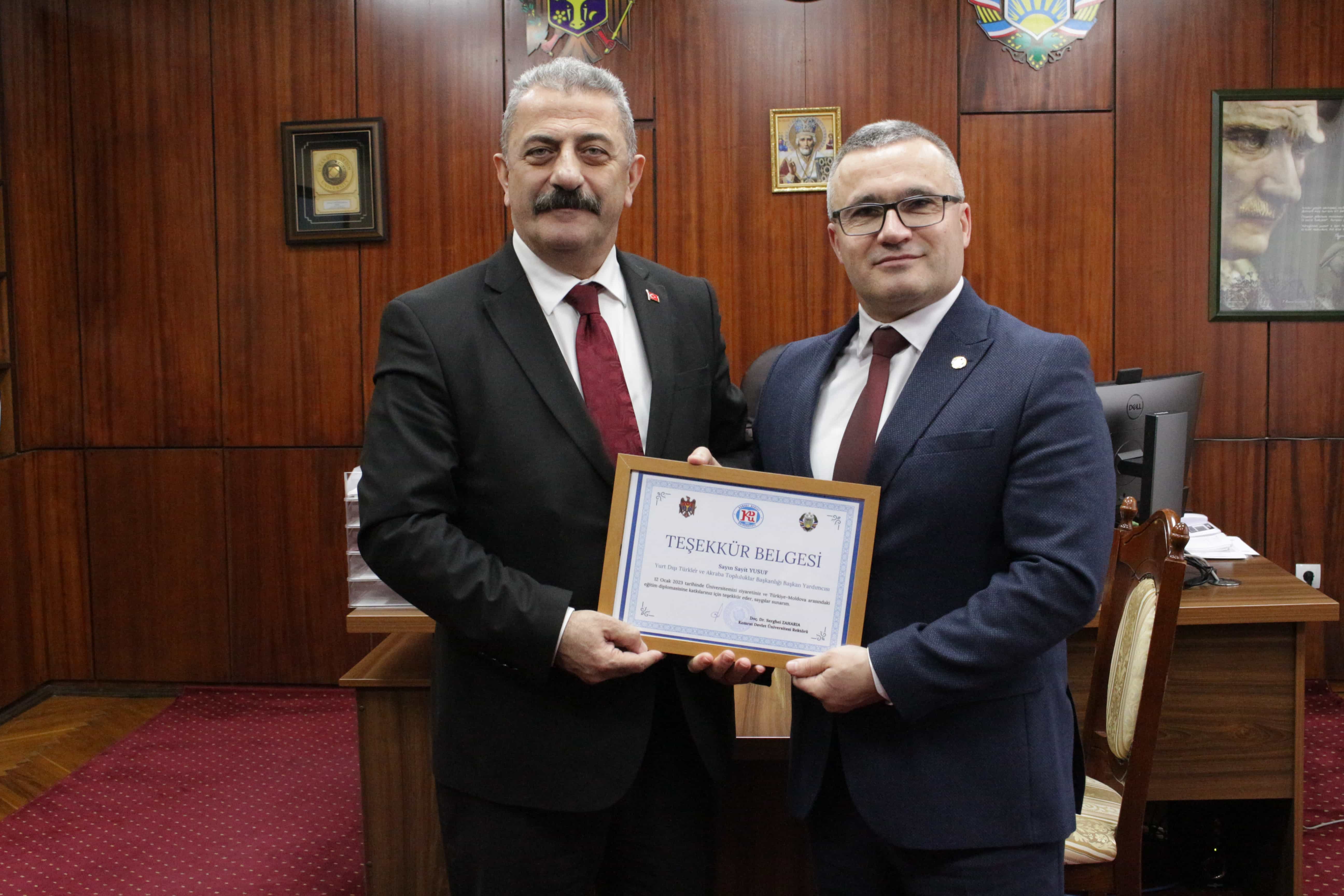 Vizita s-a încheiat cu primirea oaspeților în biroul rectorului Universității de Stat din Comrat și prezentarea certificatelor de mulțumire.