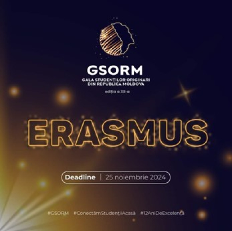 Studenții, masteranzii și absolvenții Universității de Stat din Comrat sunt invitați de Biroul Național Erasmus+ din Republica Moldova să participe la Gala Studenților Originari din Republica Moldova (GSORM), care va avea loc la finele lunii decembrie 2024. Gala Studenților Originari din Republica Moldova oferă posibilitatea de a împărtăși realizările în cadrul programului Erasmus+. Termenul limită pentru depunerea cererilor este 25 noiembrie 2024. Ora de începere și programul evenimentului vor fi disponibile în curând pe site-ul https://www.erasmusplus.md/