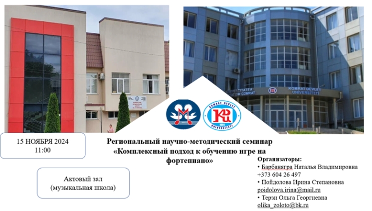 Seminarul regional științifico-metodic va avea loc pe 15 noiembrie 2024, la ora 11:00, în Sala de festivități a Școlii de Muzică pentru Copii „A. Valkov” (adresa: municipiul Comrat, Republica Moldova, str. Lenin 188)