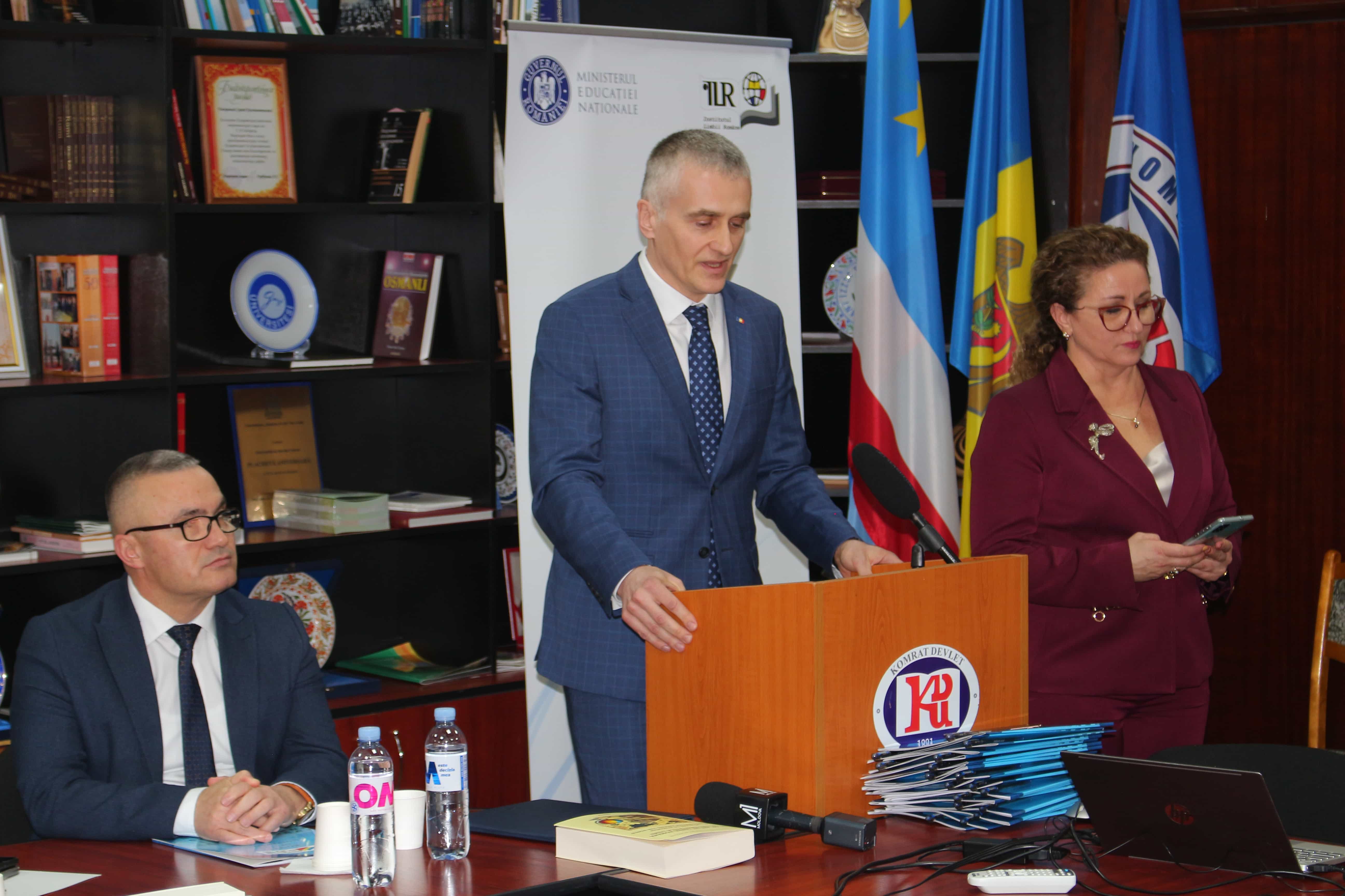 La data de 30 ianuarie 2025, în cadrul Universității de Stat din Comrat a fost reluată activitatea lectoratului de limba română. Reluarea activității acestuia a fost posibilă datorită sprijinului oferit de Ministerul Educației al României, Institutul Limbii Române din București (România), Departamentul pentru Relația cu Republica Moldova, Ambasada României în Republica Moldova și Universitatea de Stat din Comrat. Rectorul Universității de Stat din Comrat (USC), dr., conf. univ. Sergei Zaharia, a adresat un mesaj de bun venit invitaților și oaspeților evenimentului. Acesta a subliniat: „Reluarea activității lectoratului de limba română în cadrul USC va reprezenta un impuls semnificativ pentru dezvoltarea dialogului intercultural și consolidarea legăturilor educaționale în regiune, ceea ce nu doar că va extinde oportunitățile educaționale ale studenților și profesorilor noștri, dar va deveni și o punte importantă între diferite culturi, contribuind la înțelegere reciprocă și cooperare la nivel european.” De asemenea, secretarul de stat al Departamentului pentru Relația cu Republica Moldova din cadrul Guvernului României, domnul Adrian Dupu, care a participat la evenimentul desfășurat în USC, a menționat: „… acest moment reprezintă încă un exemplu al angajamentului României față de sprijinirea educației și păstrarea culturii și limbii române în Republica Moldova.” Dr., conf. Gina Necula, reprezentant al Institutului Limbii Române din București, a declarat, de asemenea, că reluarea acestei misiuni este un pas important pentru consolidarea relațiilor culturale și educaționale dintre România și UTA Găgăuzia (Republica Moldova). La eveniment au fost prezenți și au luat cuvântul distinși invitați: Excelența Sa, domnul Ovidiu-Viorel Neftănăilă, Prim-colaborator al Ambasadorului României în Republica Moldova; Excelența Sa, domnul Gabriel Nicola, Consulul General al României la Cahul, Republica Moldova; Excelența Sa, domnul Adnan Hayal, Consulul General al Republicii Turcia la Comrat, Republica Moldova; Dr. habilitat, lector universitar Ivan Duminică, Șeful Serviciului de politici în domeniul relațiilor interetnice din cadrul Ministerului Educației și Științei al Republicii Moldova; Domnul Narcis Ionuț Afrăsinei, Director adjunct al Institutului „Cultura Patrimoniului Românesc Mihai Eminescu” din Chișinău; Dr. habilitat, prof. universitar, Membru corespondent al Academiei de Științe a Republicii Moldova, domnul Emil Ceban, Președintele Consiliului Rectorilor din Republica Moldova, Rectorul Universității de Medicină și Farmacie „Nicolae Testemițanu” din Republica Moldova; Dr. habilitat, conferențiar universitar Sergiu Cornea, Rectorul Universității de Stat „B. P. Hasdeu” din Cahul; Dr., conferențiar universitar Lucia Cepraga, Prorector al Universității Pedagogice și de Psihologie „Ion Creangă” din Chișinău; Dr., conferențiar universitar Natalia Cristeva, Șefa Direcției Generale Educație a UTA Găgăuzia; Domnul Serghei Anastasov, Primarul mun. Comrat. În cadrul evenimentului, a fost subliniată importanța limbii române ca parte a patrimoniului cultural al Republicii Moldova și necesitatea păstrării acesteia în instituțiile de învățământ din regiunea multiculturală a UTA Găgăuzia. Toți vorbitorii și-au exprimat speranța privind dezvoltarea continuă și sprijinirea acestei inițiative, precum și extinderea oportunităților pentru studenți de a studia nu doar limba, ci și cultura, istoria și tradițiile României. În încheierea evenimentului, rectorul USC, dr., conf., univ. Sergei Zaharia, a adresat mulțumiri tuturor participanților și partenerilor pentru sprijin și colaborare.