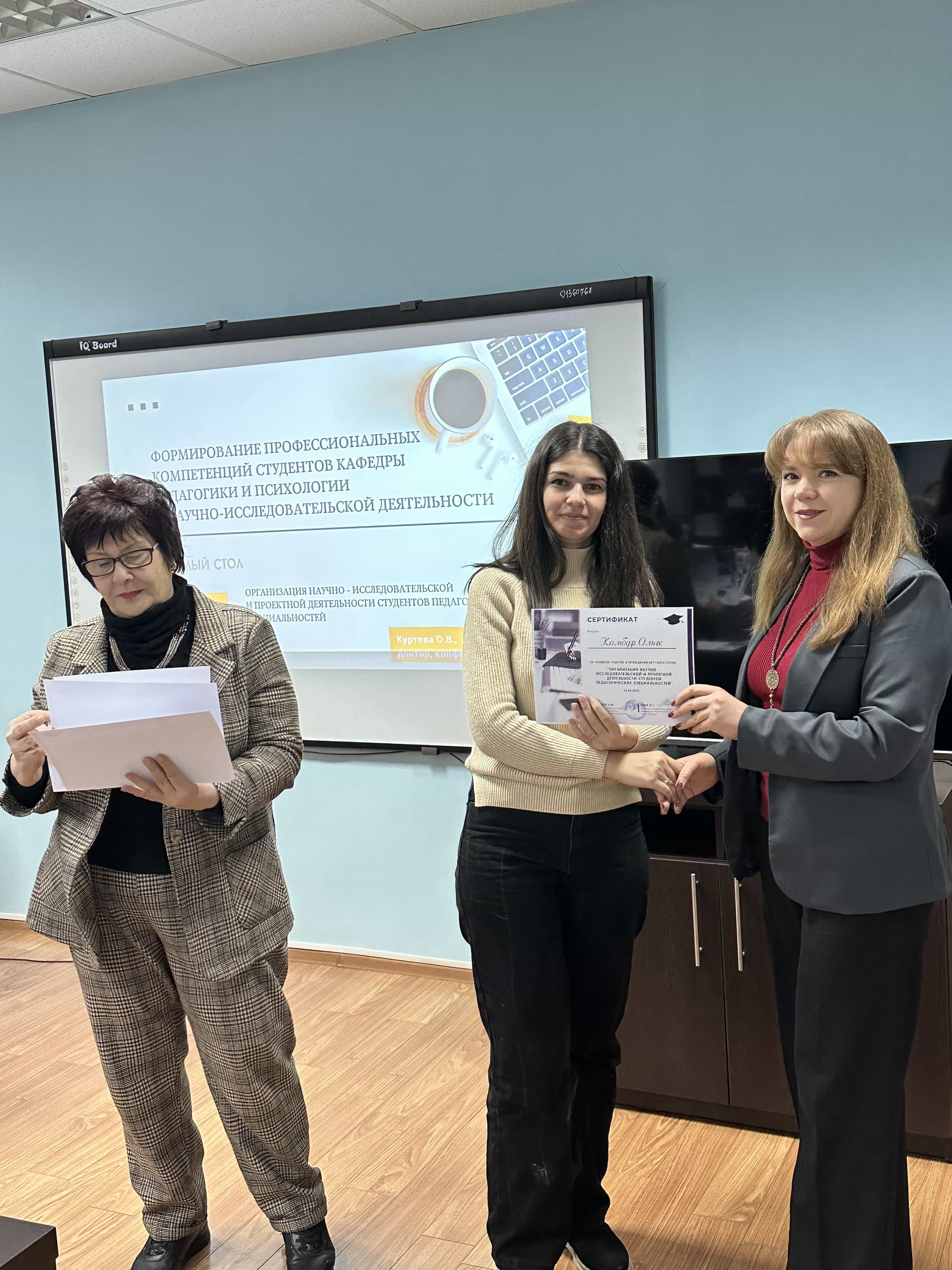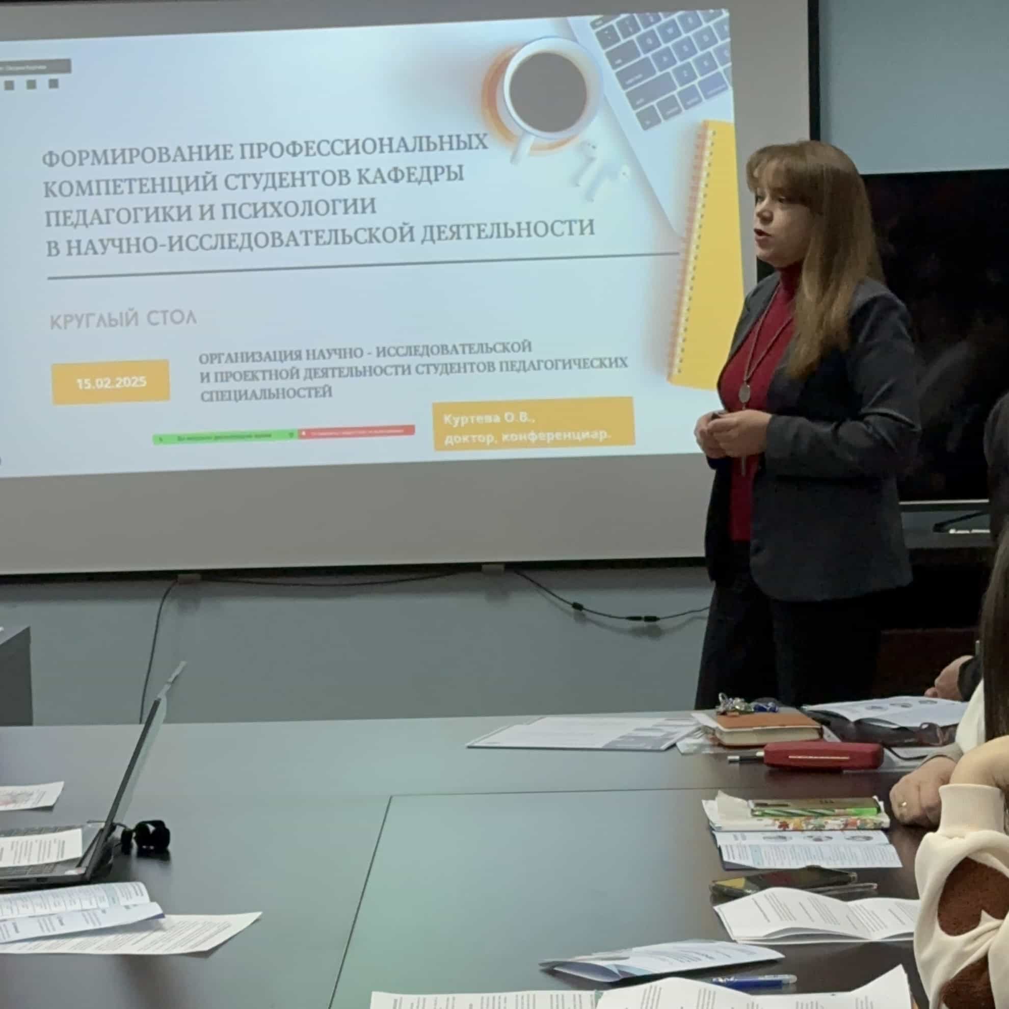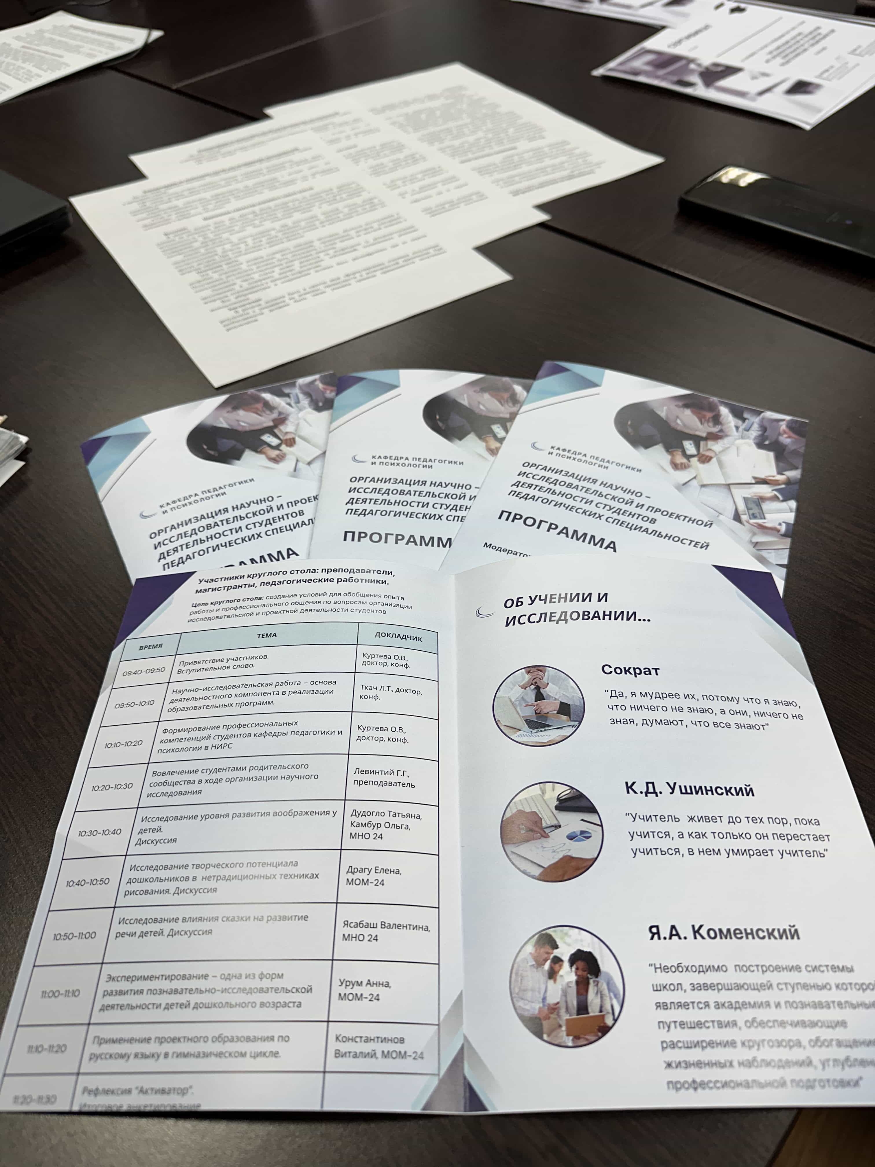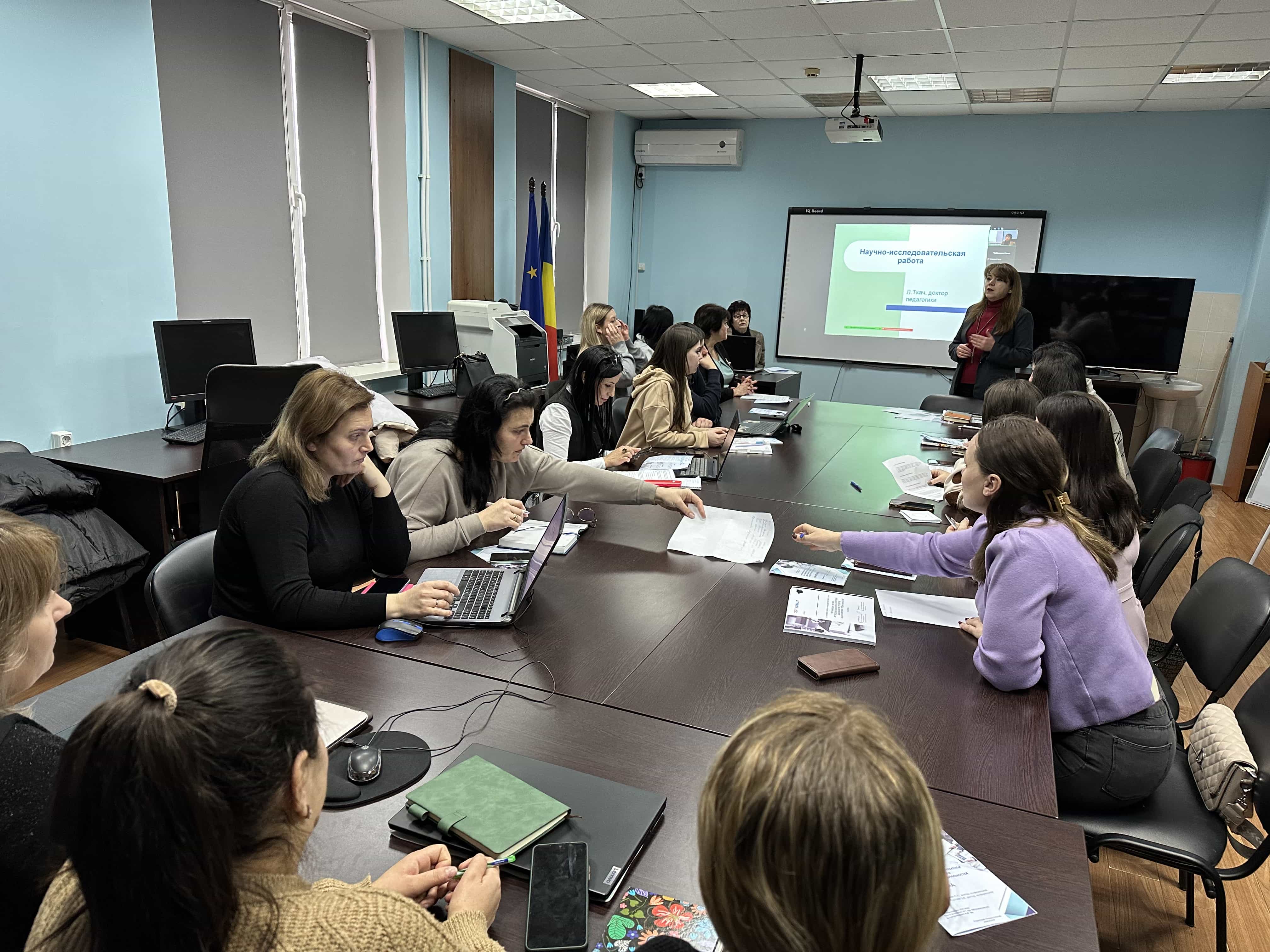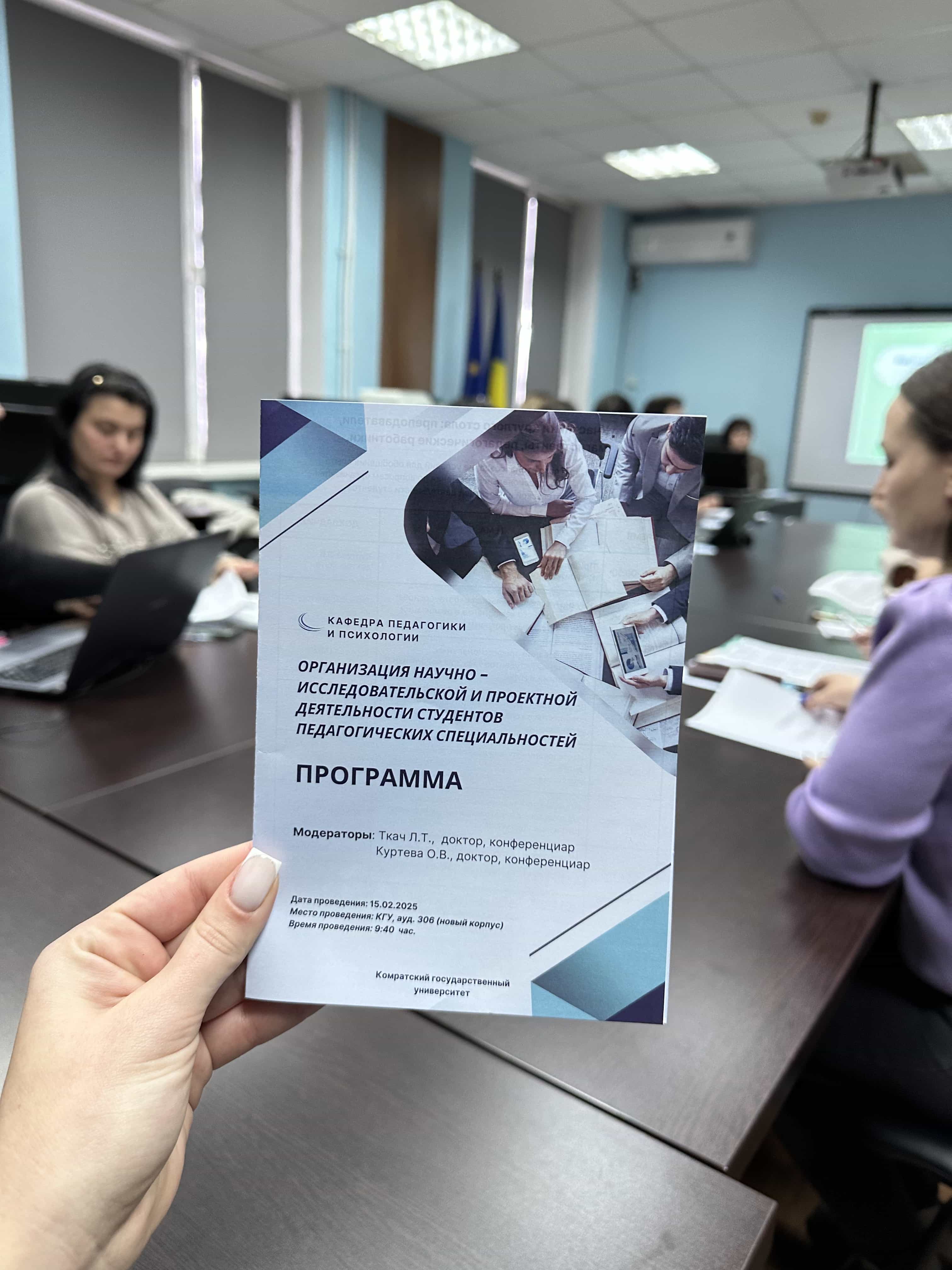 Pe 15 februarie 2025, în cadrul implementării Planului de activitate de cercetare al Catedrei de Pedagogie și Psihologie, a avut loc o masă rotundă cu tema „Organizarea activității de cercetare și proiectare a studenților specialităților pedagogice.” Evenimentul a fost organizat de profesorii catedrei: dr., lector Liubovi Tcaci și dr., conf. univ. Oxana Curteva, în colaborare cu studenții ciclului II (grupurile MOM-24 și MNO-24). Scopul platformei de discuții a fost schimbul de experiență și analiza problemelor actuale legate de metodologia organizării cercetării științifice. În raportul său, Liubovi Tcaci a evidențiat aspectele teoretico-metodologice ale organizării cercetării și a subliniat importanța formării culturii de cercetare a viitorilor pedagogi.