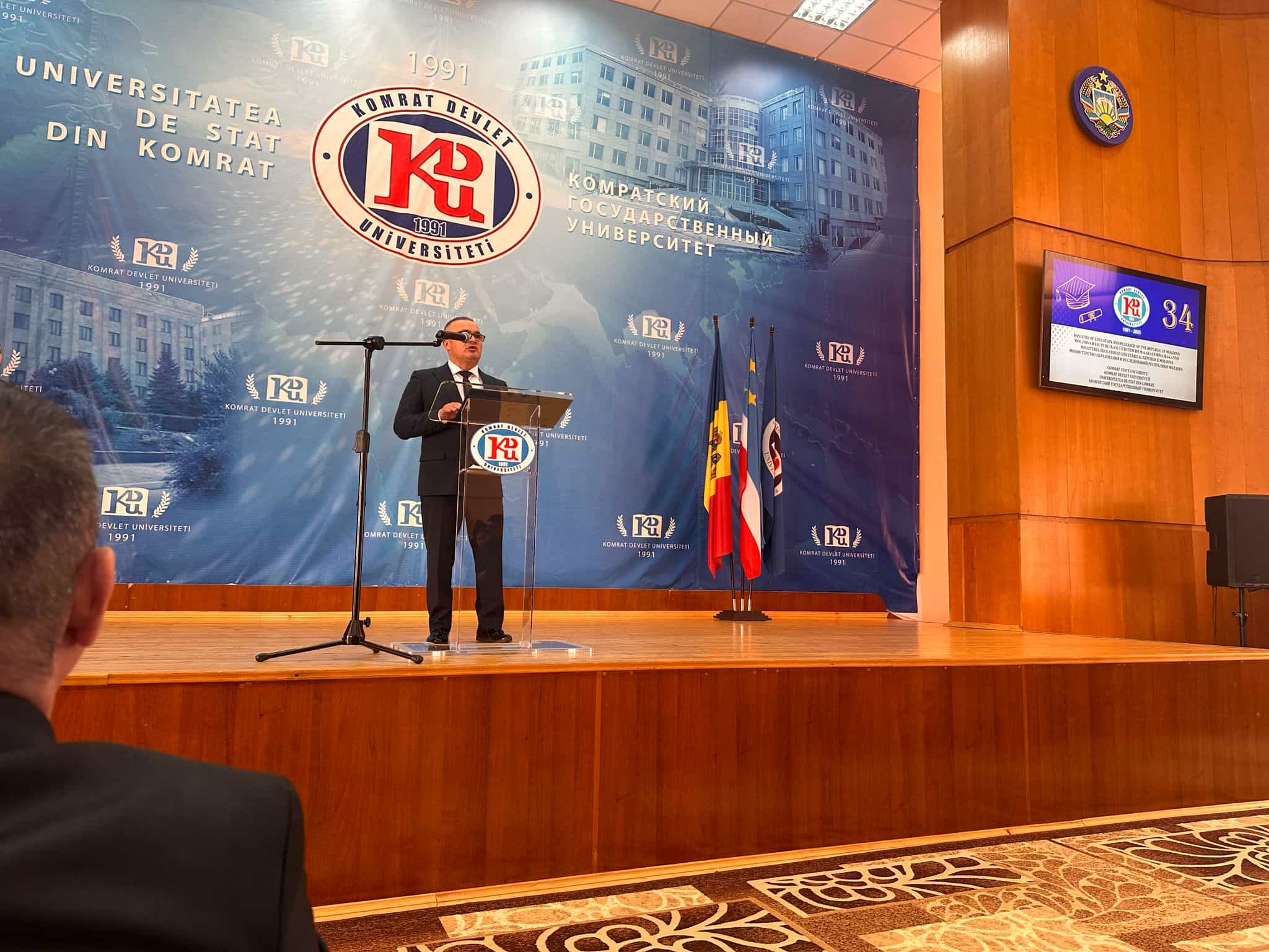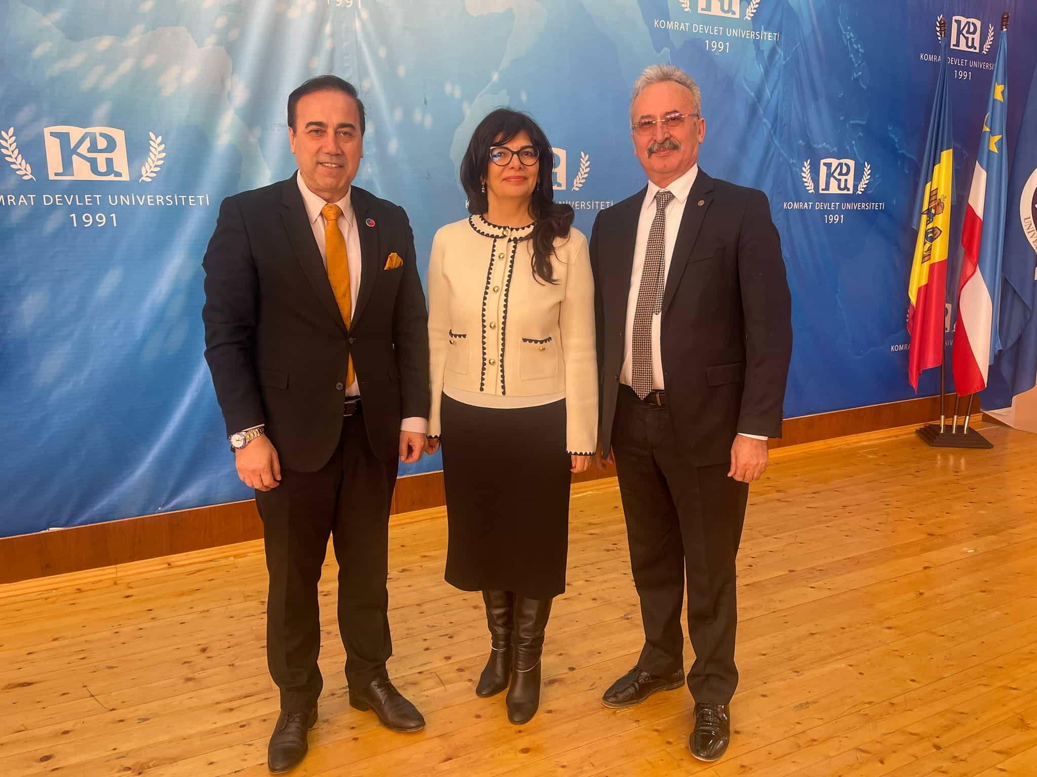 Universitatea de Stat Comrat (USC) continuă să dezvolte cu încredere cooperarea internațională, iar un rol important în acest proces îl joacă colaborarea cu Consiliul Internațional pentru Comerț și Cooperare (ATİK). În mai 2025, parteneriatul dintre ATİK și USC (inclusiv autoritățile locale și reprezentanții mediului de afaceri din UTA Găgăuzia) a atins un nou nivel prin două evenimente importante: sărbătorirea a 34 de ani de la înființarea Universității de Stat Comrat (11 februarie 2025) și participarea la Forumul Internațional de Afaceri din 16 mai 2025, care a avut loc în orașul Essen (Germania). Președintele ATİK, domnul Aziz Şahin, vorbind la ceremonia aniversară a USC, a subliniat: „Universitatea de Stat Comrat este o instituție importantă de învățământ pentru turcii găgăuzi, iar noi, ca ATİK, vom continua să contribuim la dezvoltarea acesteia. Cooperarea noastră în domeniul educației va fi doar consolidată”. În discursul său, domnul Aziz Şahin a accentuat, de asemenea, necesitatea „consolidării legăturilor academice și culturale între studenții turci și studenții USC”, exprimând disponibilitatea ATİK de a sprijini activ inițiativele educaționale internaționale. Rectorul USC, dr., conf. univ. Serghei Zaharia, în intervenția sa, a confirmat dorința universității de a extinde parteneriatele academice și internaționale: