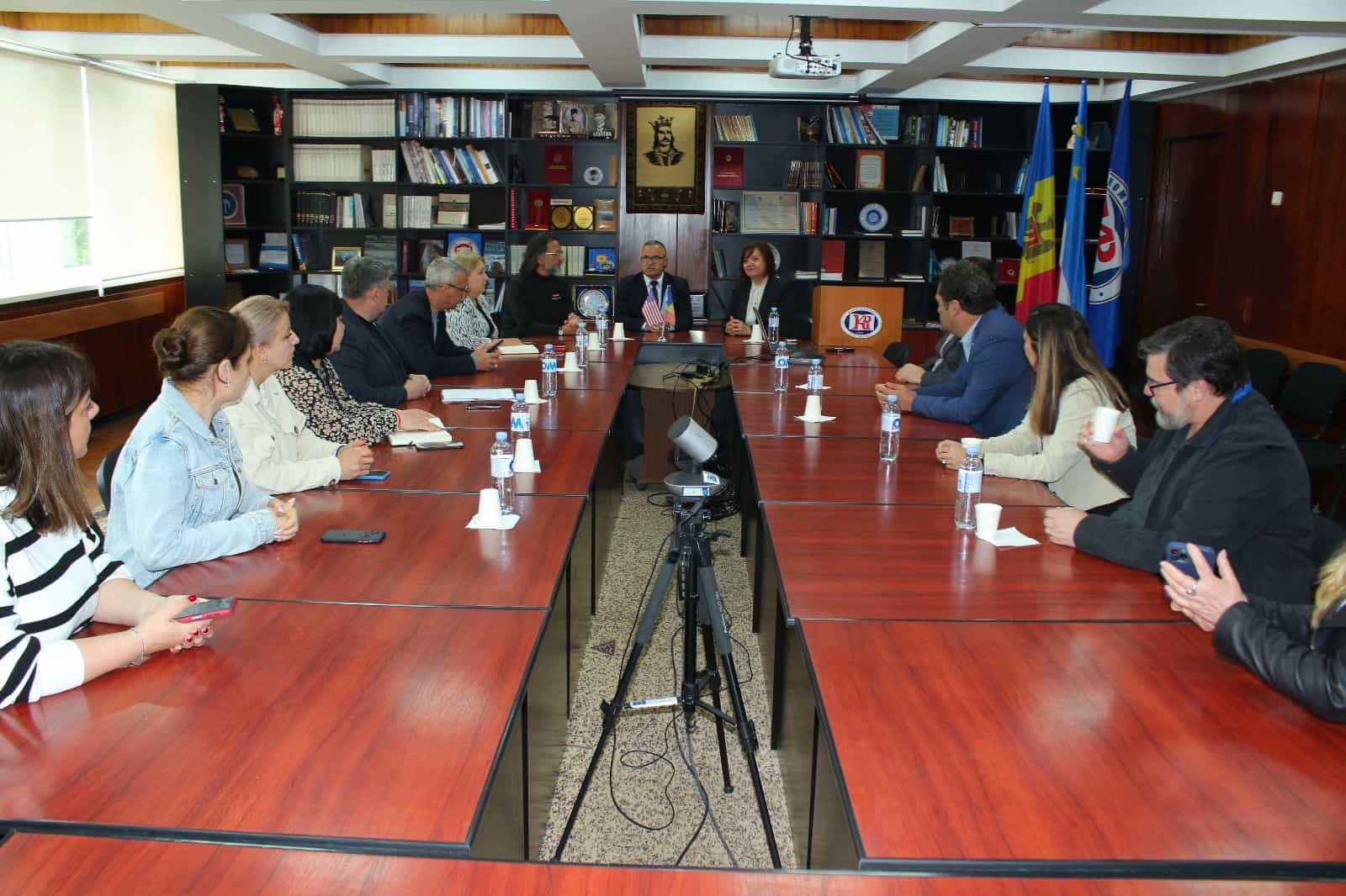 La 26 mai 2025, Universitatea de Stat din Comrat (USC) a primit în vizită oficială o delegație a Universității de Stat din Carolina de Nord (North Carolina State University – NCSU), SUA. Vizita face parte din proiectul „Exchange Speaker Program: North Carolina State University – Technical University of Moldova cu participarea altor universități”, finanțat de Ambasada SUA în Republica Moldova. Parteneriatul a beneficiat de sprijinul deplin al rectorului USC, dr. conferențiar universitar Serghei Zaharia, care promovează activ dezvoltarea relațiilor internaționale ale universității și subliniază importanța acestor inițiative pentru internaționalizarea învățământului superior în domeniile agrar și inginerie, relevante pentru sudul țării. Întâlnirea a fost moderată de dr. Daniela POJAR, prorector pentru relații internaționale și finanțe la Universitatea Tehnică a Moldovei (UTM), care a evidențiat semnificația strategică a colaborării între UTM, USC și NCSU. Potrivit acesteia, proiectul deschide noi orizonturi pentru colaborarea academică și științifică aplicată și contribuie la consolidarea reputației internaționale a universităților din Republica Moldova. Rectorul USC, dr. conferențiar universitar Serghei Zaharia, a mulțumit Ambasadei SUA în Republica Moldova pentru sprijin, NCSU pentru inițierea parteneriatului și rectorului UTM, prof. dr. habilitat Viorel BOSTAN, pentru invitația de a participa la proiect. „Suntem bucuroși de colaborare în acest proiect important, care vizează extinderea și consolidarea procesului educațional la Facultatea de Tehnologii Agricole a USC, atragerea de parteneri de încredere care îmbogățesc inițiativele noastre educaționale și de cercetare.” La întâlnire au participat cadre didactice și cercetători din domeniul agrar-tehnologic de la UTM, prorectori ai USC, decanul și personalul didactic al Facultății de Tehnologii Agricole a USC. Delegația NCSU a fost reprezentată de: