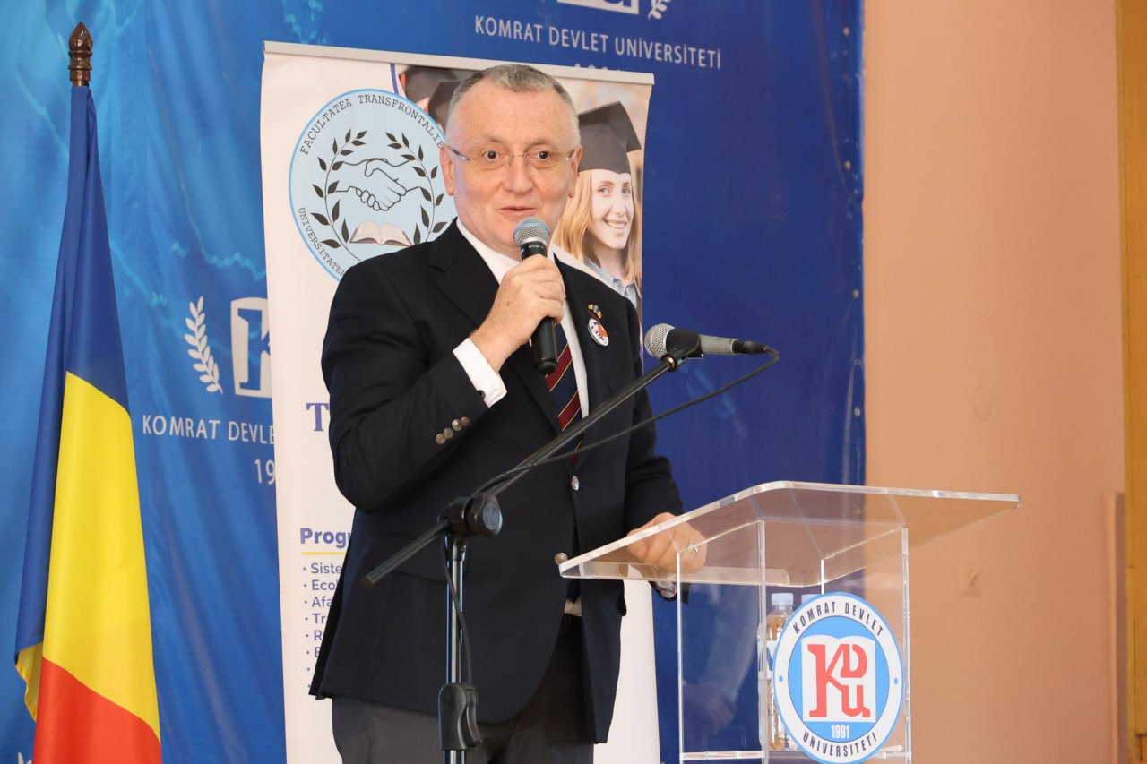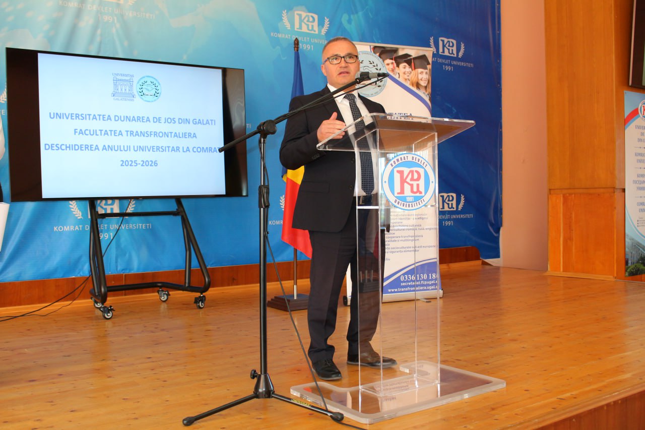 La 26 septembrie 2025, la Universitatea de Stat din Comrat a avut loc deschiderea oficială a anului universitar în cadrul unui program unic, organizat de Universitatea „Dunărea de Jos” din Galați (România), cu sprijinul Ministerului Educației al României. 160 de tineri din UTA Găgăuzia (Republica Moldova) au început studiile la Anul pregătitor de limba română pentru cetățenii străini, destinat celor pentru care româna nu este limbă maternă. Programul are durata de un an universitar, structurat pe două semestre, iar la final absolvenții vor obține un certificat de competență lingvistică nivel B1. La ceremonia de deschidere au participat personalități din mediul academic și administrativ din Republica Moldova și România, printre care rectorul Universității „Dunărea de Jos”, prof. univ. dr. Marian Barbu, președintele Consiliului Național al Rectorilor din România, prof. univ. dr. Sorin Cîmpeanu, decanul Facultății Transfrontaliere, conf. univ. dr. Mariana Bălănică-Dragomir, primarul municipiului Comrat Serghei Anastasov și cadre didactice de la Universitatea „Dunărea de Jos”. Rectorul Universității de Stat din Comrat, conf. univ. dr. Serghei Zaharia, s-a adresat participanților cu un mesaj de salut, pe care l-a rostit inițial în limbile materne găgăuză și română. În discursul său, el a subliniat importanța păstrării și dezvoltării limbii materne găgăuze, dar și a însușirii productive a limbii de stat – limba română – ca o condiție esențială pentru integrarea academică și profesională de succes a tinerilor. Evenimentul marchează un pas important în dezvoltarea relațiilor educaționale și culturale dintre Republica Moldova și România, deschizând noi perspective pentru tineri și formând o nouă generație de specialiști bilingvi.