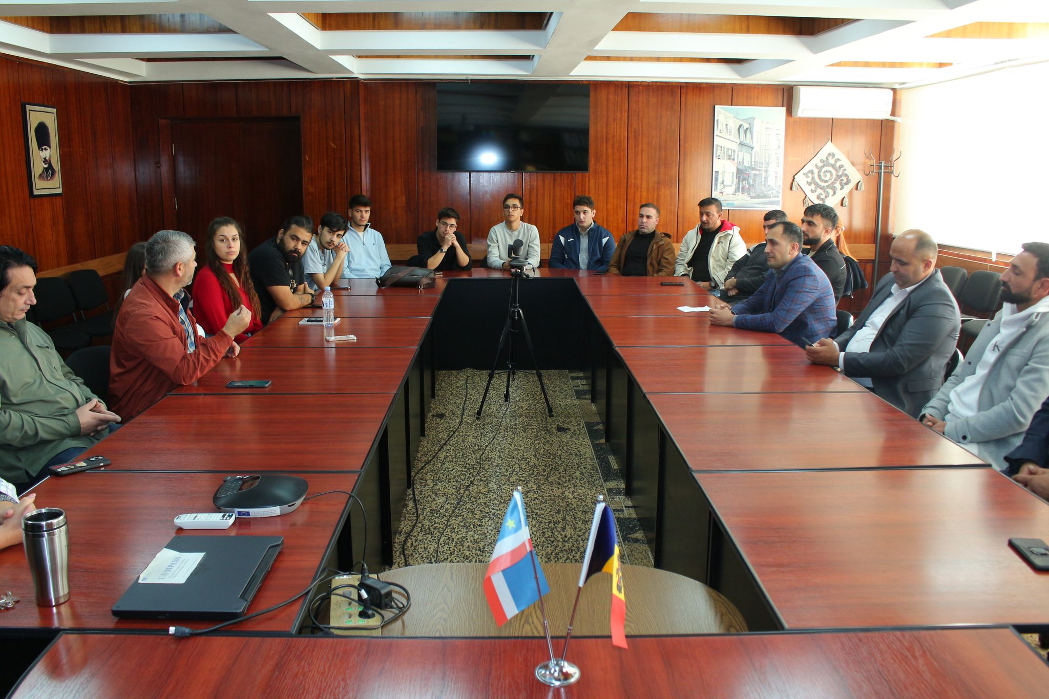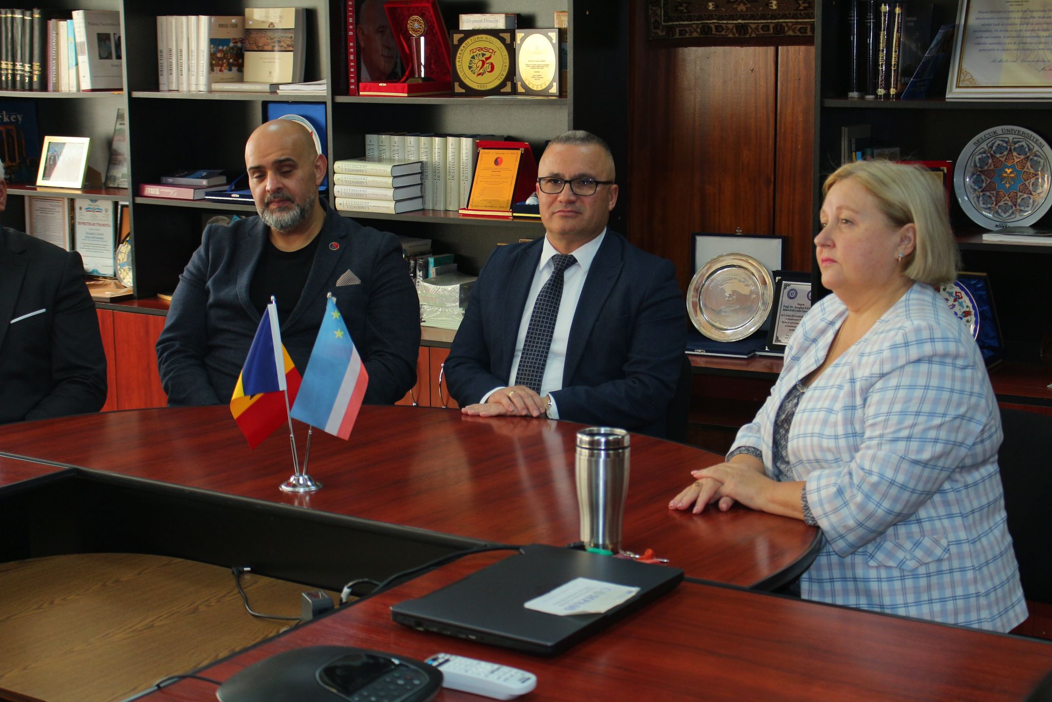 La 20 octombrie 2025, la Universitatea de Stat din Comrat a avut loc o întâlnire între rectorul universității, dr. conf. univ. Serghei Zaharia, și reprezentanții diasporei turce din Germania, printre care s-a numărat și domnul Göksel Can, coordonator al Consiliului Internațional pentru Comerț și Cooperare (ATİK). În cadrul întâlnirii, părțile au discutat despre dezvoltarea colaborării între reprezentanții lumii turcice, consolidarea legăturilor culturale și educaționale, precum și promovarea limbii și tradițiilor turce în rândul tinerilor. Rectorul Serghei Zaharia a menționat că Universitatea de Stat din Comrat reprezintă o platformă educațională importantă care unește studenți de origine turcică, iar cooperarea cu diasporele turce din Europa contribuie la extinderea contactelor internaționale și la dezvoltarea inițiativelor academice. După întâlnirea oficială, reprezentanții diasporei turce au discutat cu studenții universității. În cadrul discuției au fost abordate teme legate de identitatea culturală, rolul educației în consolidarea relațiilor interetnice și noile oportunități de participare a studenților în proiecte internaționale comune. Domnul Göksel Can a exprimat recunoștință conducerii universității pentru ospitalitate și a subliniat importanța menținerii legăturilor strânse între comunitățile turce din Europa și Găgăuzia, menționând că ATİK va continua să sprijine inițiativele educaționale și culturale. Întâlnirea s-a desfășurat într-o atmosferă caldă și prietenoasă, constituind încă un pas în consolidarea cooperării dintre Universitatea de Stat din Comrat și reprezentanții lumii turcice.