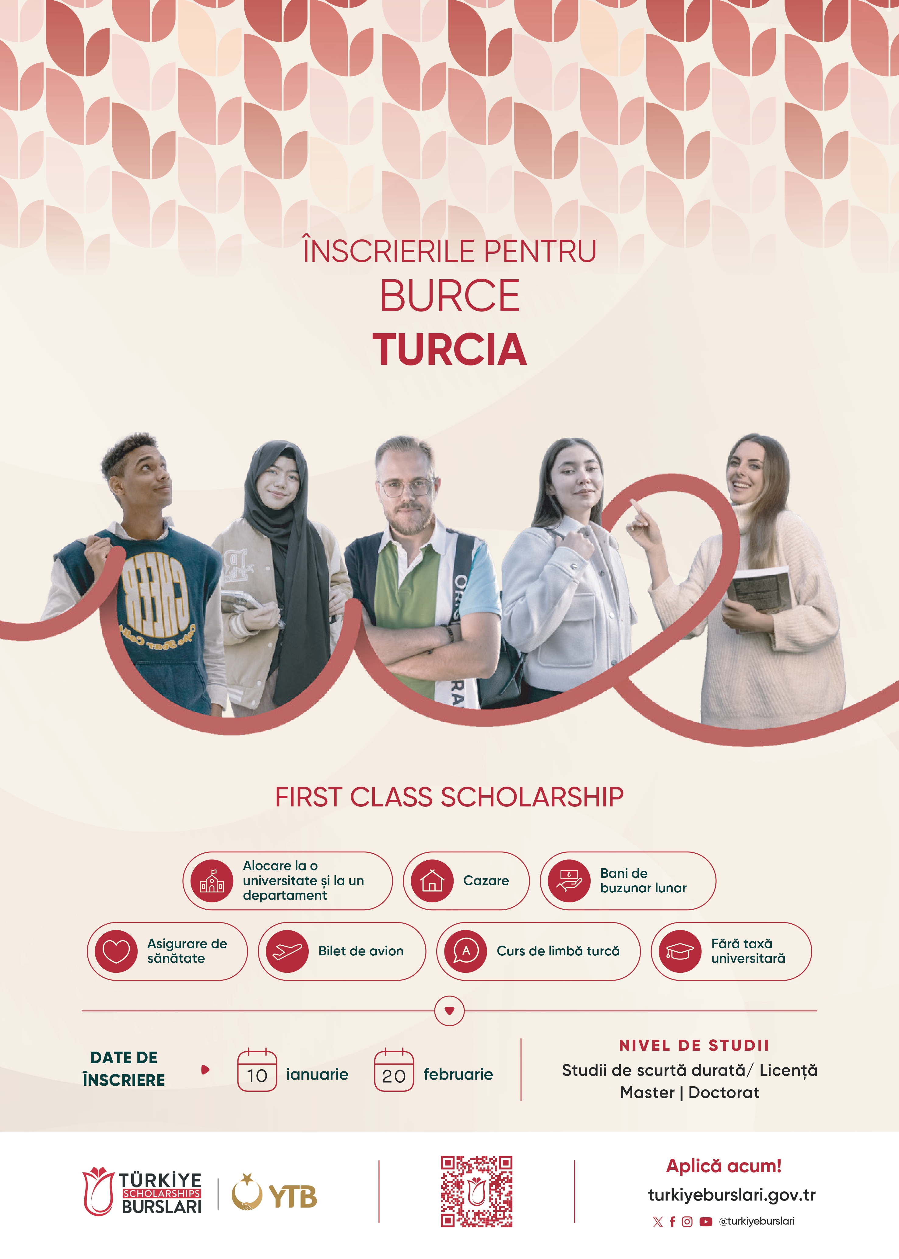 Türkiye Scholarships este un program de burse competitiv, finanțat de stat, destinat studenților și cercetătorilor remarcabili care doresc să urmeze studii complete sau programe academice pe termen scurt în universități prestigioase din Turcia.