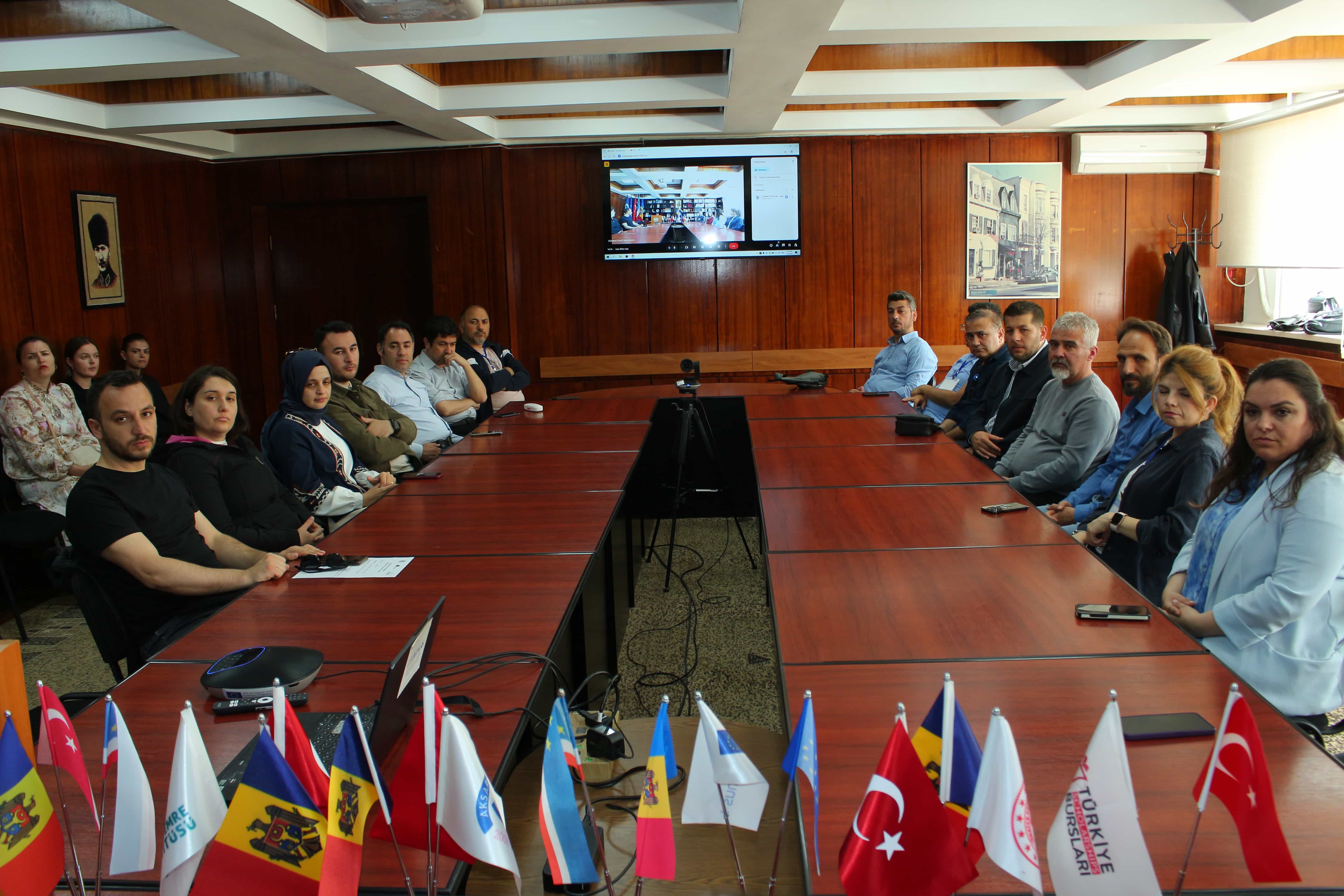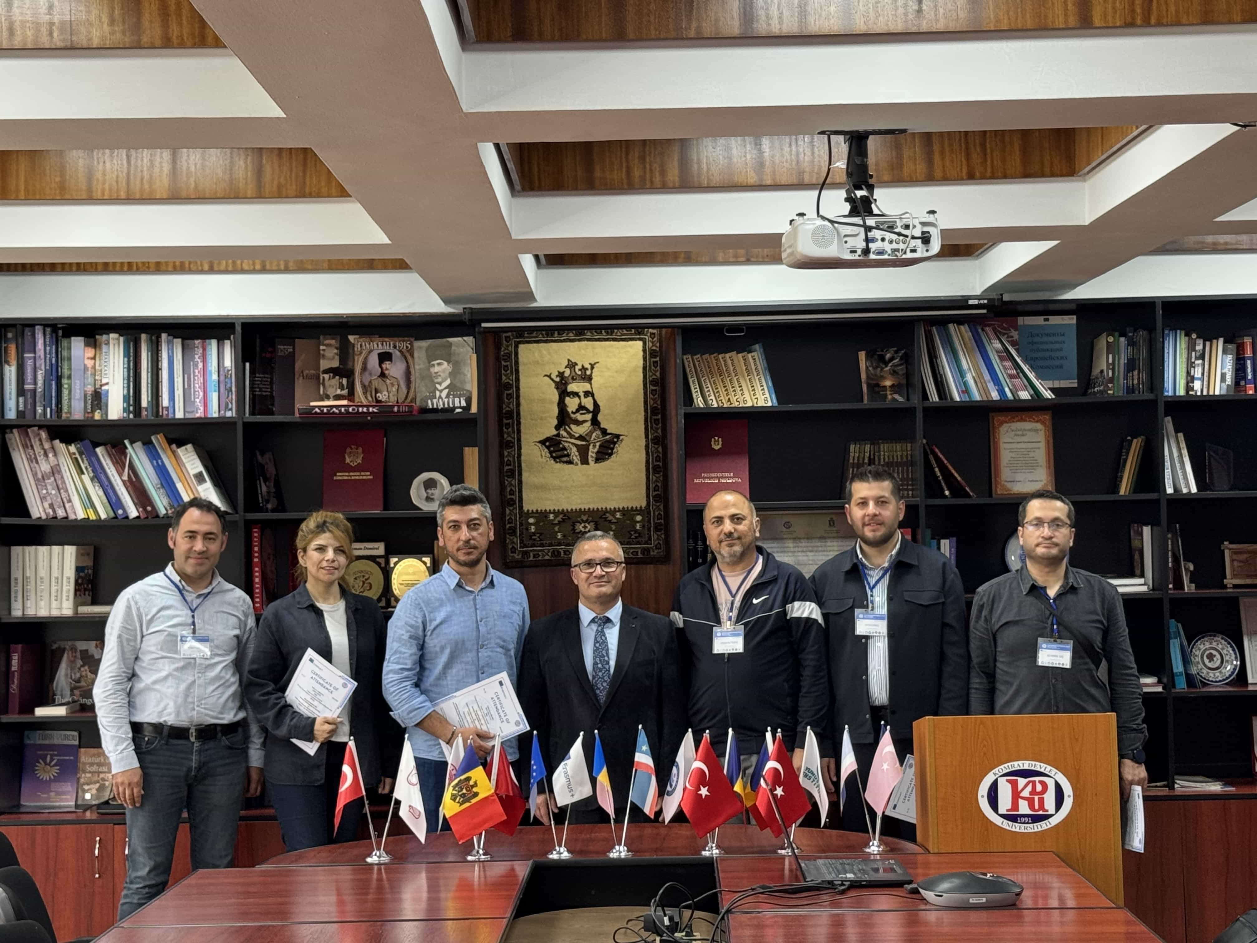 În perioada 5–9 mai 2025, Universitatea de Stat din Comrat (USC) a devenit o gazdă primitoare pentru desfășurarea International Erasmus+ Staff Mobility Week, eveniment care a avut loc într-o atmosferă de dialog activ și schimb de experiență productiv. Acest eveniment deosebit a reunit 17 cadre didactice și administrative din șase universități prestigioase ale Republicii Turcia: Bursa Teknik Üniversitesi, Çankırı Karatekin Üniversitesi, Kırşehir Ahi Evran Üniversitesi, Necmettin Erbakan Üniversitesi, Nevşehir Hacı Bektaş Veli Üniversitesi și Pamukkale Üniversitesi.