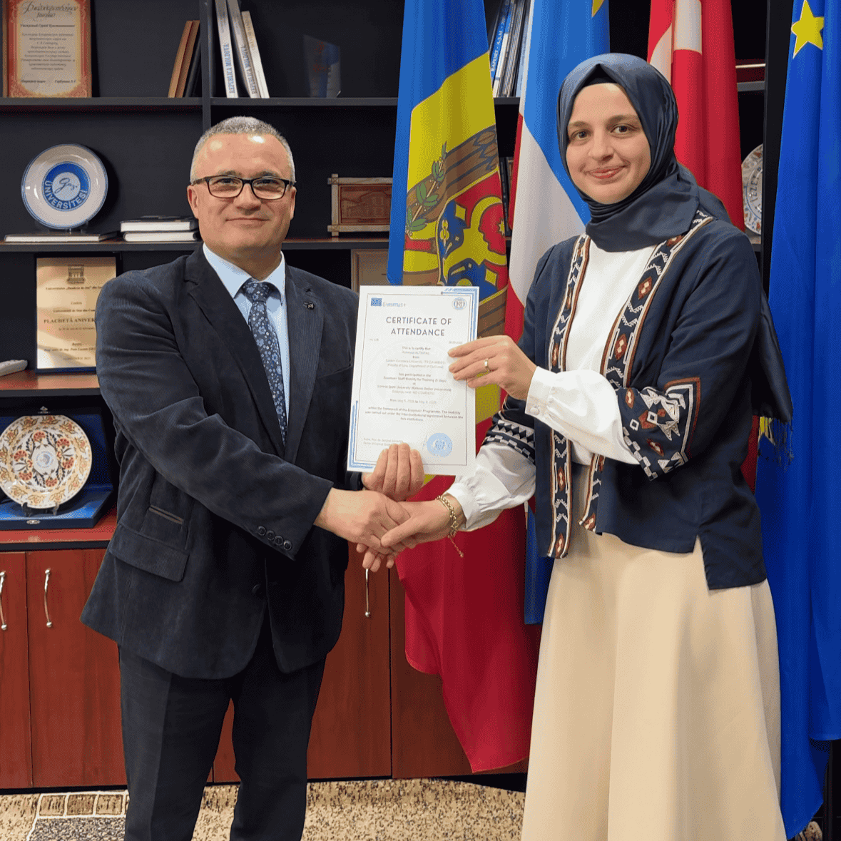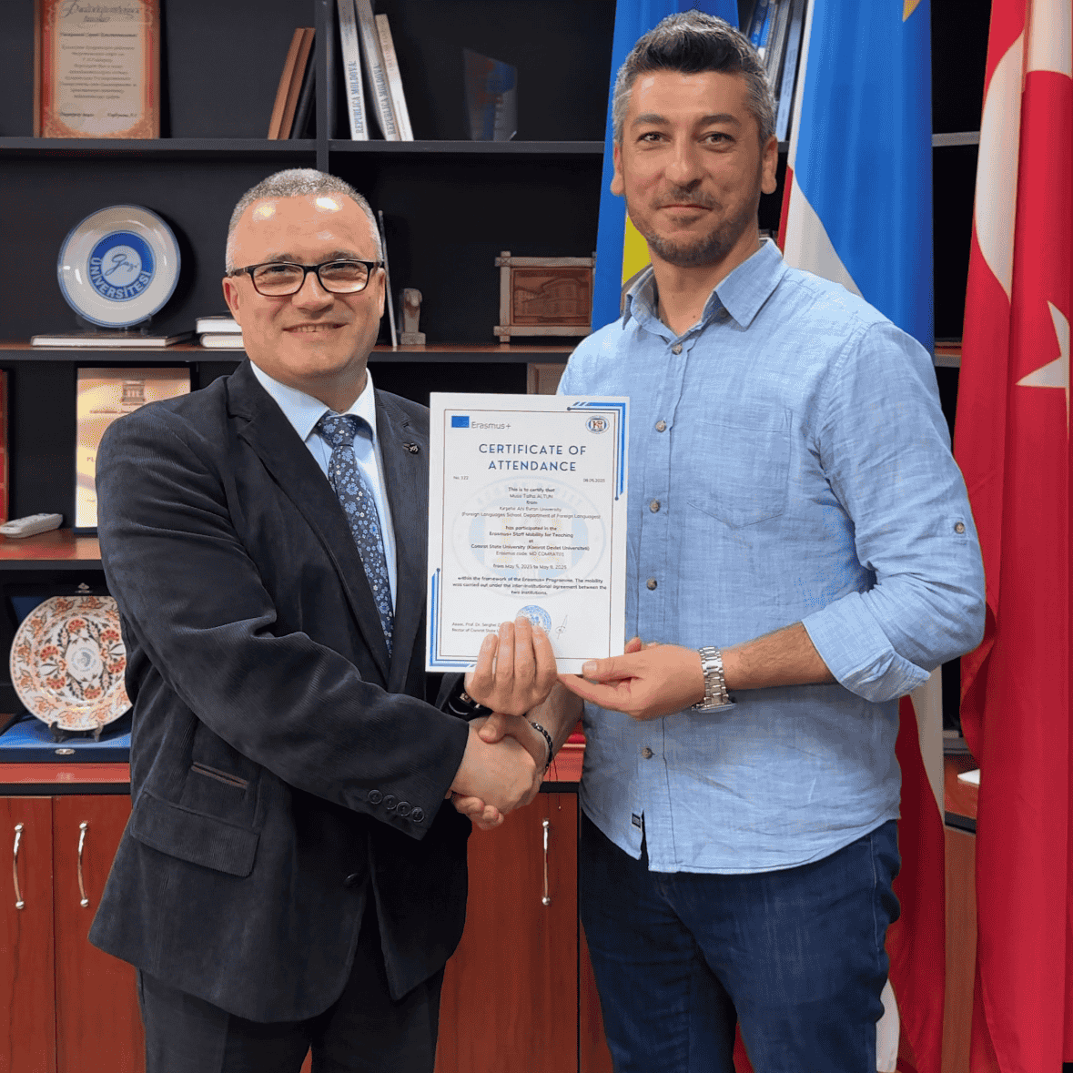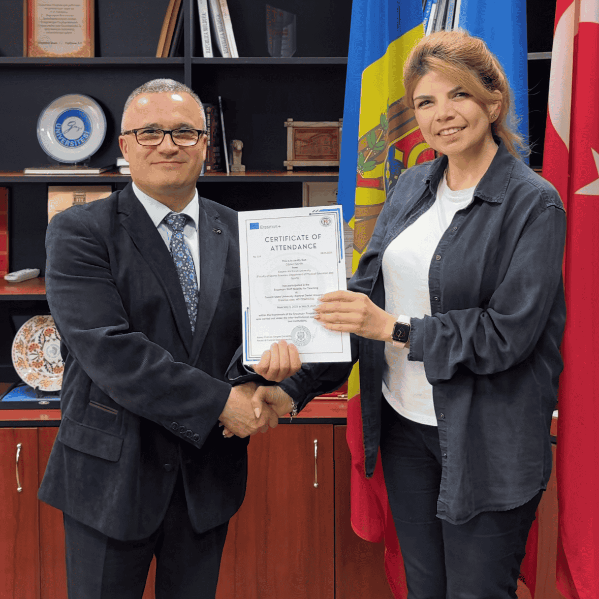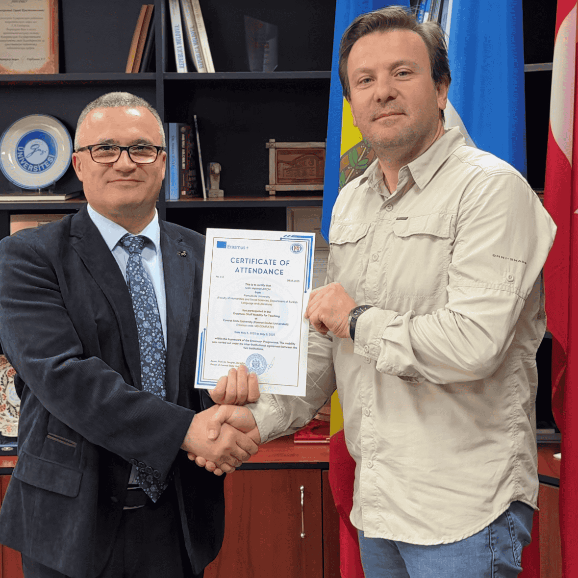 Universitatea de Stat din Comrat își exprimă recunoștința sinceră tuturor participanților la International Erasmus+ Staff Mobility Week pentru entuziasmul, deschiderea spre dialog și contribuția valoroasă la consolidarea cooperării internaționale. De asemenea, adresăm mulțumiri universităților partenere din Turcia pentru colaborarea fructuoasă și sperăm într-o continuare durabilă a relațiilor noastre. Organizarea unor astfel de evenimente are o importanță majoră pentru internaționalizarea educației, schimbul de bune practici și construirea unor punți durabile de prietenie între țările și comunitățile noastre academice. Suntem convinși că această experiență va deveni o bază solidă pentru noi inițiative și proiecte comune în viitor.