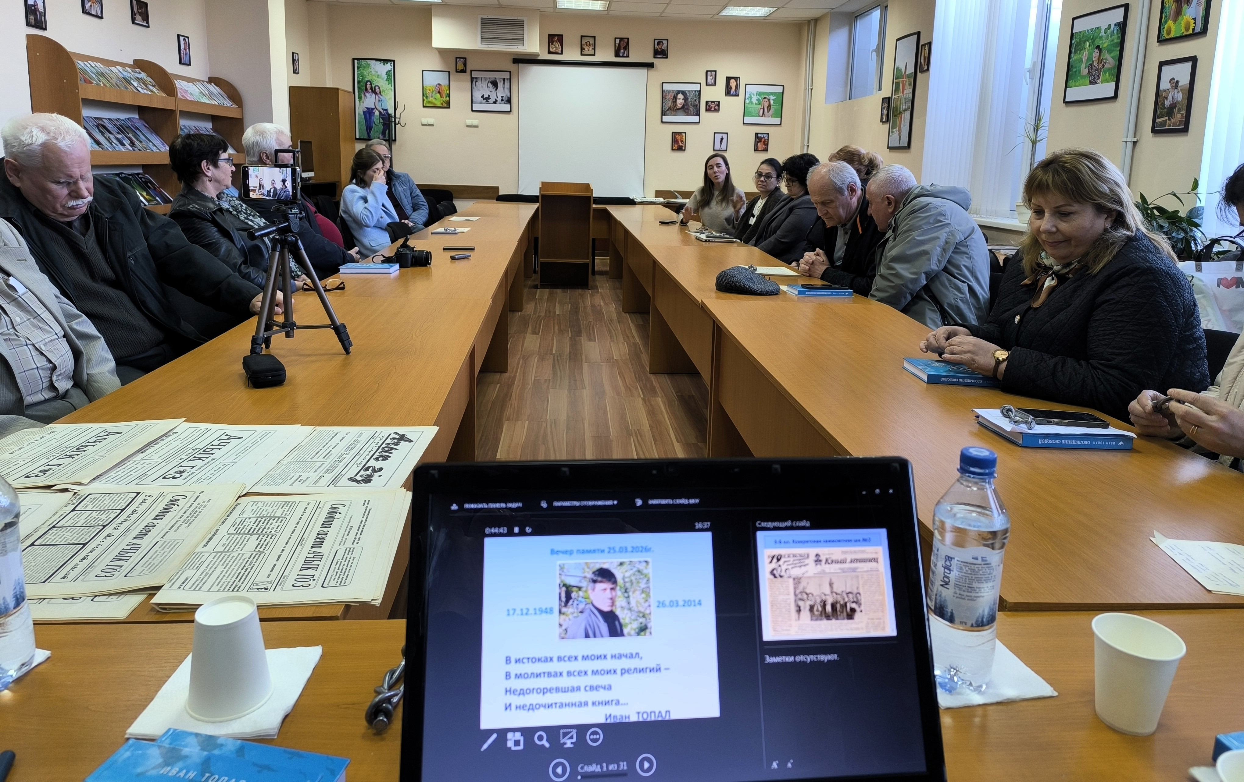A fost prezentată lucrarea „Dedicat lui I. Topal…” (pregătită de șefa bibliotecii Janna. Garceva), care a evidențiat viața și activitatea lui Ivan Topal — critic literar, poet, publicist și redactor al ziarului „Açık Göz.”