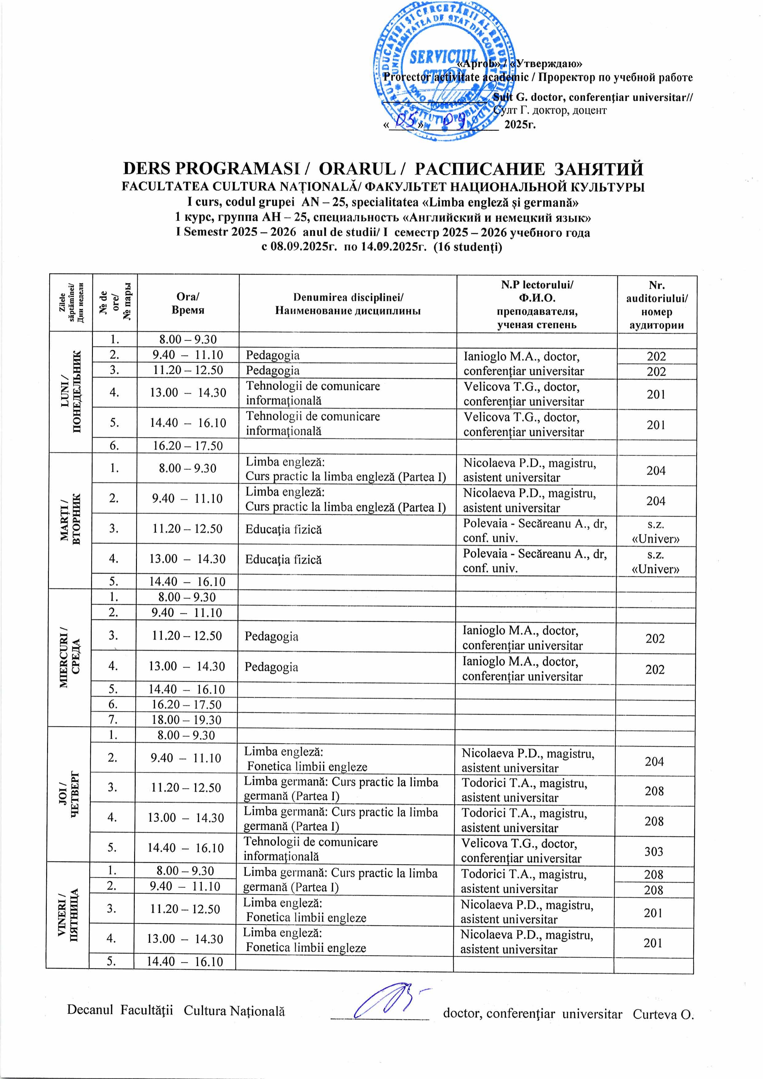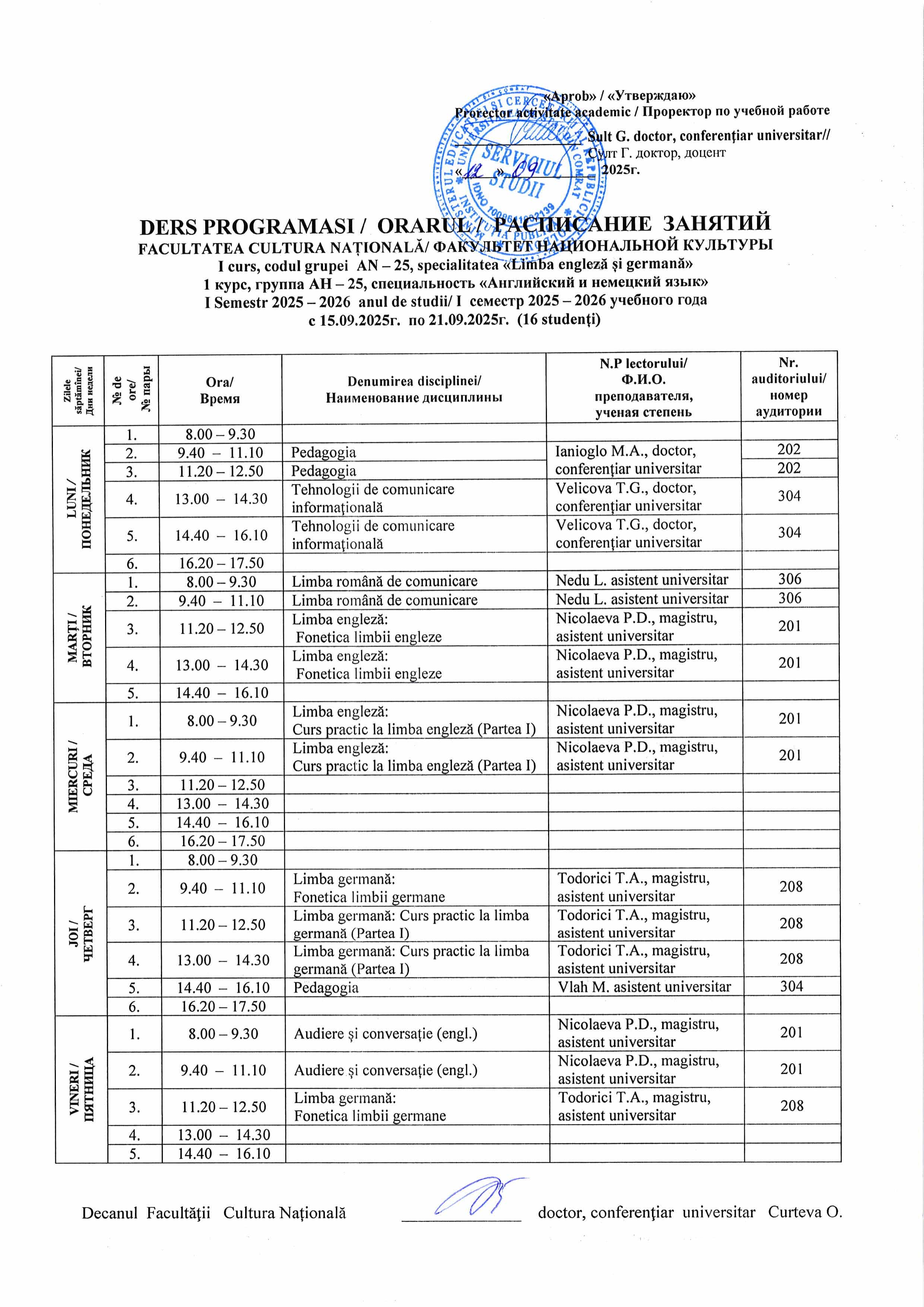 Расписание гр. АН-25