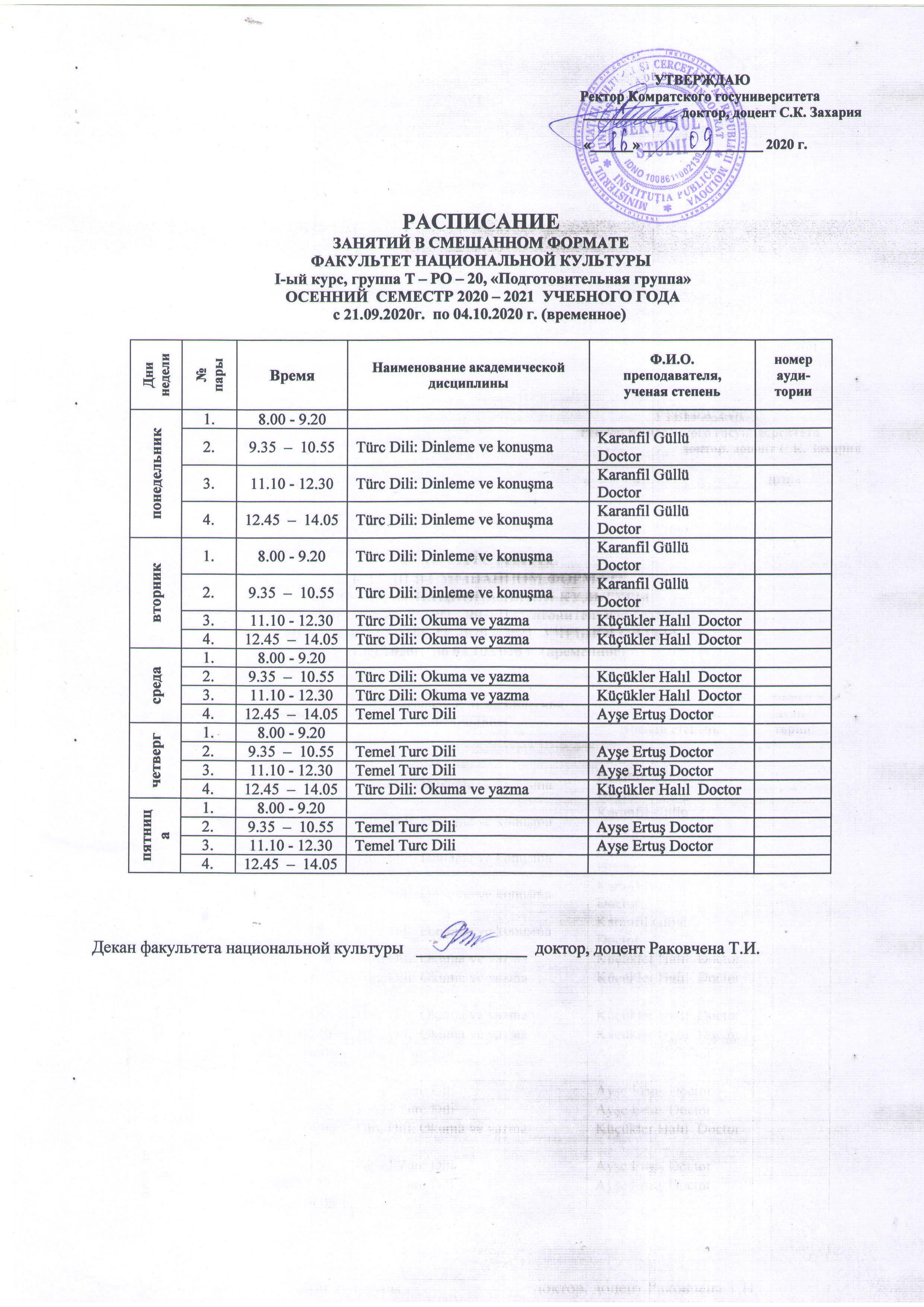 Расписание гр. Т-РО-20