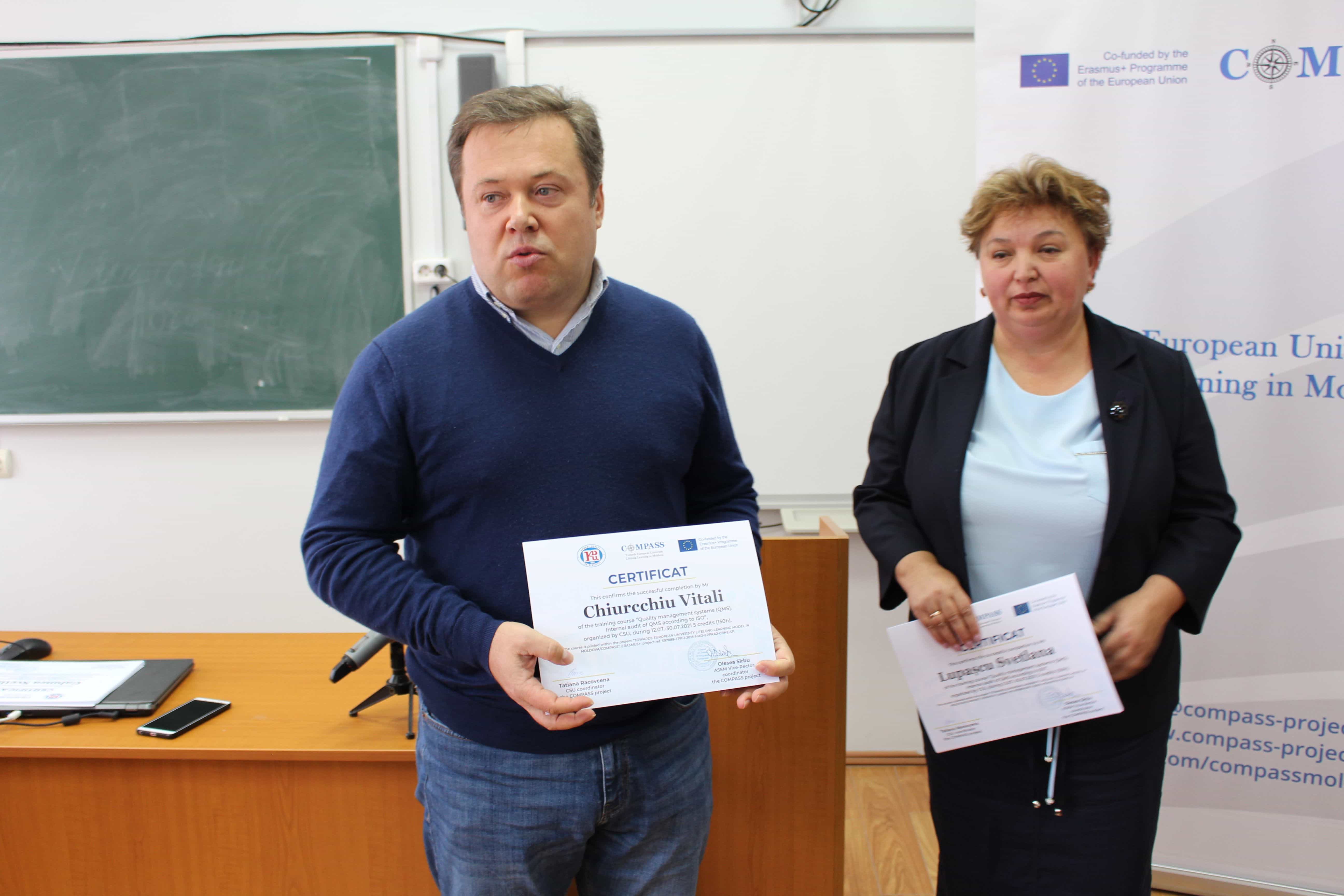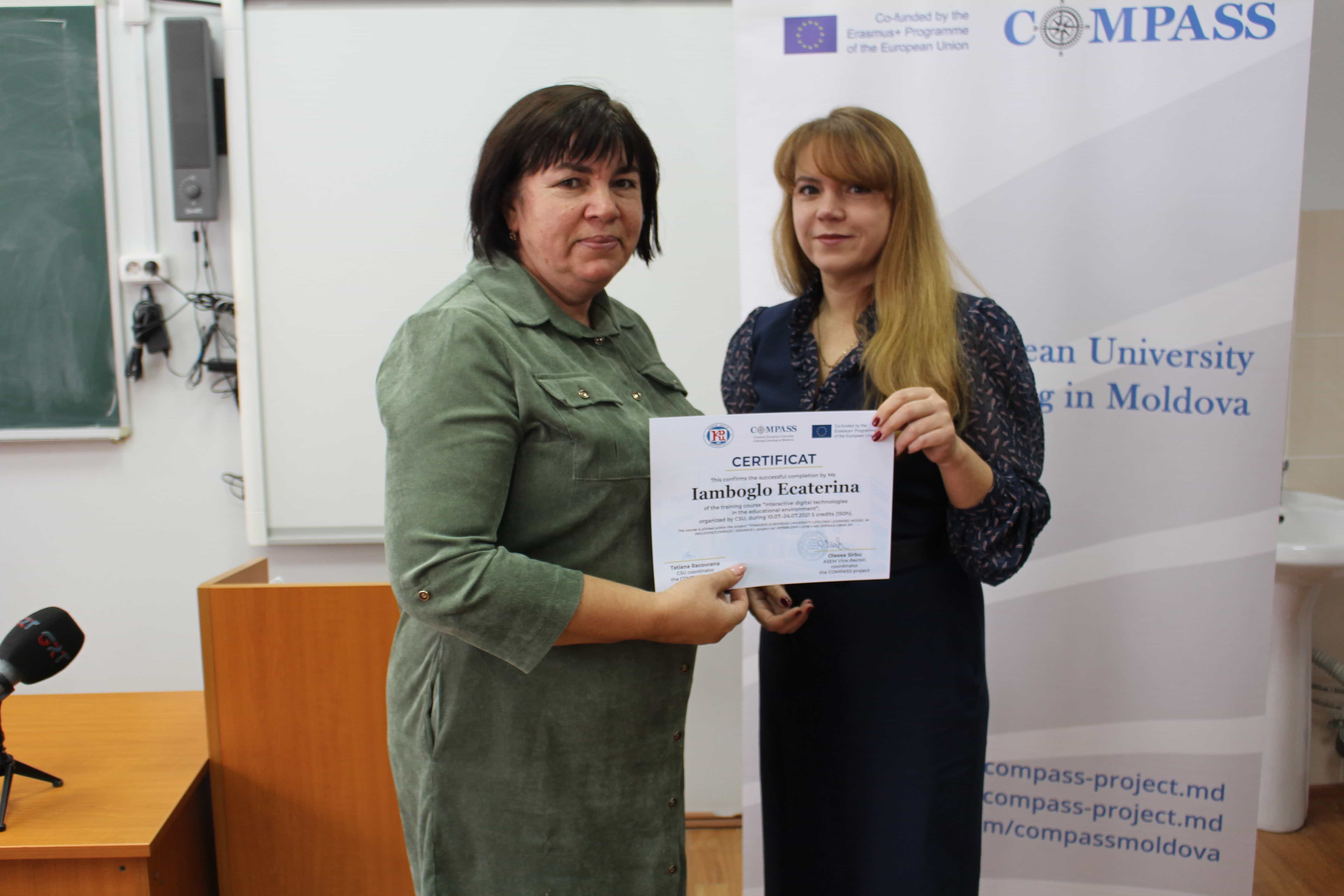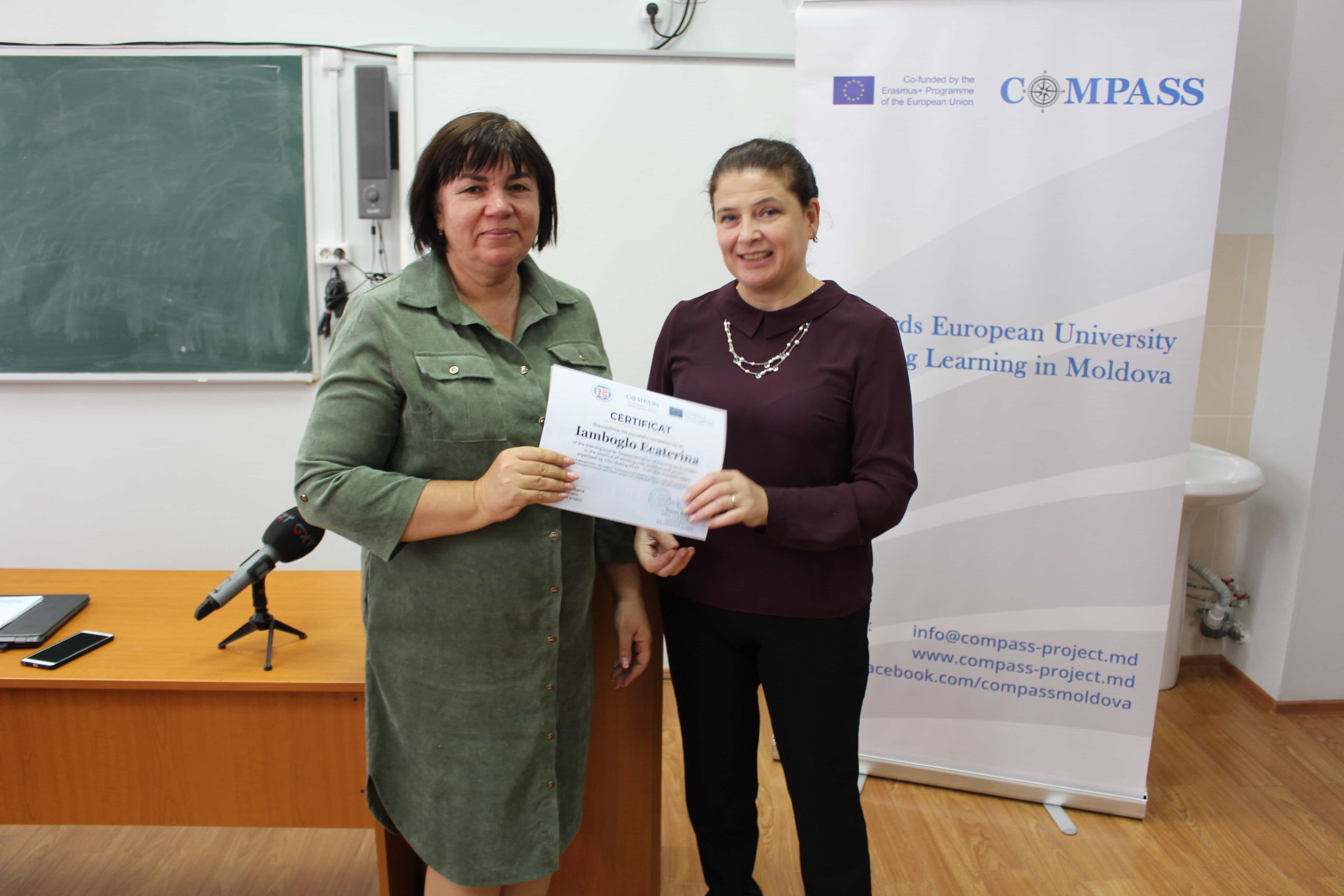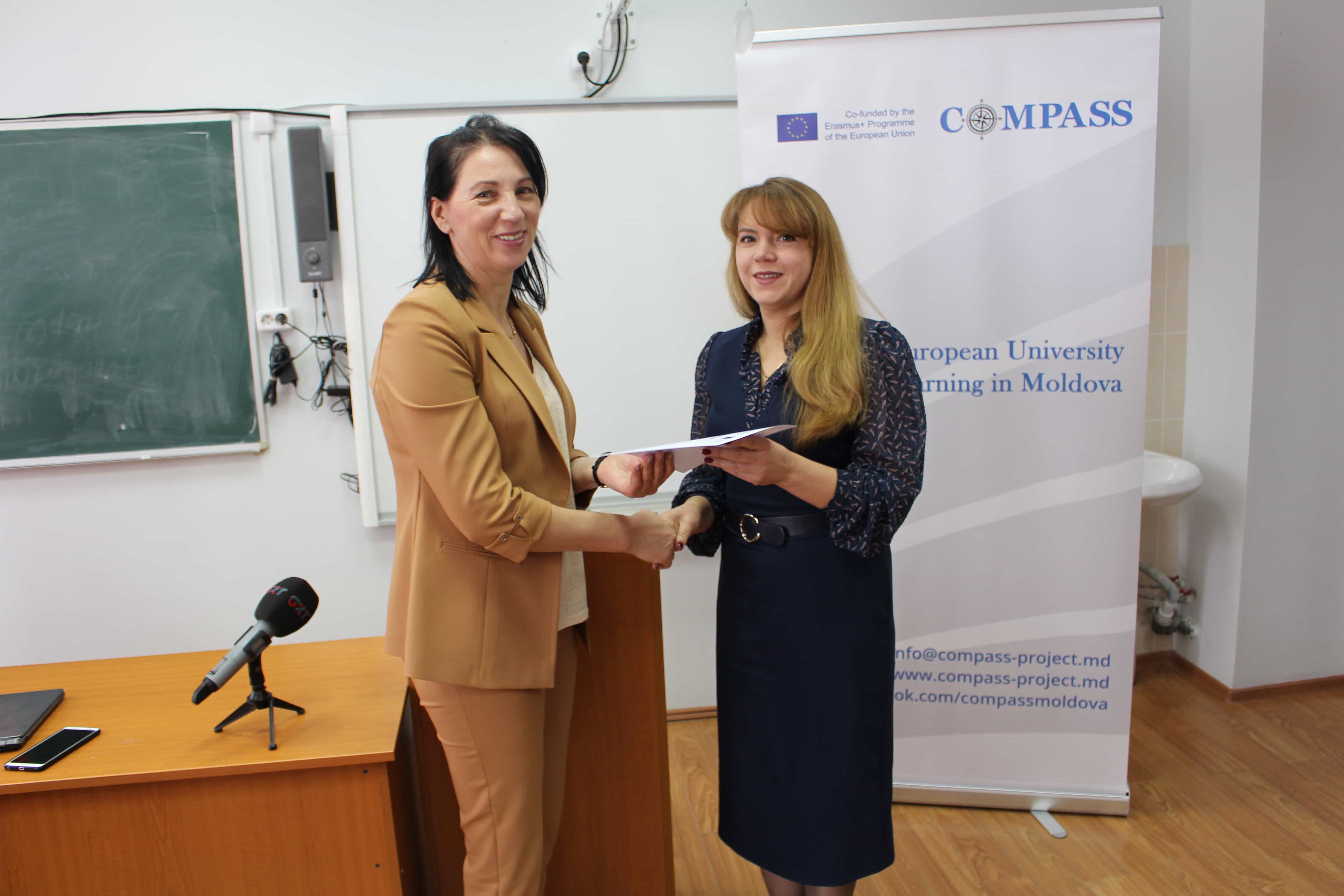 В Комратском государственном университете 24 сентября, были вручены сертификаты слушателям курсов непрерывного образования по проекту Erasmus+ project TOWARDS EUROPEAN UNIVERSITY LIFELONG LEARNING MODEL IN MOLDOVA – COMPASS по следующим программам: