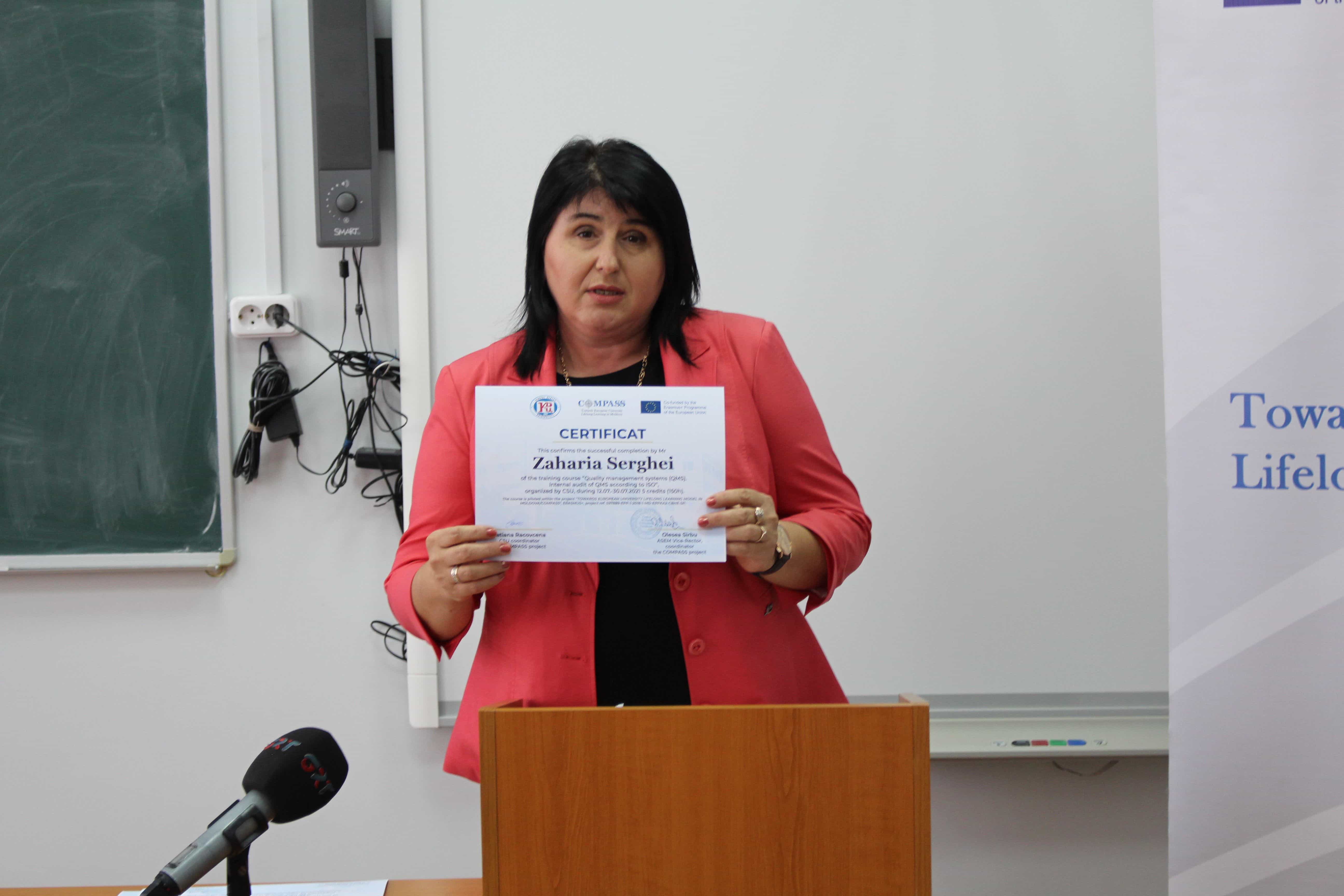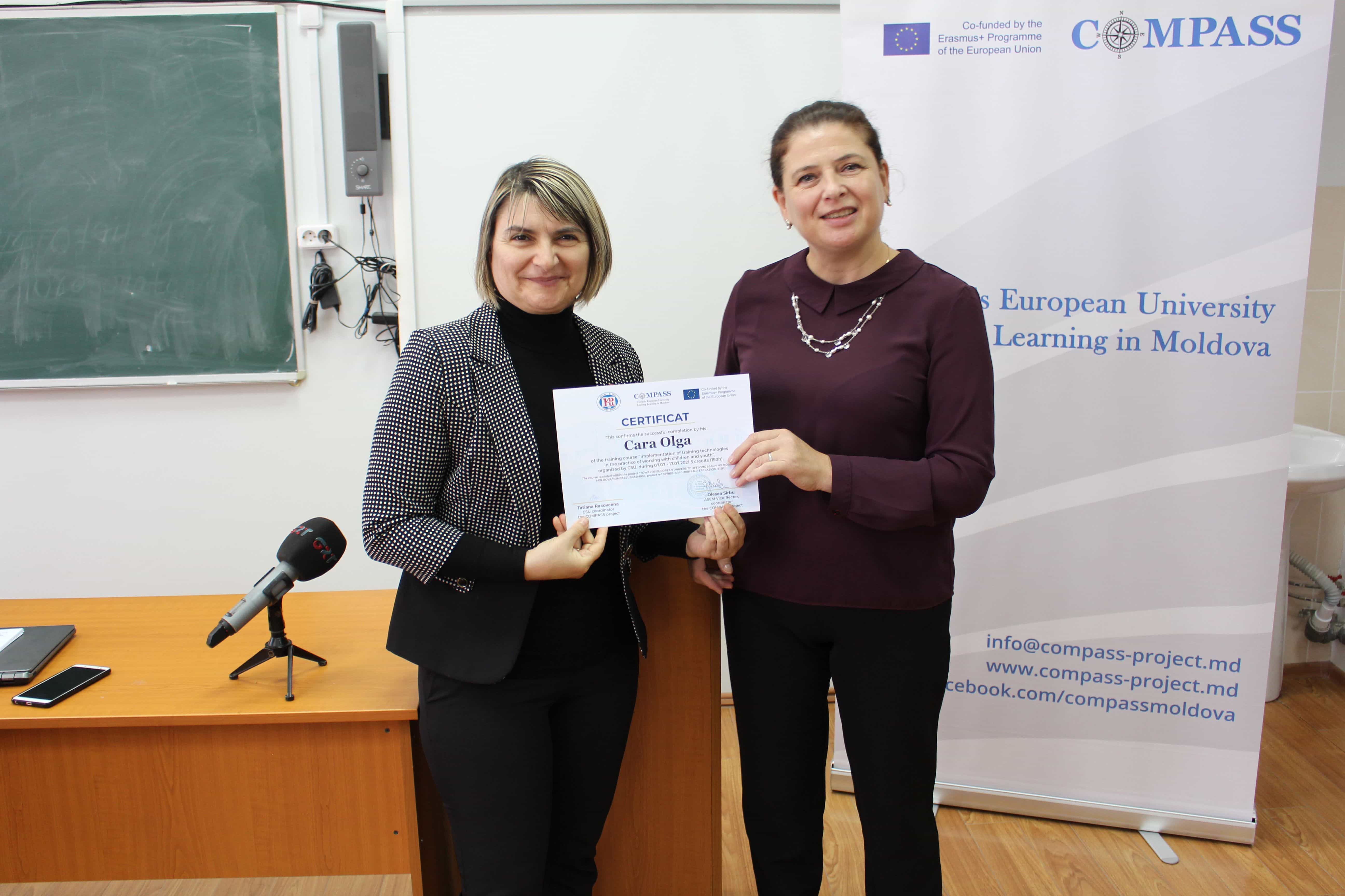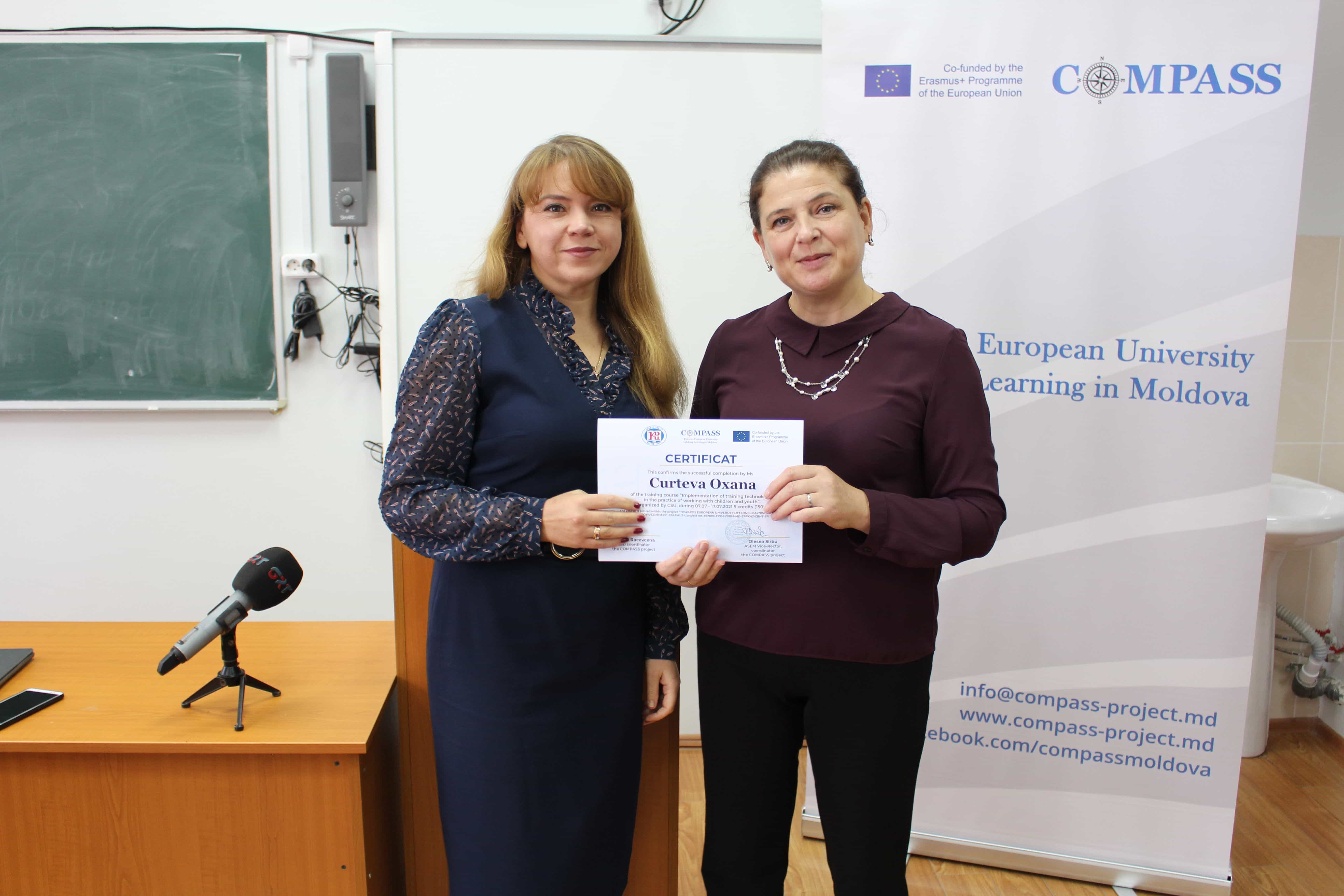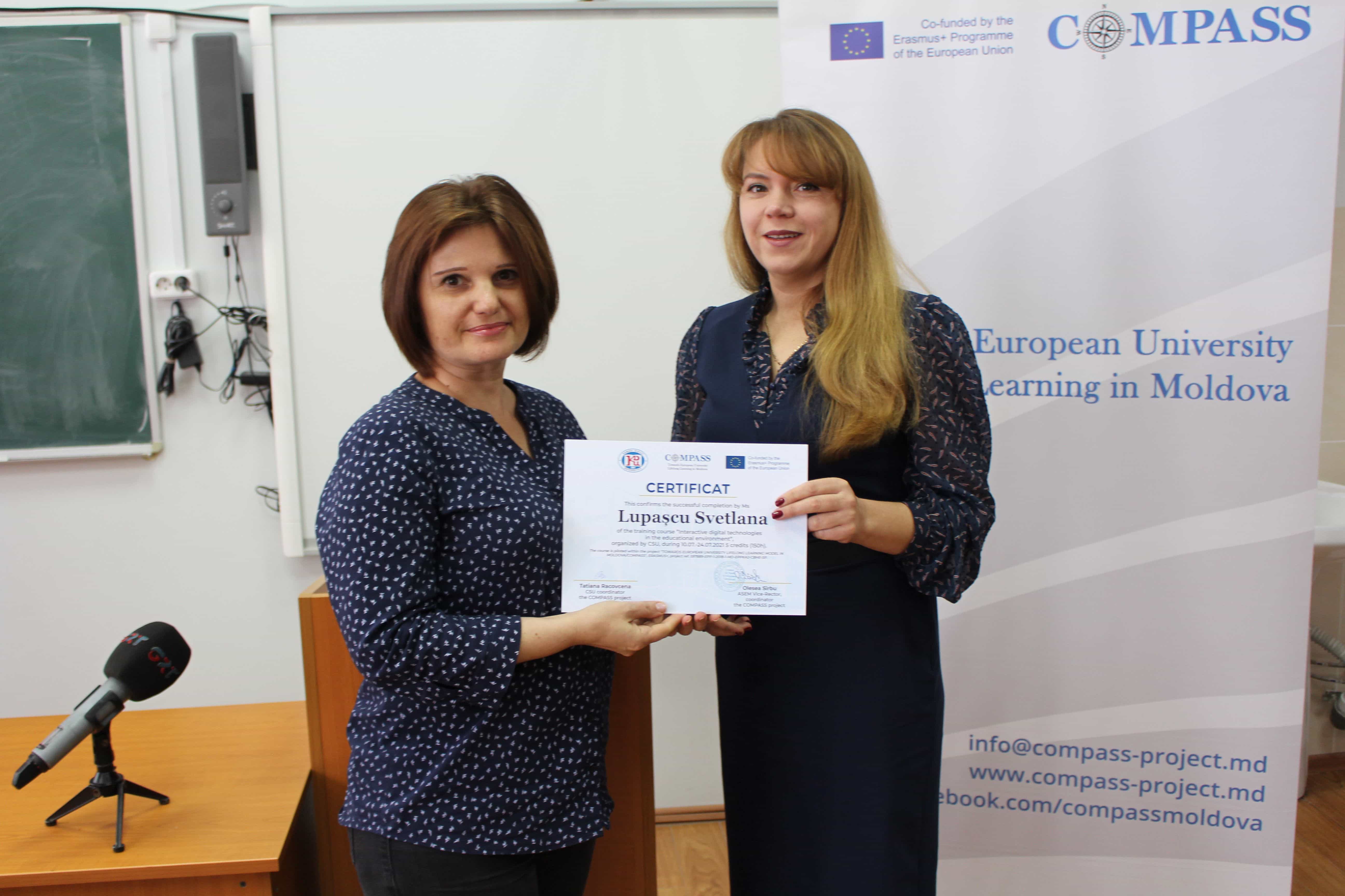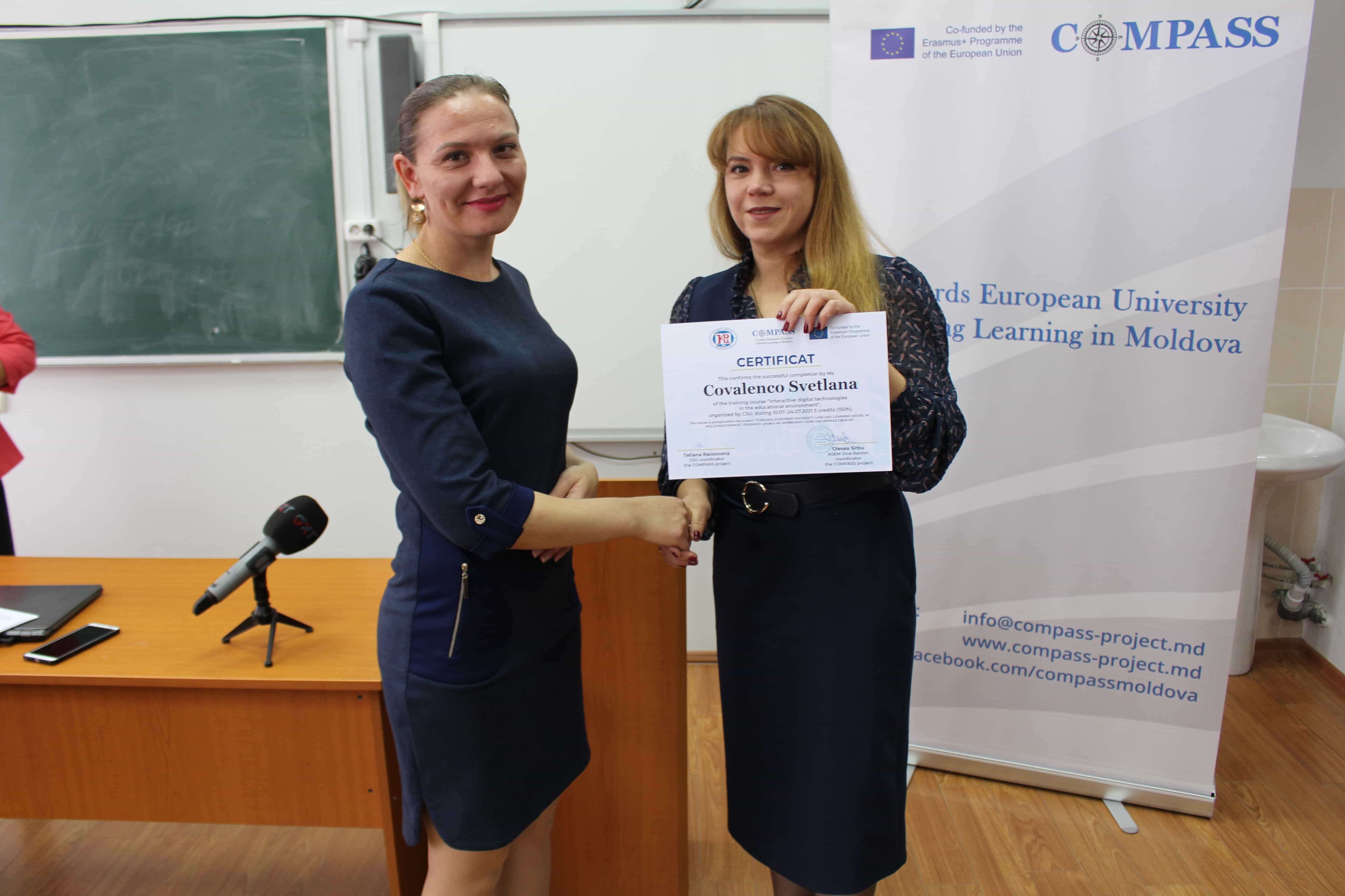 В Комратском государственном университете 24 сентября, были вручены сертификаты слушателям курсов непрерывного образования по проекту Erasmus+ project TOWARDS EUROPEAN UNIVERSITY LIFELONG LEARNING MODEL IN MOLDOVA – COMPASS по следующим программам: