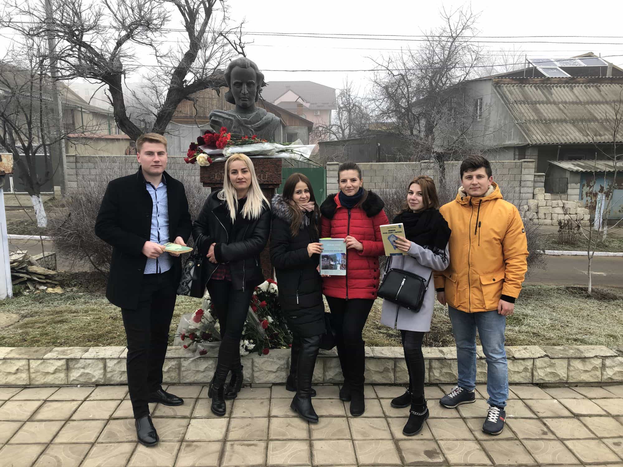În acest context, programul manifestărilor la USC a început cu depunerea de flori la bustul lui Mihai Eminescu din orașul Comrat. După depunerea florilor de către studenții facultăților de Cultură Națională și Drept, studenții au ascultat versurile lui Eminescu , printre care “De-aș avea”, “Rugăciune”etc.