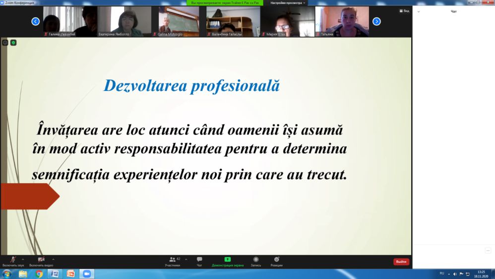 18 ноября студенты педагогических специальностей: «Педагогика начального образования. Дошкольная педагогика» и «Румынский и английский язык и литература» (34 чел.) и преподаватели - методисты, руководители педагогической практики: Бянова И.Е., Влах М.К., Кер Л.С., Левинтий Г.Г., Мугкогло Г.Н., Ямбогло Е.И., Яниогло М.А. приняли участие в Семинаре по имплементации Пособия для педагогов «Инструмент профессионального развития для улучшения качества работы педагогов детских садов и начальных школ», который, наряду с трудами «Компетентностный педагог 21 века» и «Практика внедрения принципов качественной педагогики ISSA», является частью пакета ресурсов в поддержку качественного образования для детей согласно определению Международной Ассоциации «Step by Step», членом которой является Образовательная программа «Pas cu Pas» Молдовы.