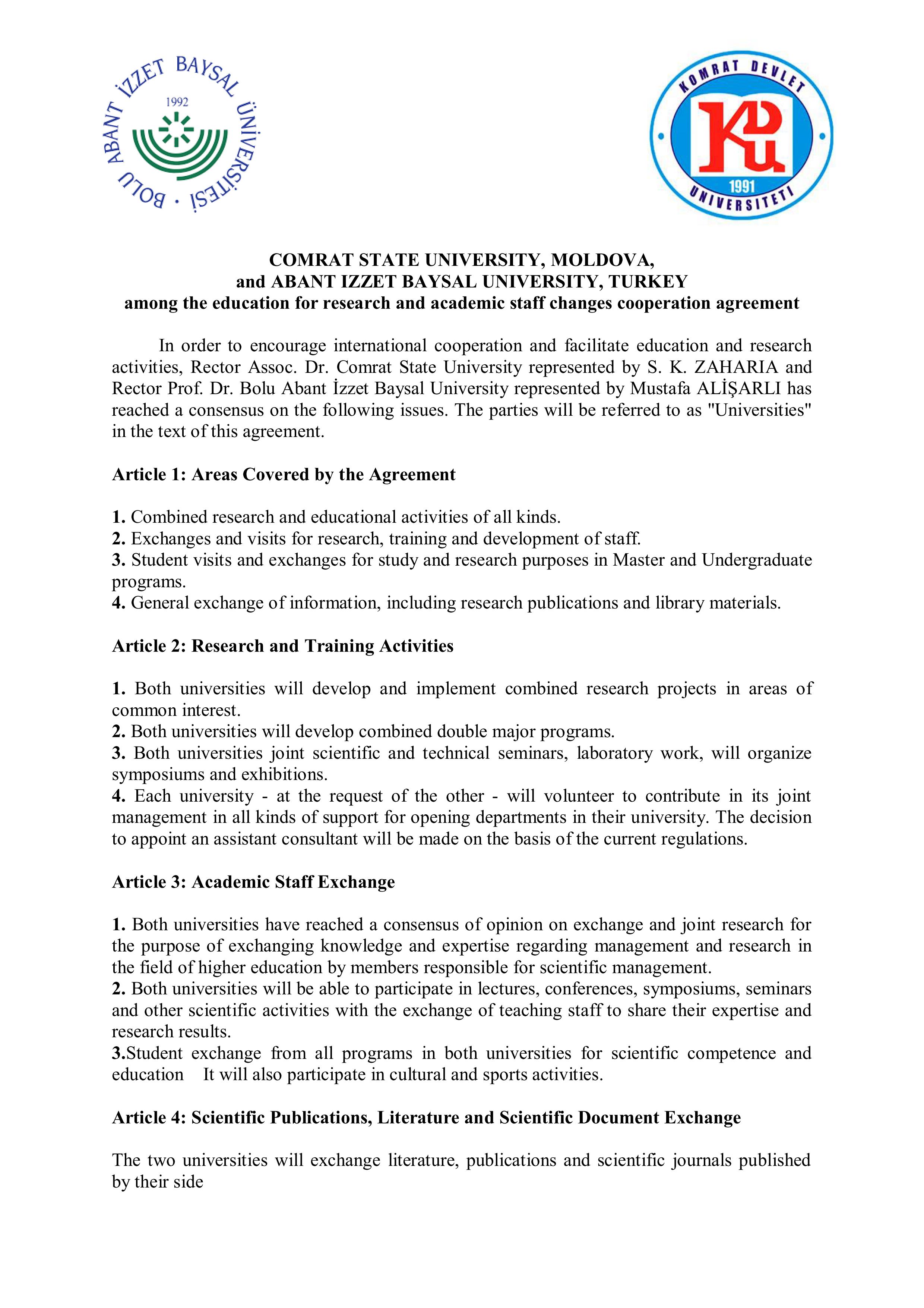 Bolu Abant İzzet Baysal Üniversitesi Rektörü sayın Mustafa ALİŞARLI, beyefendiye daha önce iki üniversite rektörleri arasında imzalanan ikili işbirliği anlaşmasınının ilave ekini sunduk. Anlaşmanın ekinde kısaca, eğitim süreci, bilimsel araştırma, öğretmenler ve öğrenciler için eğitim alanlarında herçeşit işbirliği maddeleri yer almakta idi.