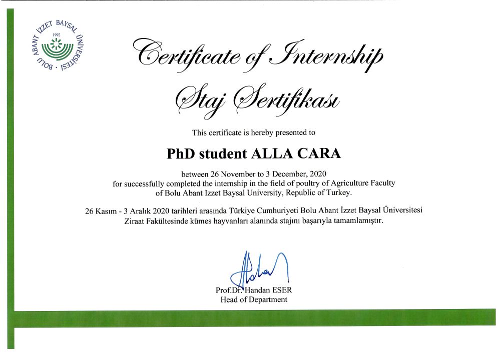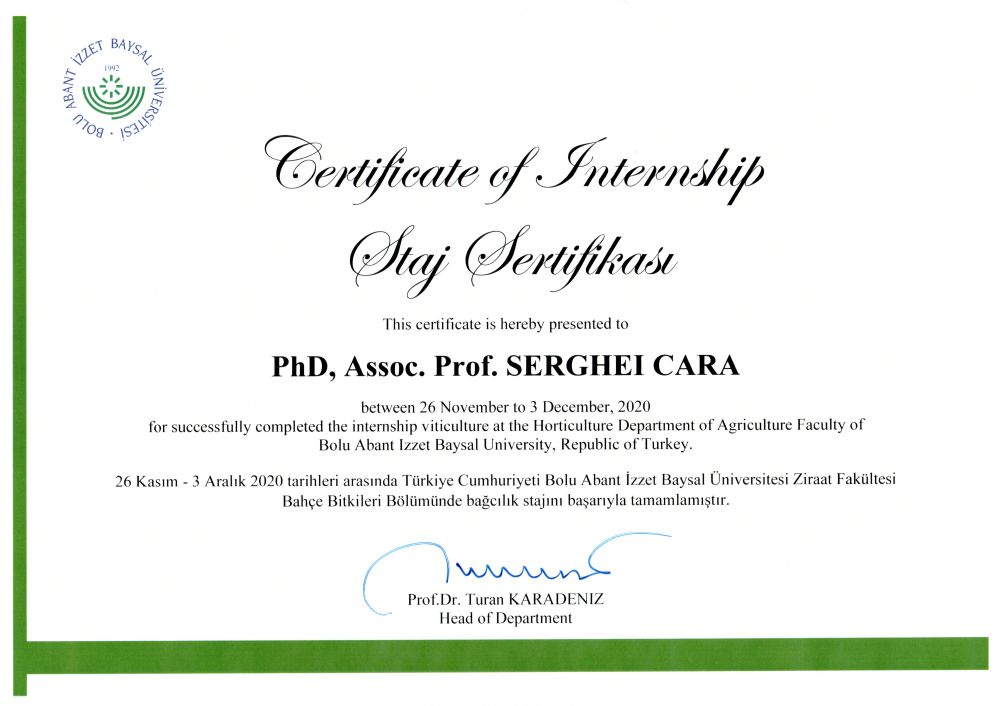 Komrat Devlet Üniversitesi çalışanlarından Kara Serghei Prof.Dr.Turan Karadeniz rehberliğinde bağcılık alanında, Kara Alla Handan Eser yönetiminde kümes hayvancılığı departmanının araştırma laboratuvarlarında Bolu Abant İzzet Baysal Üniversitesi'nde araştırma stajlarını başarı ile tamamladı.