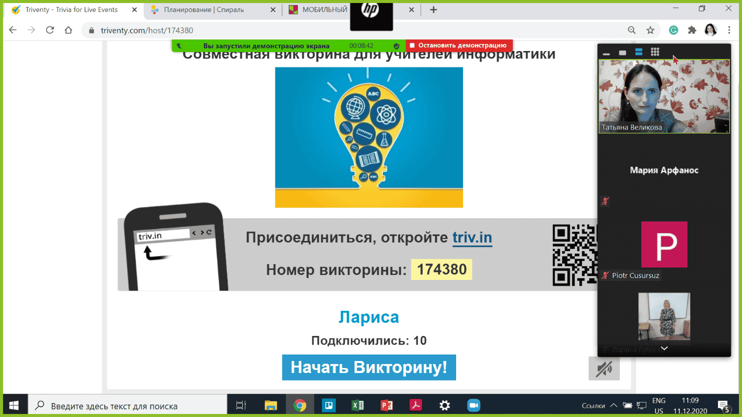 Был поставлен акцент на технологиях, которые учителя могут использовать для организации гибридного обучения с учениками по информатике и на обучении в дистанционном формате. Учителя увидели на практике как можно организовать проектную работу в сессионных залах Zoom конференции. Для мотивации изучения информатики были продемонстрированы возможности онлайн сервиса https://www.learnis.ru, разработан веб квест https://www.learnis.ru/321436/. Учителя учувствовали в создании совместных, коллаборативных викторин; познакомились с возможностью создания презентаций Canva и запуск в LIVE режиме, который позволяет задавать вопросы; узнали про сервис https://spiral.ac. Инструменты, предложенные учителям информатики, позволят разнообразить образовательный процесс и повысить качество организации обучения с использованием технических средств обучения. Слушатели курсов активно делились своим опытном, демонстрировали имеющиеся презентации и электронные тесты по информатике. Преподаватели проанализировали электронные ресурсы, предложили рекомендации по их оформлению, показали возможности MS Power Point, которые позволяют сделать презентацию более эффектной и удачной для осуществления образовательных целей. Слушатели курсов были записаны на электронный курс, размещённый на платформе Moodle. В курсе размещены учебно-методические материалы для обучения, итоговые тесты по каждому модулю. Учителя проявили ответственное отношение, что способствовало усвоению программы курсов повышения квалификации в полном объёме, успешной сдачи итоговых тестов.