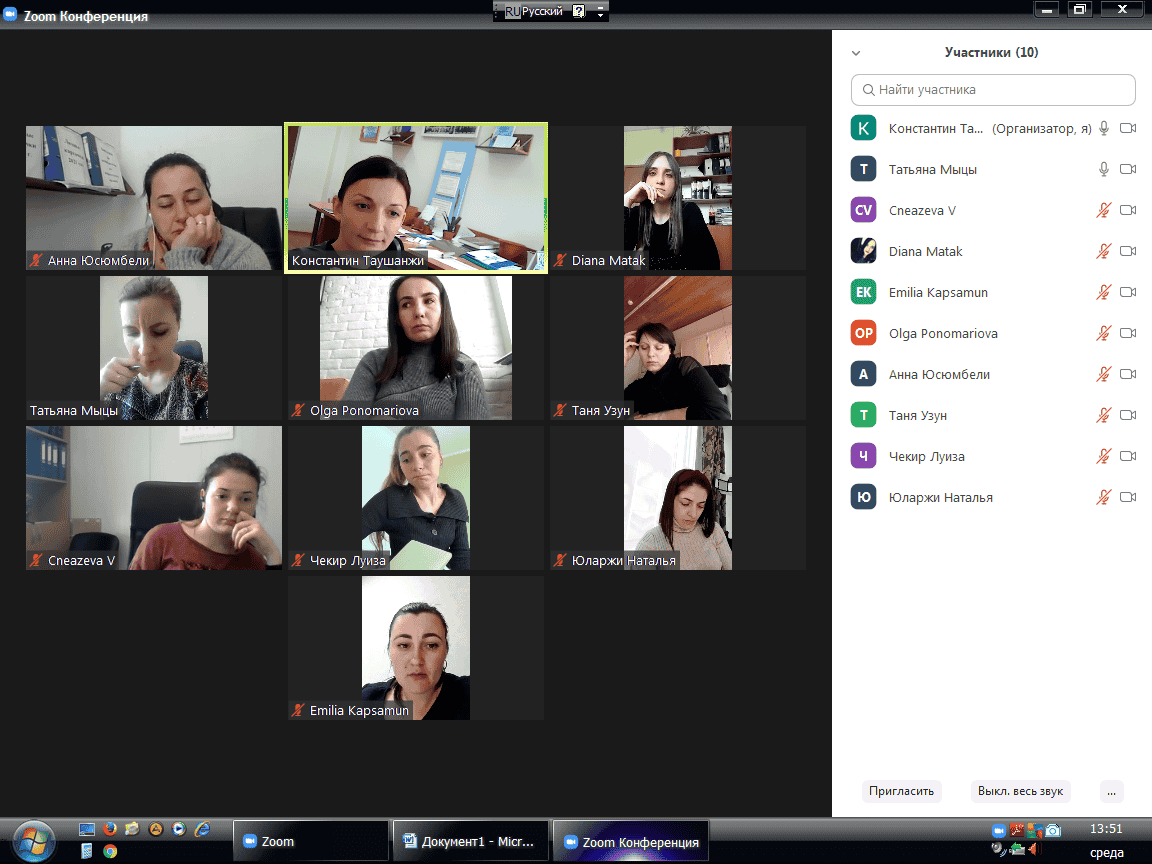 21.04.2021 года для студентов магистратуры группы ЗМЭБУ-19 руководителем практики от кафедры, доктором экономики, конференциар университар Марией Карабет и руководителями практики от предприятий была организована онлайн-встреча, в ходе которой был проведен инструктаж о предстоящей исследовательской практике.