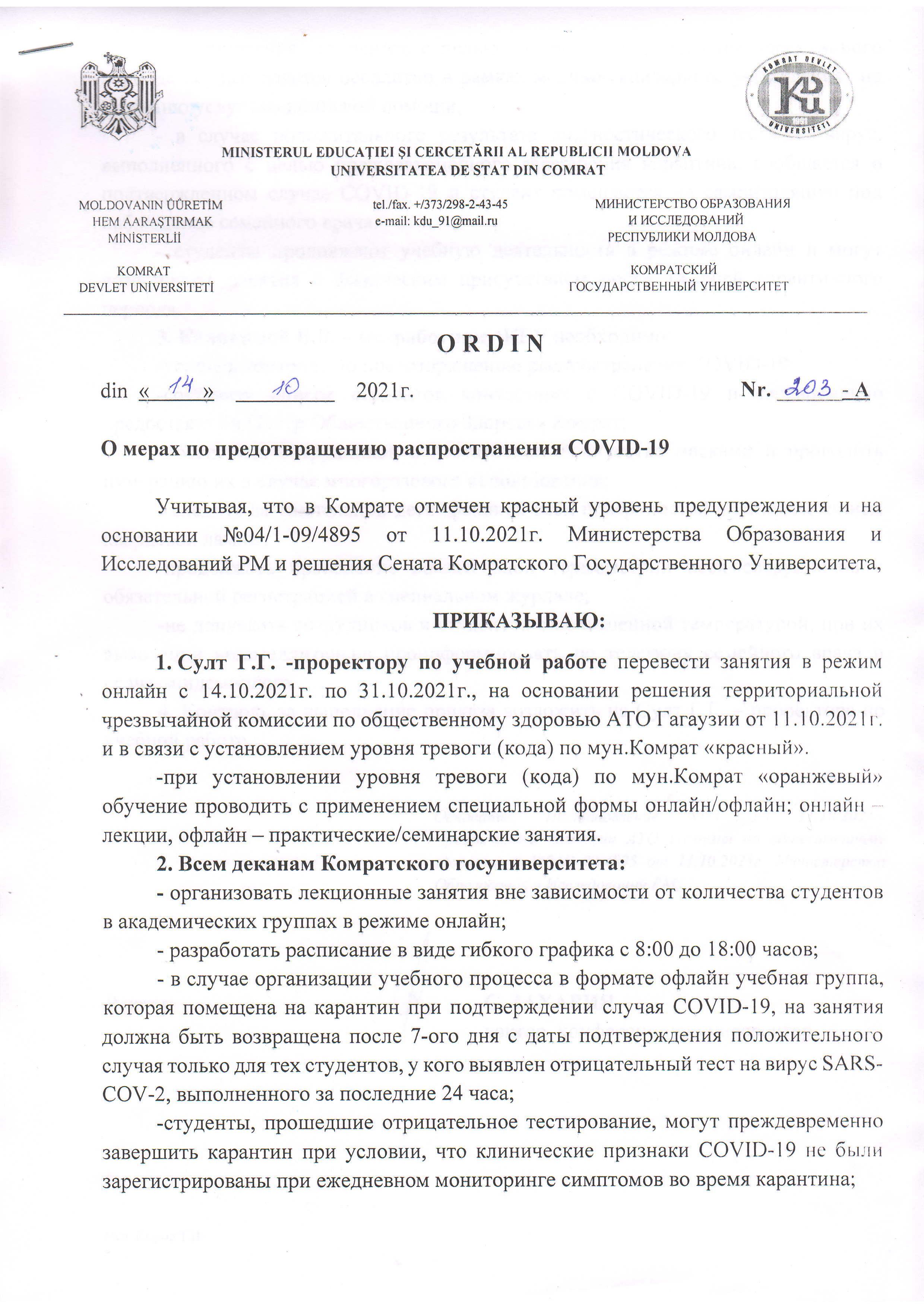 Приказ о мерах по предотвращению распространения COVID-19, от 14.10.2021