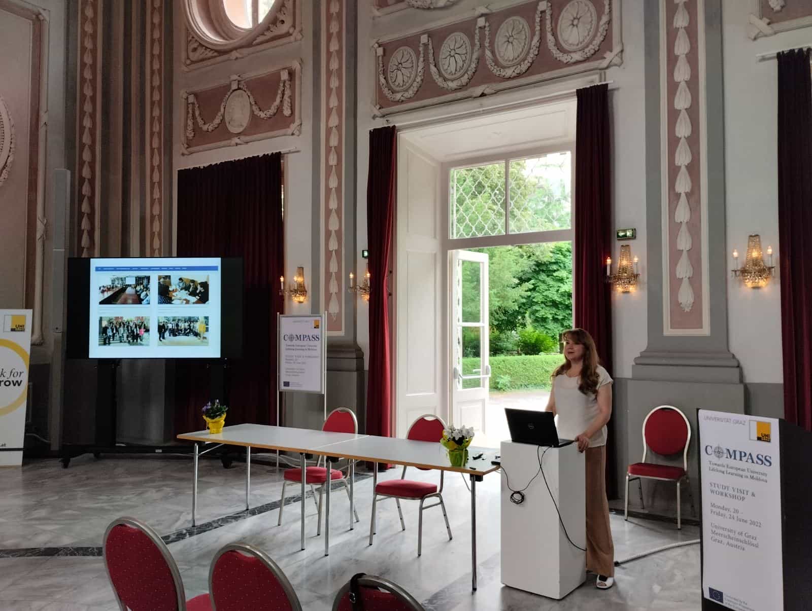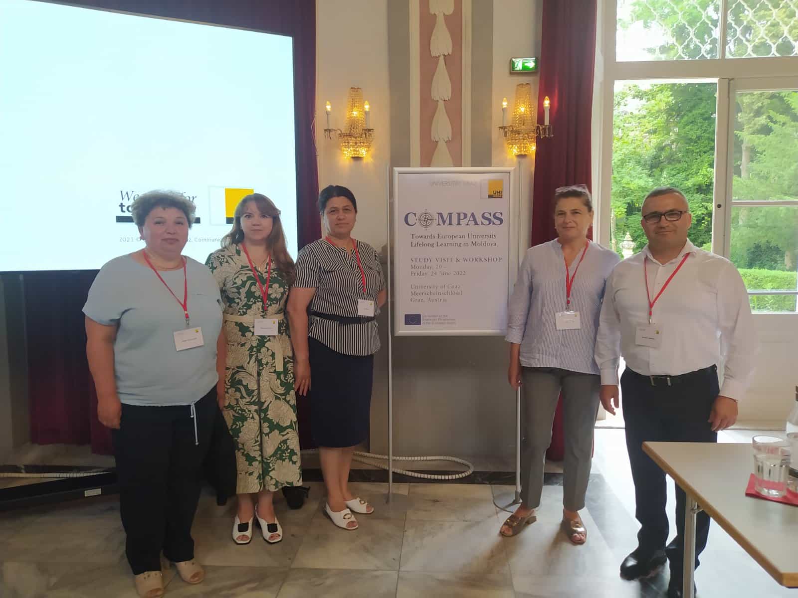 В соответствии с планом реализации деятельности международного проекта TOWARDS EUROPEAN UNIVERSITY LIFELONG LEARNING MODEL IN MOLDOVA”- COMPASS, 597889-EPP-1-2018-1-MD-EPPKA2-CBHE-SP, ERASMUS + 20-24 июня 2022 года команда проекта COMPASS от Комратского государственного университета совместно с представителями университетов-партнеров Республики Молдова и представителями Министерства образования и исследований Республики Молдова приняла участвовала в ознакомительном визите в Университет GRAZ - АВСТРИЯ (https://www.uni-graz.at/en/).