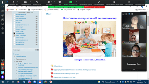 В ходе установочной конференции студенты получили методические рекомендации по проектированию различных форм учебно-воспитательной работы с позиции межкультурного воспитания, а также были обозначены основные средства и методы, используемые в межкультурном воспитании детей дошкольного возраста. Куррикулум практики расположен на платформе «MOODLE», к которому студенты имеют доступ. Практика будет проводиться по месту жительства студентов. Руководителями педагогической практики назначены преподаватели кафедры Педагогики и Психологии Левинтий Г.Г., Влах М.К.