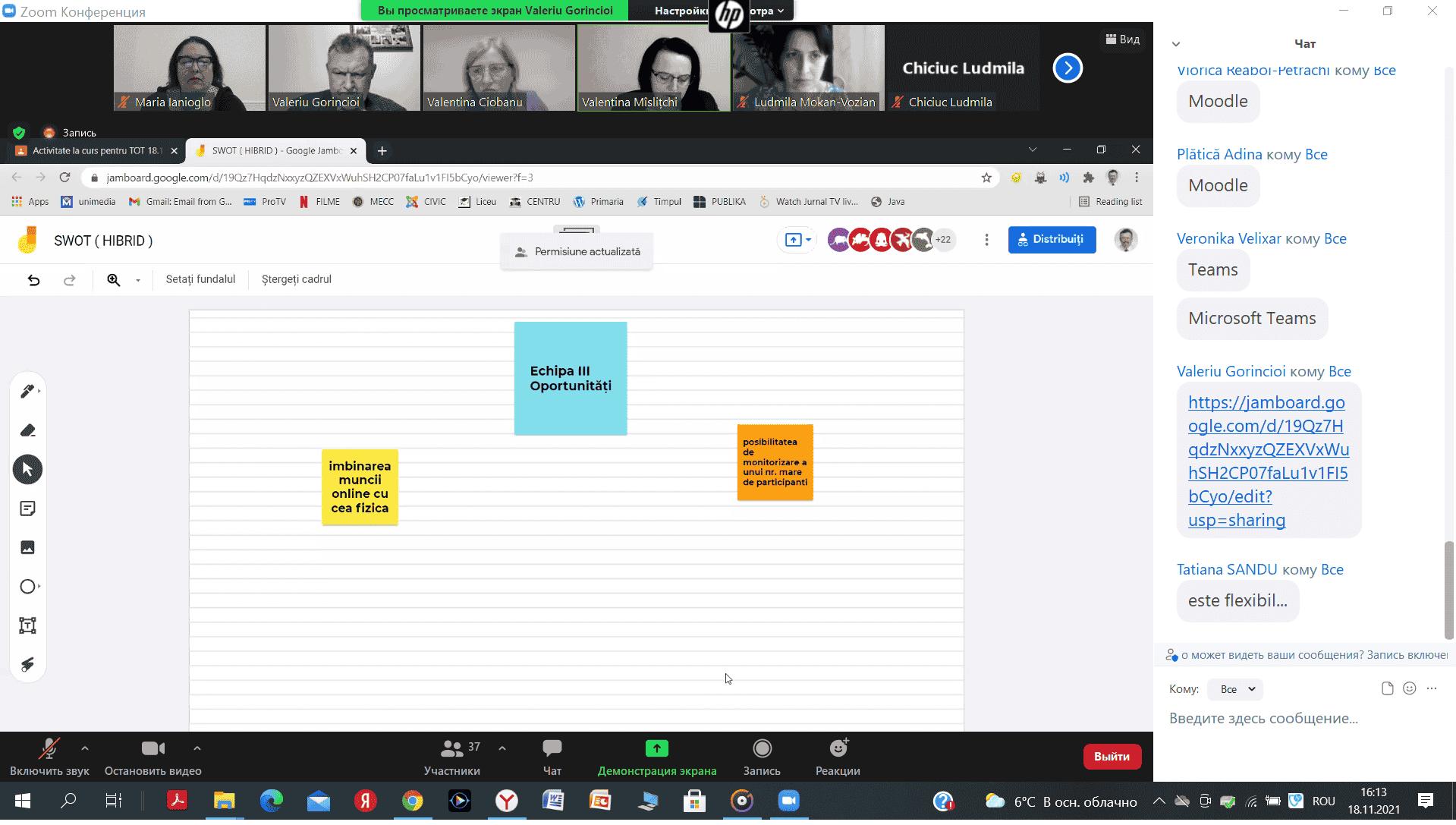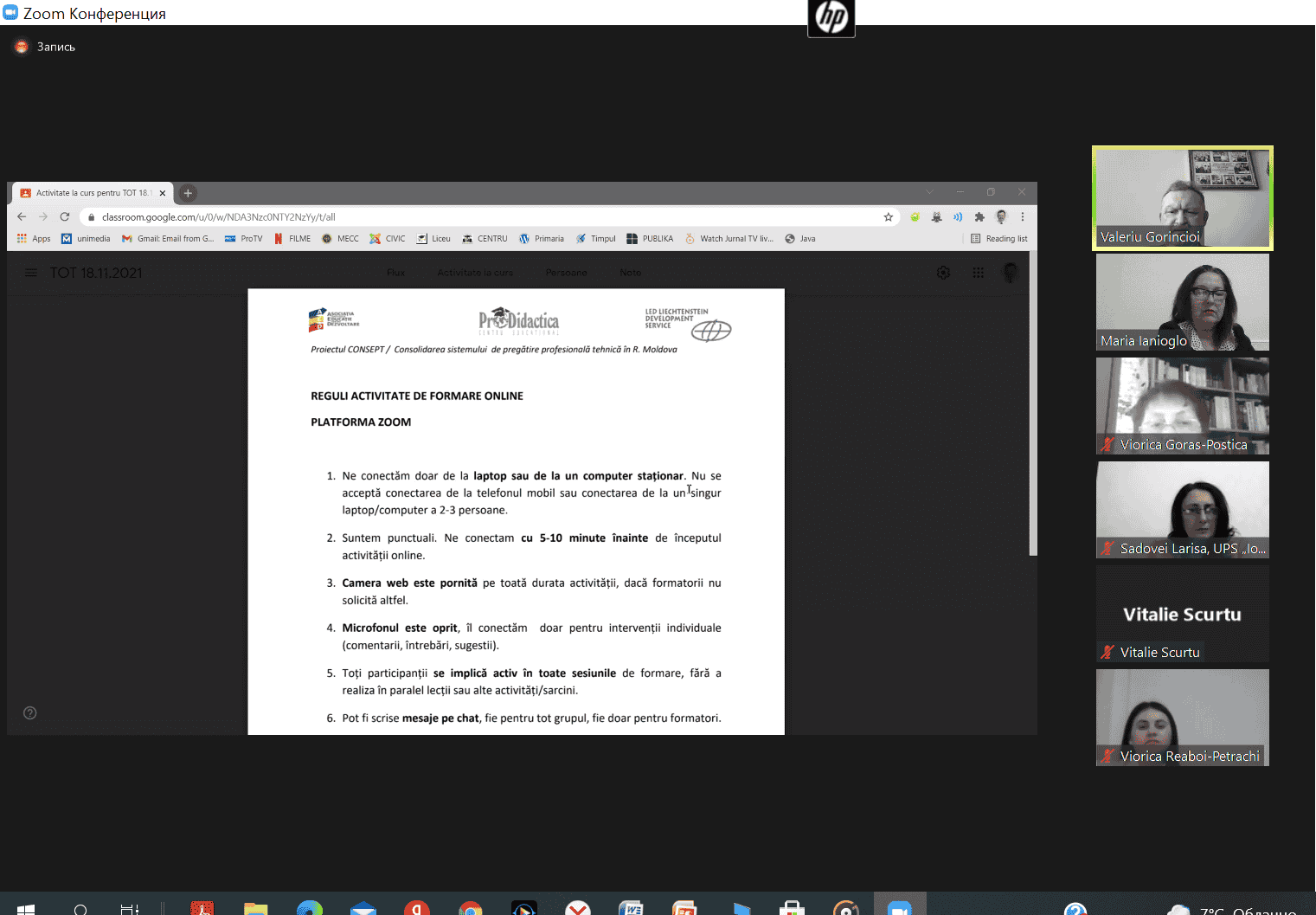 Преподаватели Комратского государственного университета, члены рабочей группы и участники реализации проекта по продвижению межкультурного воспитания в процессе профессиональной подготовки будущих педагогов «Promovarea şi dezvoltarea educaţiei interculturale în formarea iniţială a cadrelor didactice» (EIC), 18 ноября с.г. приняли участие в онлайн-семинаре «Platforme educaţionale online», организованном Образовательным Центром PRO DIDACTICA.