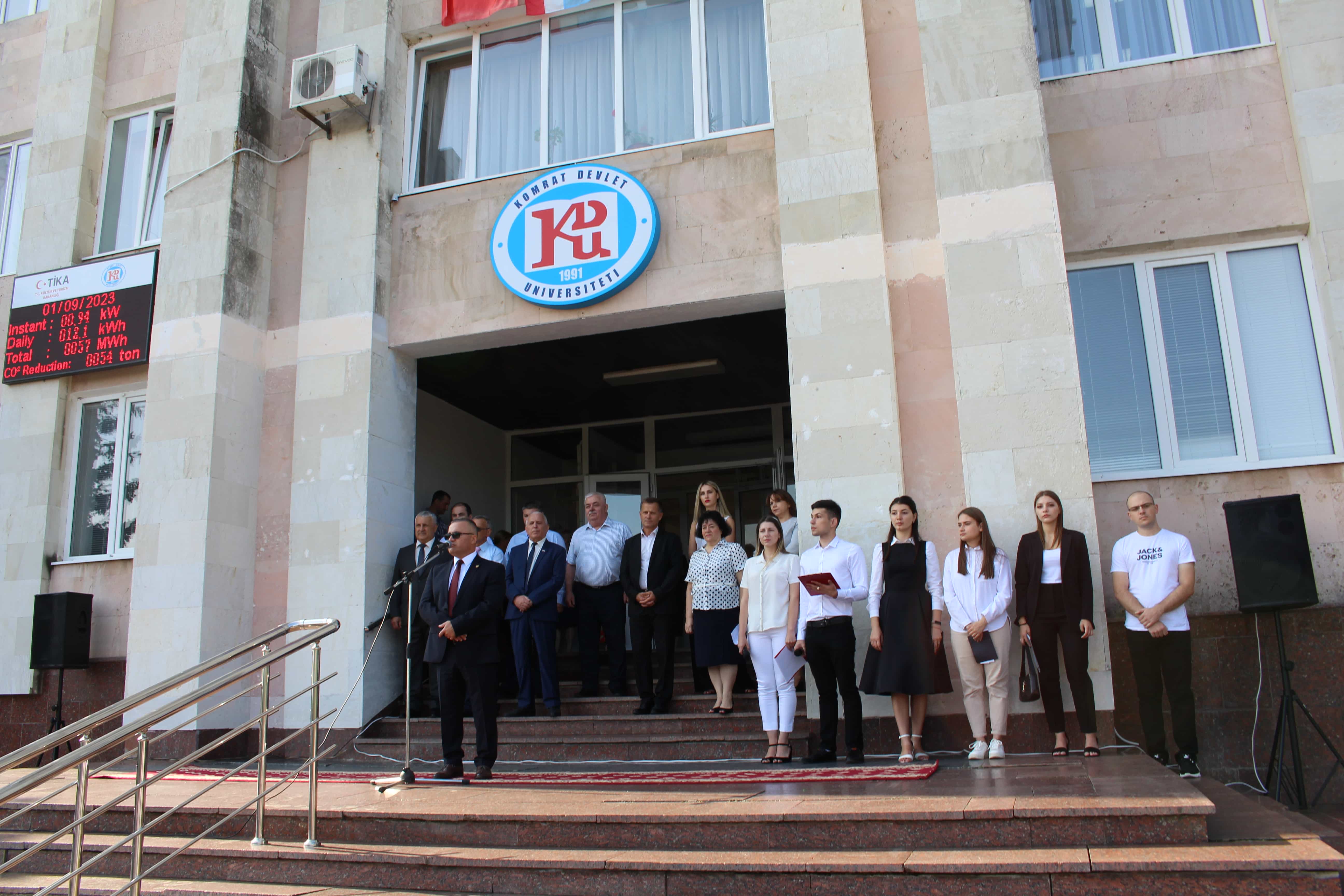 Ректор обратился к студентам-первокурсникам: «Сегодня для вас – особенный день. Вы вступаете в ряды студентов Комратского государственного университета! И этот день – очередной старт, начало нового этапа жизни… Вы стали студентами одного из лучших Вузов нашей страны. КГУ – большая многонациональная семья. У нас учатся студенты из Турции и Азербайджана, Украины и др. стран. Мы гордимся нашим высоким авторитетом на мировом уровне, полученным в результате международной деятельности. Многие выпускники КГУ занимают высокие посты как у нас в регионе, так и за ее пределами, что говорит о высоком качестве обучения в нашем университете, которое складывается из требовательности профессорско-преподавательского состава и материально-технической базы нашего ВУЗа».
