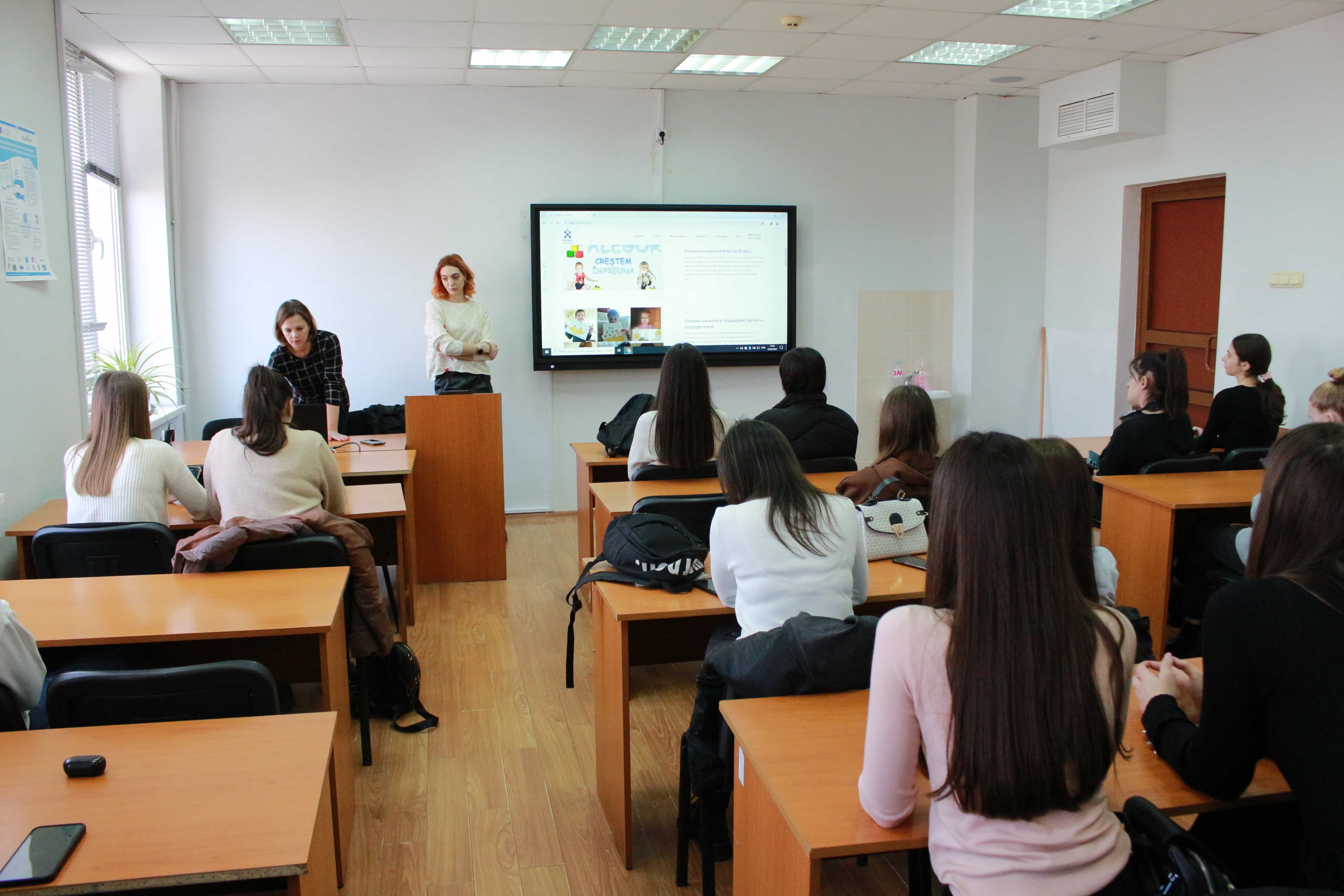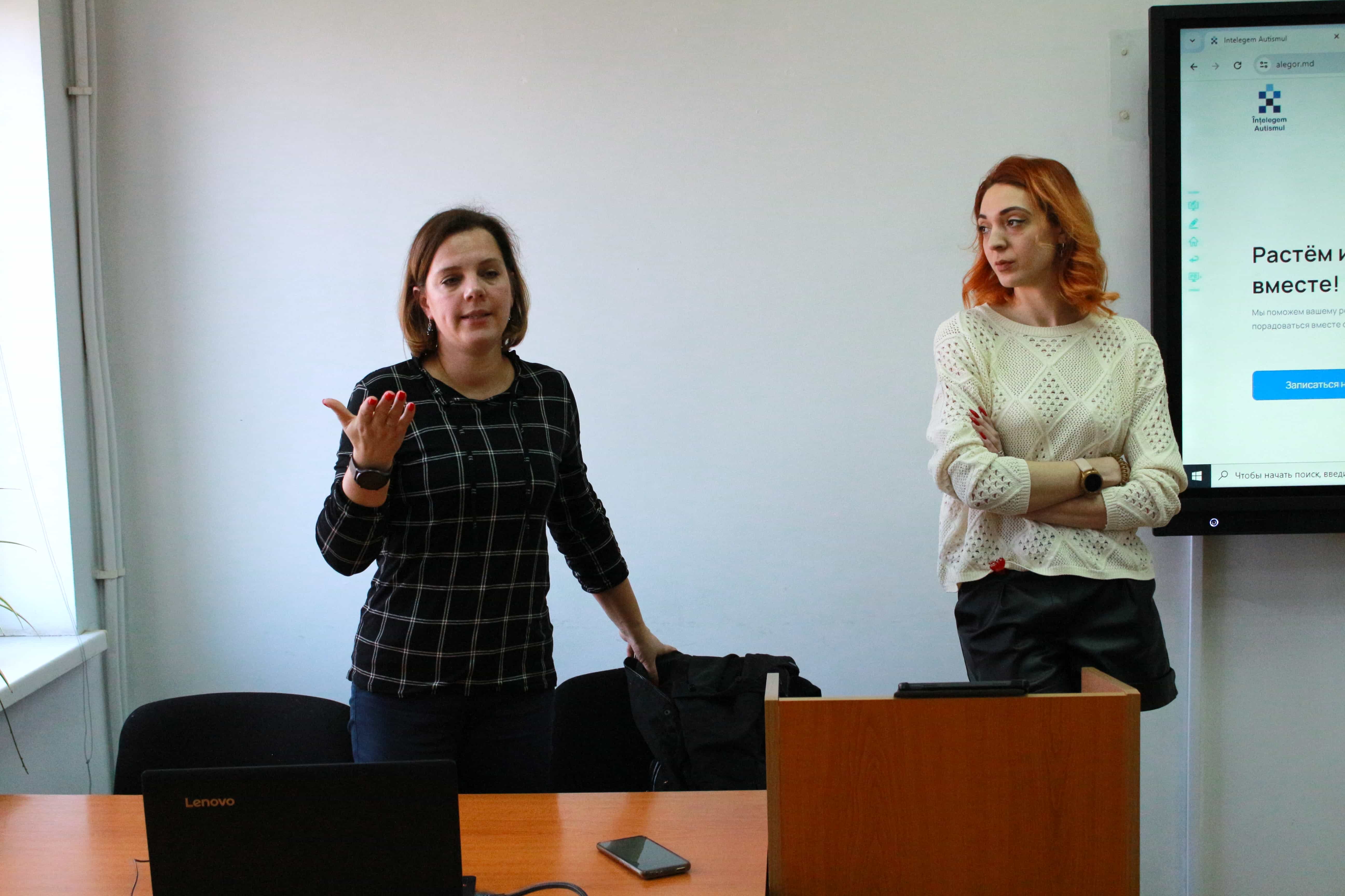 23.02.2024 на Факультете национальной культуры состоялась встреча представителей организации «Intelegem Autismul» со студентами педагогических специальностей. Мероприятие было посвящено информированию студентов о функционировании детского коррекционного центра «Алегор» по работе с детьми с аутизмом и другими особенностями ментального развития. Сотрудники Центра рассказали о том, кто такие дети с аутизмом, чем они отличаются от других детей, с какими сложностями сталкиваются они и их семьи и о том, как прикладной анализ поведения помогает улучшить качество жизни особенных деток и их семей.