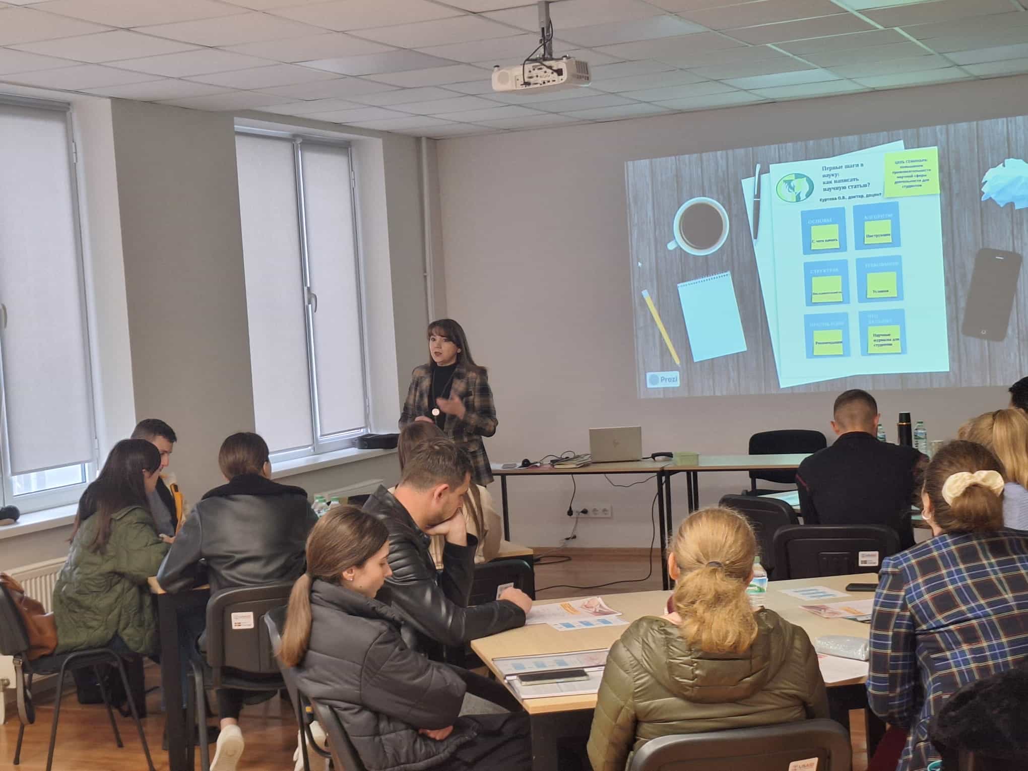 В ходе мероприятия согласно Программе студенты познакомились с особенностями академического письма и видами научных статей и научных тезисов, структурой научной статьи, требования, предъявляемыми к статьям при публикации в журналах и сборниках конференций (композиция статьи, соблюдение установленного процента уникальности текста, процесс написания и публикации), основными трудностями, с которыми может столкнуться студент при написании научной статьи и распространенными ошибками начинающих.