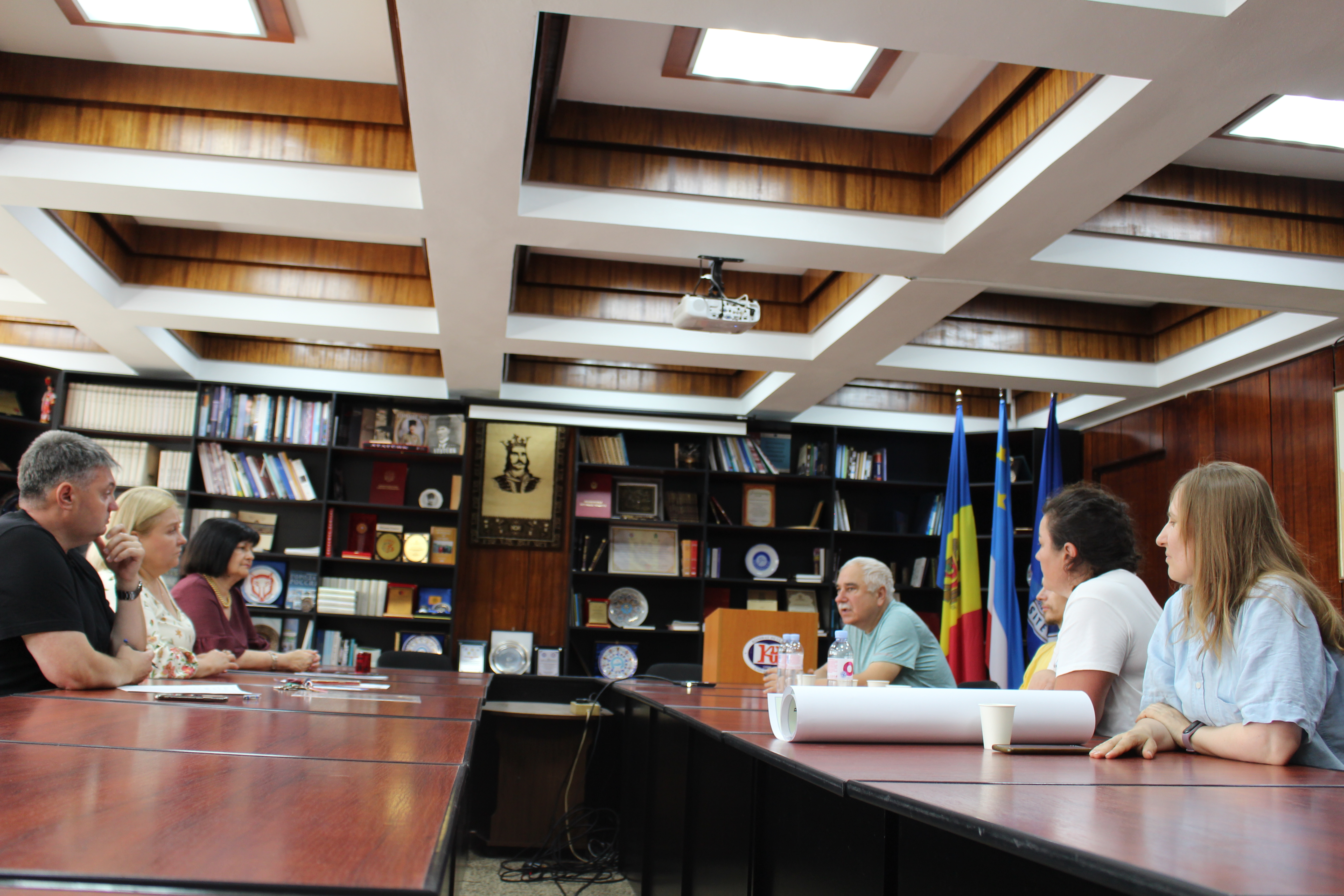 24 июня 2025 года в Комратском государственном университете состоялась рабочая встреча с группой сотрудников лаборатории географии Института экологии и географии Государственного университета Молдовы. Со стороны Комратского государственного университета во встрече приняли участие: проректор по научной работе и международным связям, доктор, конф.унив. Генова С.И., декан аграрно-технологического факультета, доктор хабилитат, конф.унив. Кара С.В., заведующая научной библиотекой Гарчева Ж.И. Делегацию Института экологии и географии возглавил доктор, ведущий научный сотрудник Оверченко Аурелиу. В рамках встречи были обсуждены ключевые направления дальнейшего сотрудничества, а также вопросы подготовки соглашений о межинституциональном партнёрстве. Стороны договорились о примерных сроках проведения последующих встреч и рабочих визитов. Итогом встречи стала передача в фонд научной библиотеки Комратского государственного университета Атласов бассейна Ялпуг, а также электронных картографических материалов. Указанные ресурсы могут быть использованы преподавателями и студентами в образовательных целях и в рамках научно-исследовательской деятельности.