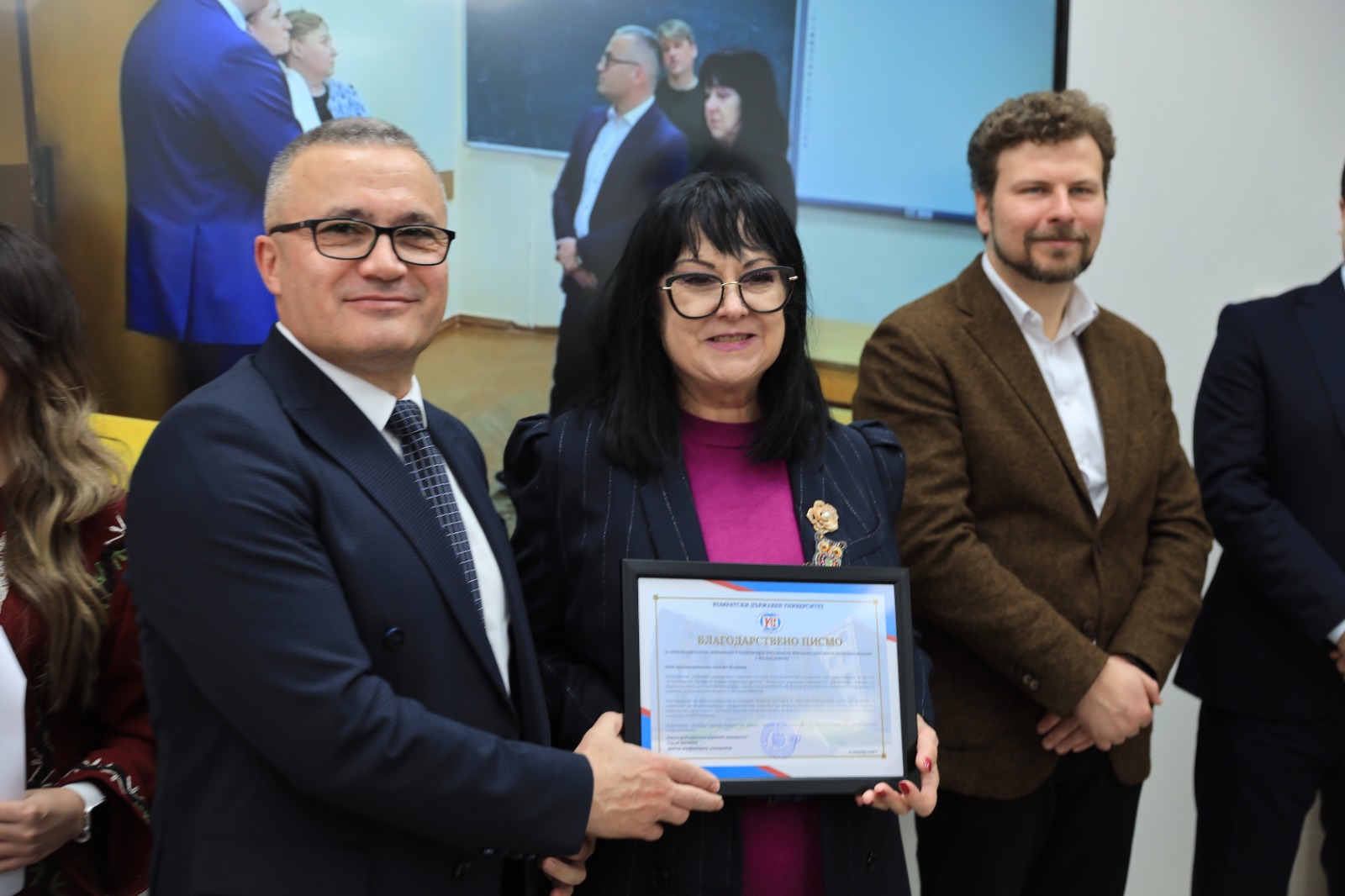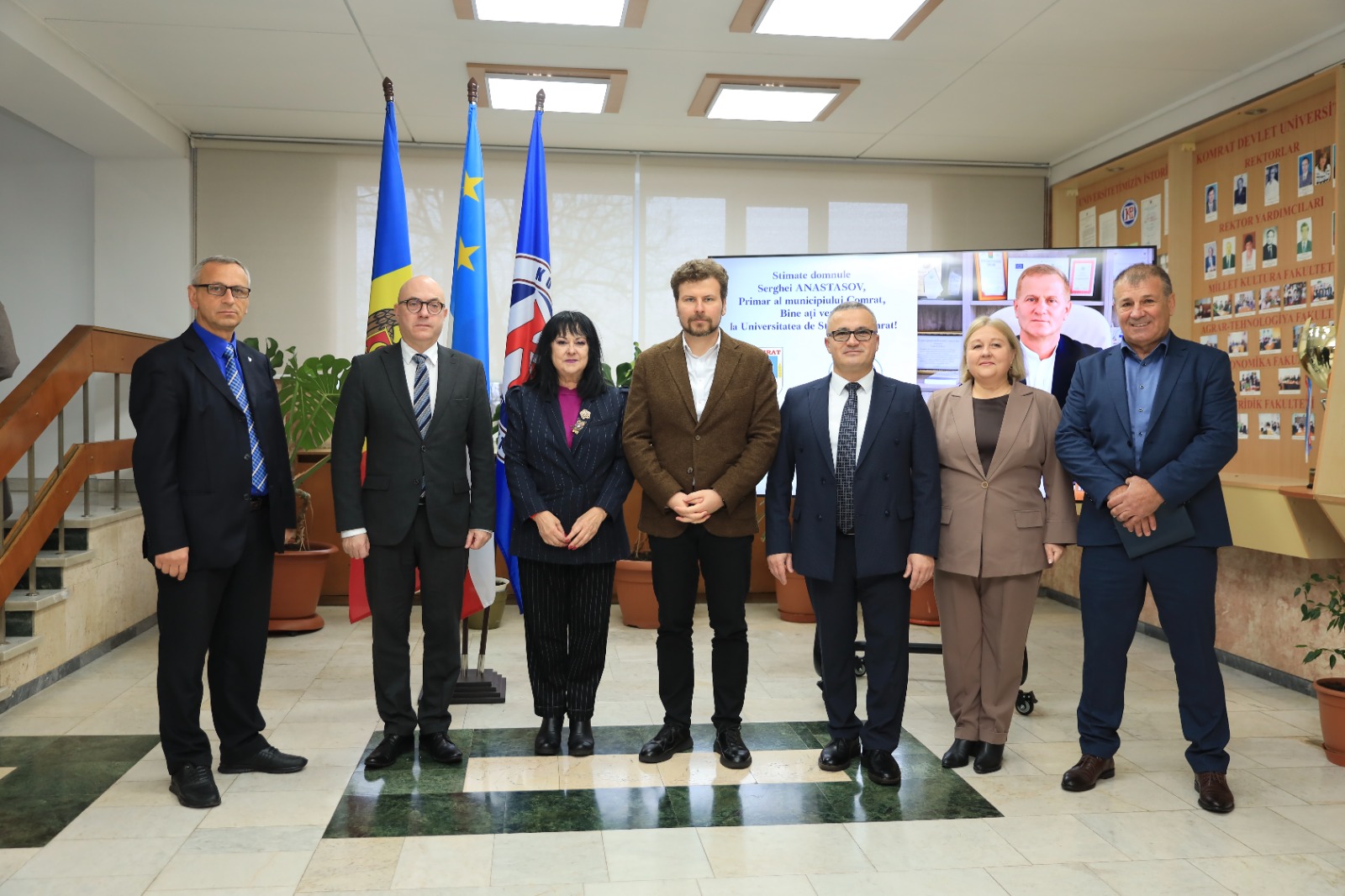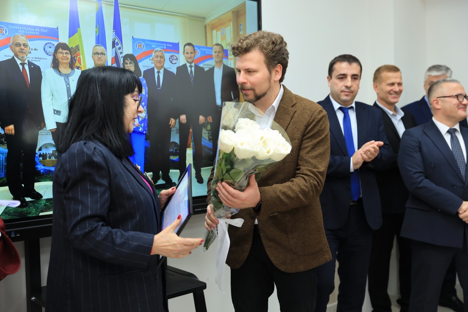 27 ноября 2025 года в Комратском государственном университете состоялось торжественное открытие Центра болгарского языка и культуры. Новый центр создан при поддержке Посольства Республики Болгария в Республике Молдова и Ассоциации по развитию болгарской общины в Молдове. Открытие Центра стало важным шагом в укреплении культурных связей и расширении возможностей для изучения болгарского языка, истории и традиций в Гагаузии. В рамках мероприятия были представлены основные направления деятельности Центра, учебные программы и перспективы сотрудничества с болгарскими партнёрами. Ректор КГУ, доктор конференциар университар Захария С.К., подчеркнул значимость данного проекта для университета и региона, отметив, что создание Центра болгарского языка и культуры открывает новые горизонты для образовательного и культурного взаимодействия. «Мы рады укреплению партнёрства и благодарны болгарской стороне за поддержку и доверие», — отметил ректор. Посол Республики Болгария в Республике Молдова Mrs. Maya Dobreva, выступая на открытии Центра, подчеркнула важность развития болгарского языка и культуры в Гагаузии и отметила, что создание данного Центра является значимым вкладом в укрепление наших культурных связей. Готовность высоко ценится Комратского государственного университета развиваться и уверены, что этот Центр станет пространством для диалога, образования и новых совместных инициатив.