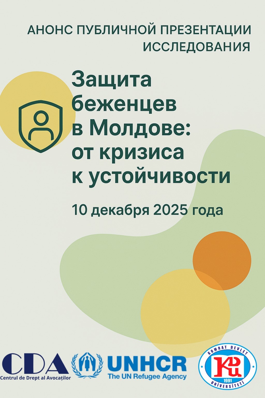 Будем рады видеть всех участников! Не упустите шанс узнать больше о системе защиты беженцев в Молдове и обсудить пути её улучшения.