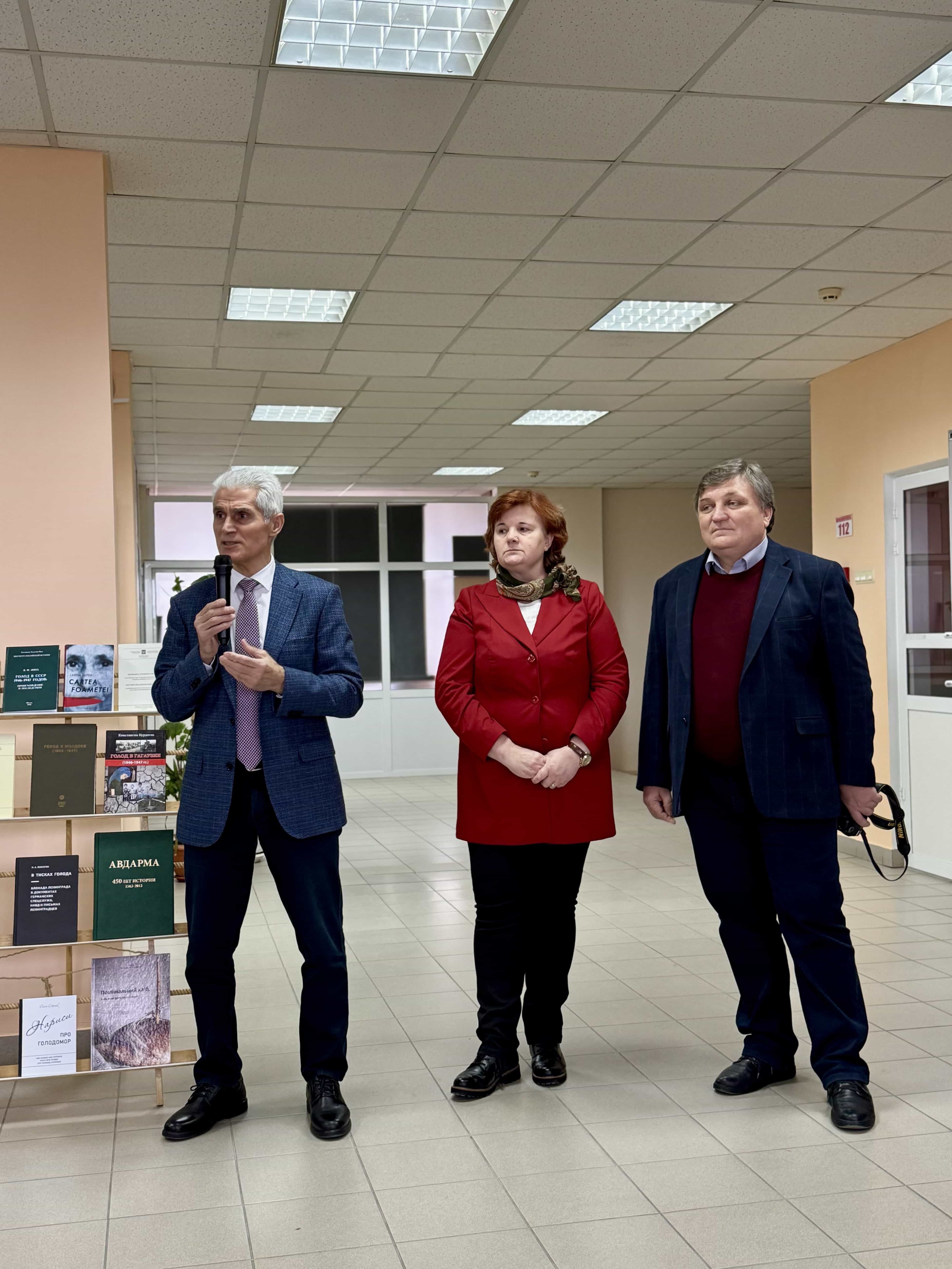 С приветственным словом выступил ректор КГУ, доктор, конференциар, универсиатр Захария С.К., отметив важность сохранения исторической памяти и необходимость донести объективную информацию до молодого поколения, которому предстоит формировать будущее страны и региона. Примар мун. Комрат Сергей Анастасов подчеркнул значимость работы инициаторов выставки, которые подробно осветили трагедию голода, связанного с политикой сталинского режима.