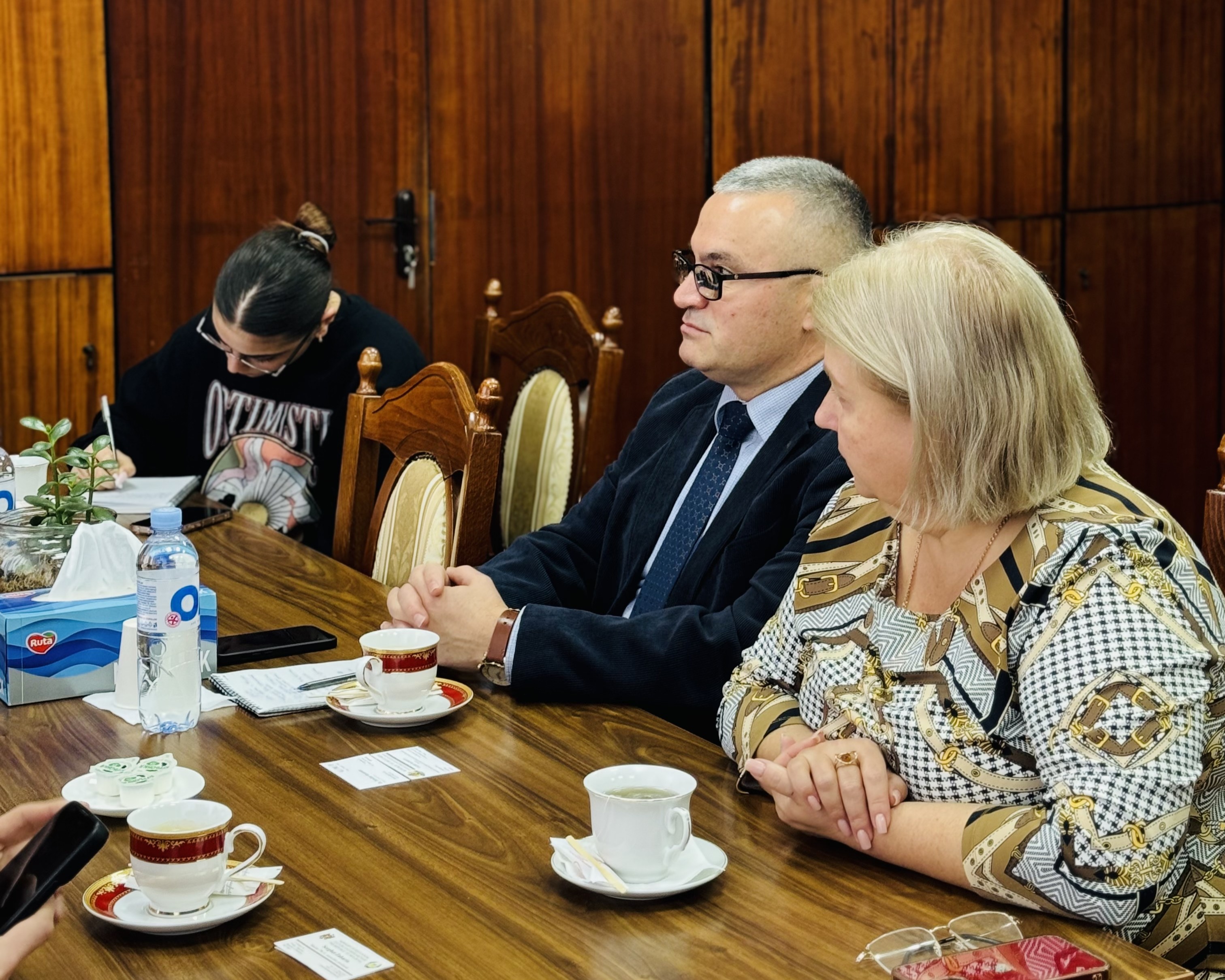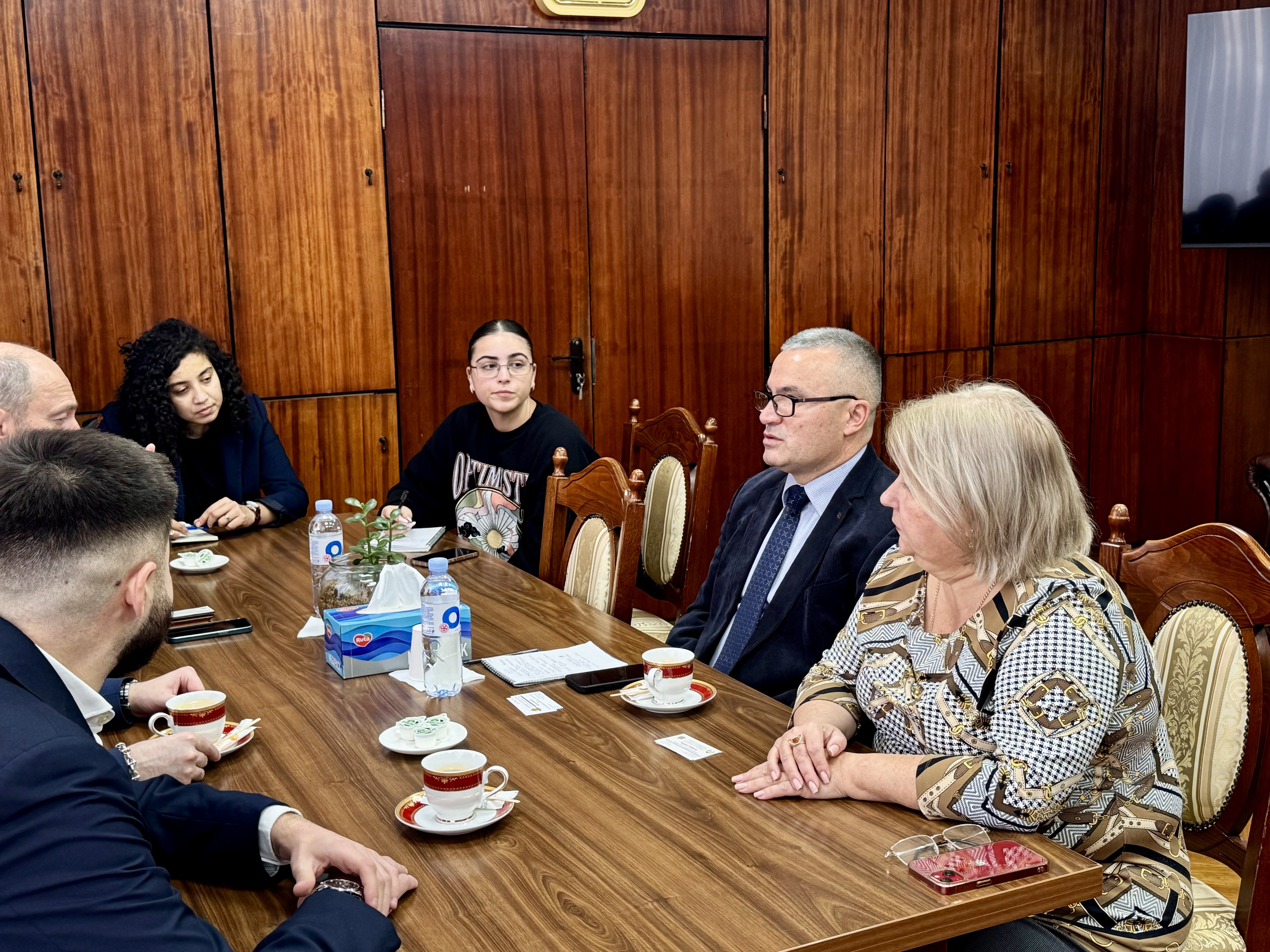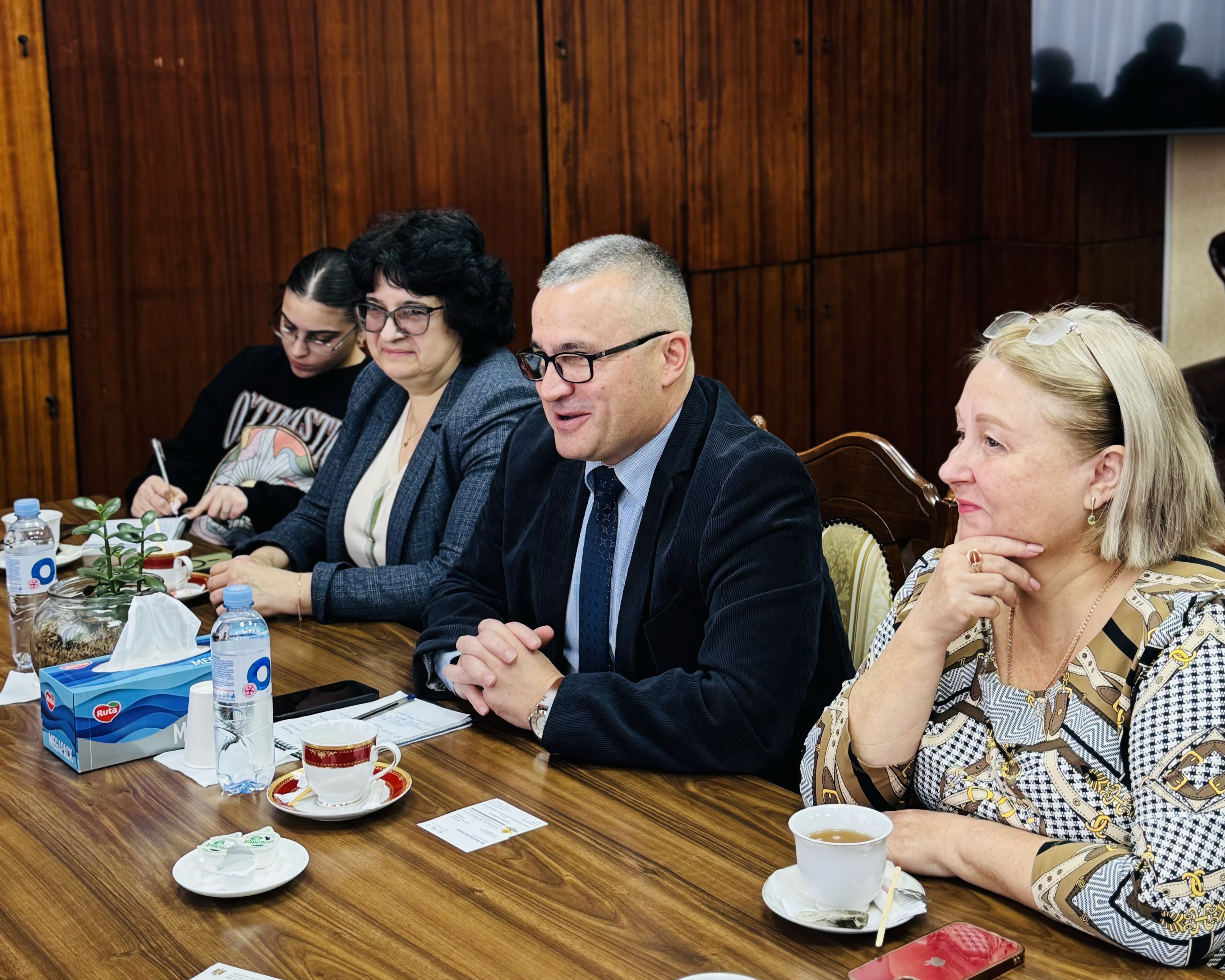 12 декабря 2025 года в Комратском государственном университете состоялась встреча руководства КГУ с делегацией Организации Объединённых Наций. Участники обсудили историю создания университета, его современную роль в образовательном пространстве региона, а также ключевые направления развития. В ходе беседы представители КГУ рассказали о том, как формировался университет, какие этапы прошёл с момента основания и какие стратегические цели ставит сегодня. Особое внимание было уделено расширению образовательных программ и укреплению научного потенциала. Обсуждались вопросы трудоустройства выпускников, взаимодействия с работодателями и повышения качества подготовки специалистов. Делегация ООН получила подробную информацию о языках обучения в КГУ, структуре факультетов и открытии новых центров изучения иностранных языков. Отдельный блок встречи был посвящён партнёрским отношениям университета с зарубежными образовательными и научными учреждениями, работе языковых курсов, литературоведческим инициативам и магистерским программам. Значительная часть обсуждения касалась роли КГУ в продвижении гагаузского языка. Представители университета рассказали о государственной политике Республики Молдова в отношении гагаузского языка, о вкладе гагаузских учёных и общественных деятелей в его развитие, а также о проектах, направленных на поддержку культуры, расширение сферы употребления языка и повышение качества гагаузского языкового образования. На встрече также были затронуты вопросы социолингвистической ситуации в регионе, устойчивости языковой среды и значимости КГУ как ключевого института в сохранении и популяризации гагаузского языка и культуры.