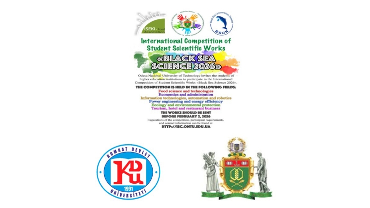Одесский национальный технический университет (Украина) приглашаем вас принять участие в Международном конкурсе студенческих научных работ «Black Sea Science 2026». Прием заявок для участия до 2 февраля 2026 года. Направления областей конкурса: пищевая наука и технологии; экономика и управление; информационные технологии, автоматизация и робототехника; энергетика и энергоэффективность; экология и охрана окружающей среды; туризм, гостиничный и ресторанный бизнес. Авторы лучших работ будут приглашены для участия в онлайн-конференции для презентации и обсуждения своих исследований. Участие бесплатное. Подробная информация на официальном сайте: http://isc.ontu.edu.ua/?lang=en