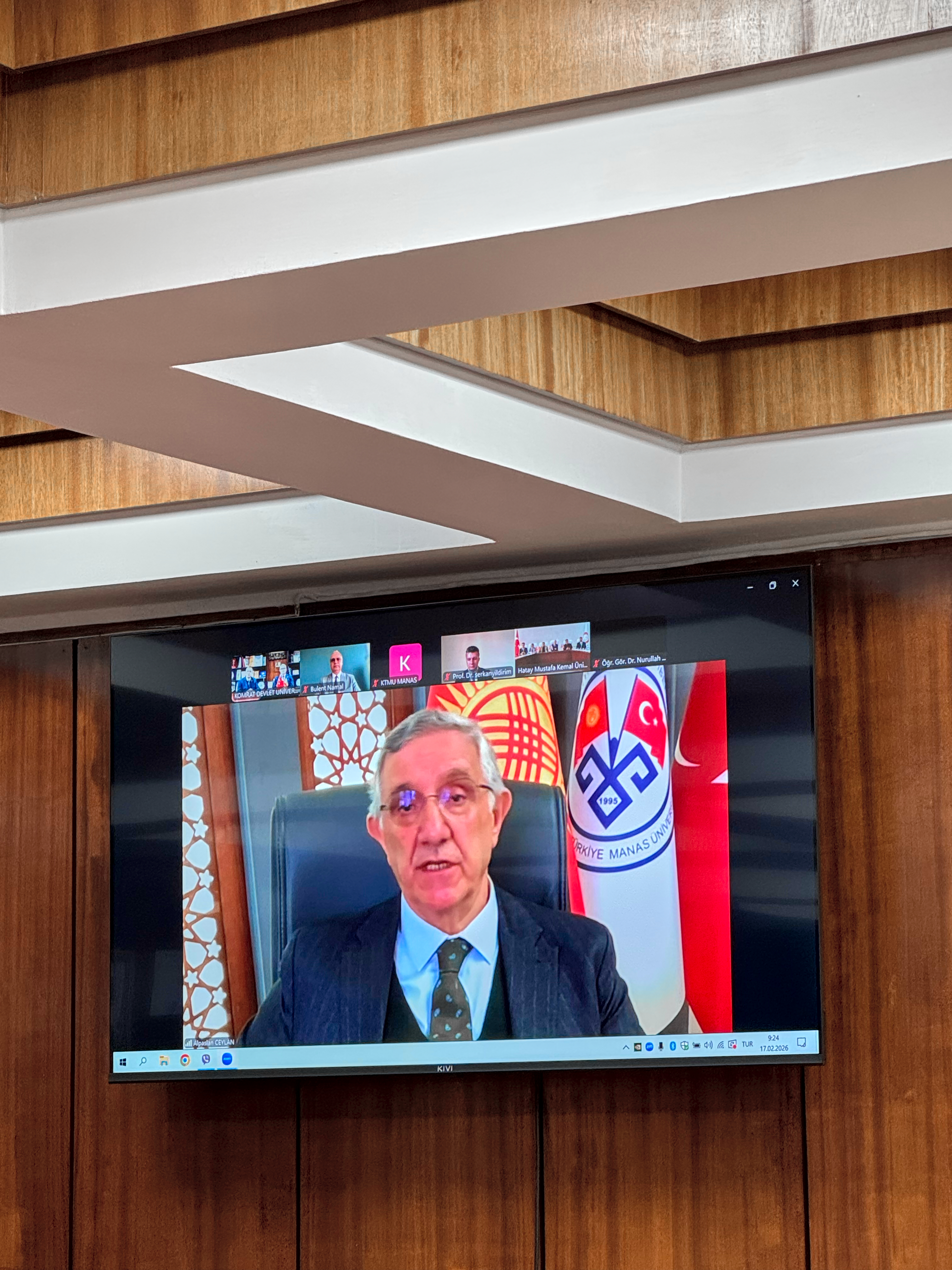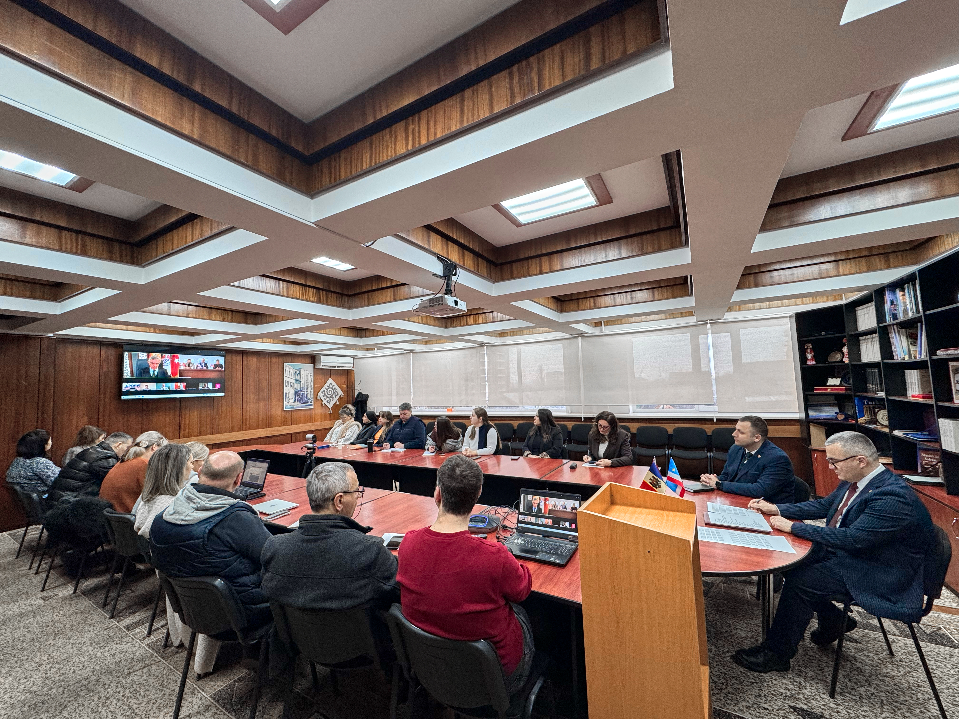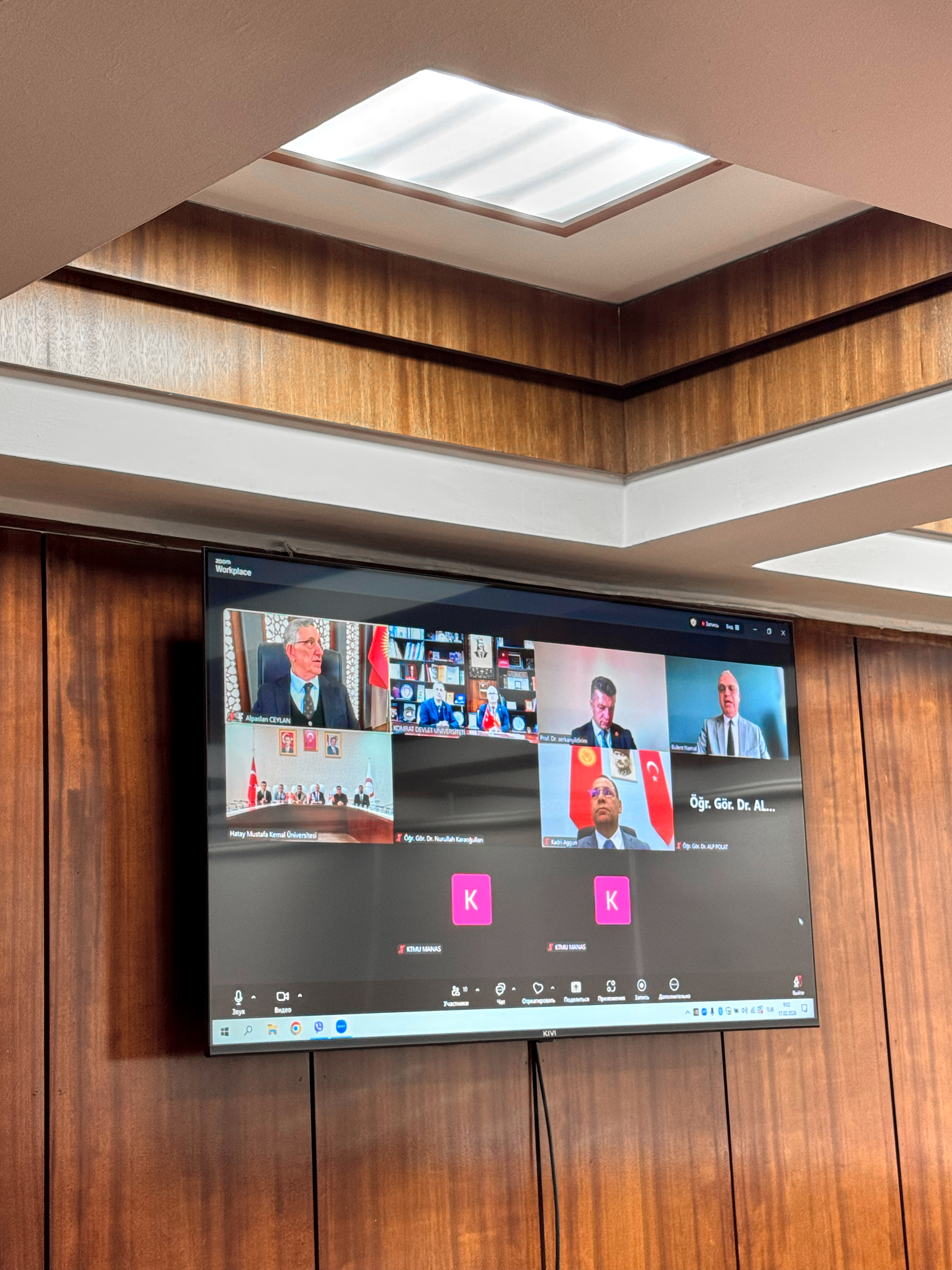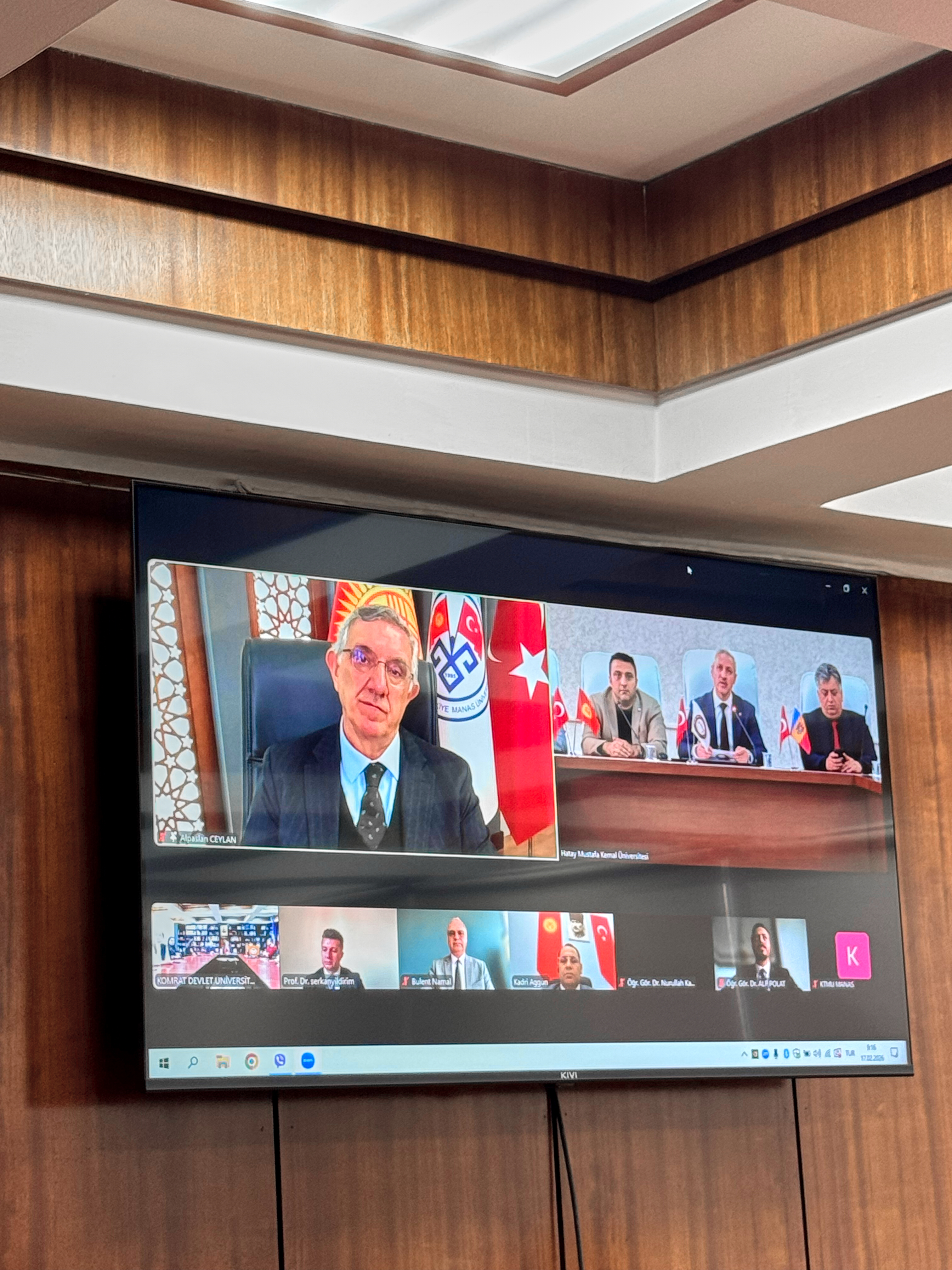 17 февраля 2026 года состоялась онлайн-встреча ректоров трёх университетов, имеющая стратегическое значение для развития международного сотрудничества и укрепления академических связей. В переговорах приняли участие ректор Комратского государственного университета, доктор, конференциар Сергей Захария, ректор Кыргызско-Турецкого университета «Манас», доктор, профессор Алпаслан Джейлан, а также ректор Университета Хатай Мустафа Кемаль, доктор, профессор Вейсель Эрен. В заседании также приняли участие координатор по внешним связям Кыргызско-Турецкого университета «Манас», доктор, профессор Серкан Йылдырым, директор по внешним связям, доктор Кадир Ааггюн, директор Центра преподавания турецкого языка Университета Хатай Мустафы Кемаля, доктор, доцент Хюсейин Куршат Туркан, назначенный от Университета Аксарай при Советнике по образованию Посольства Турецкой Республики в Кишинёве координатор по международным связям и Турции Комратского государственного университета, доктор, доцент Кудрет Сафа Гюмюш, директор Научно-исследовательского центра им. М.В. Маруневич АТО Гагаузия Ирина Константинова, а также сотрудники офисов международных связей и преподаватели трёх университетов.
