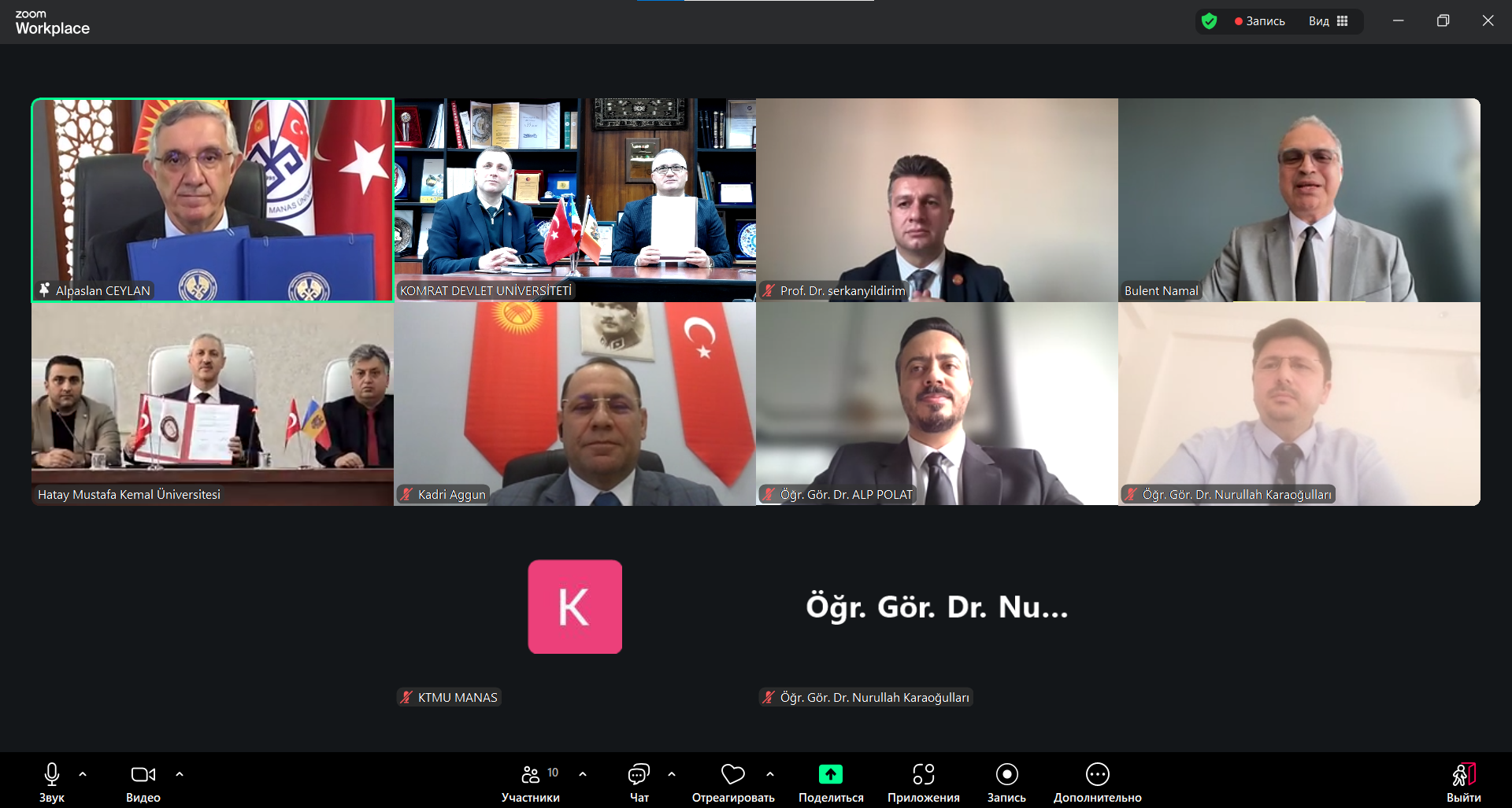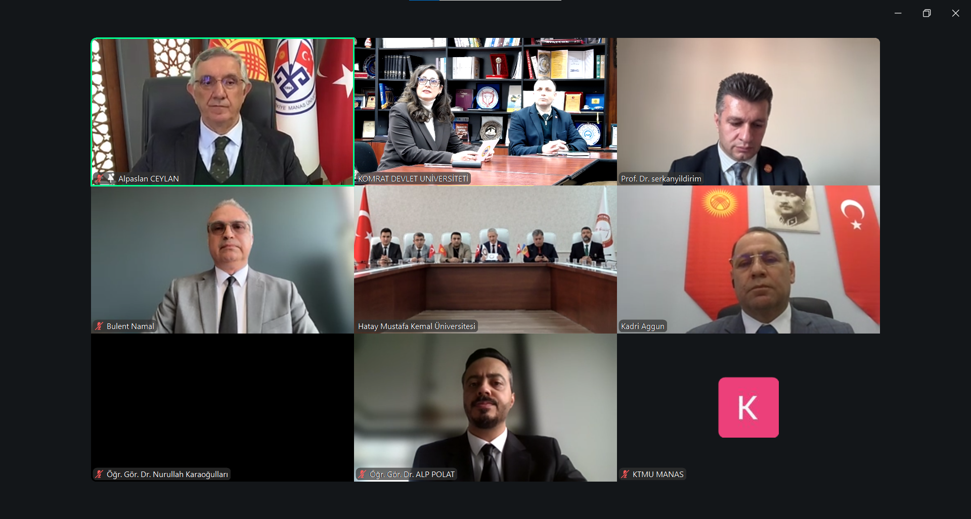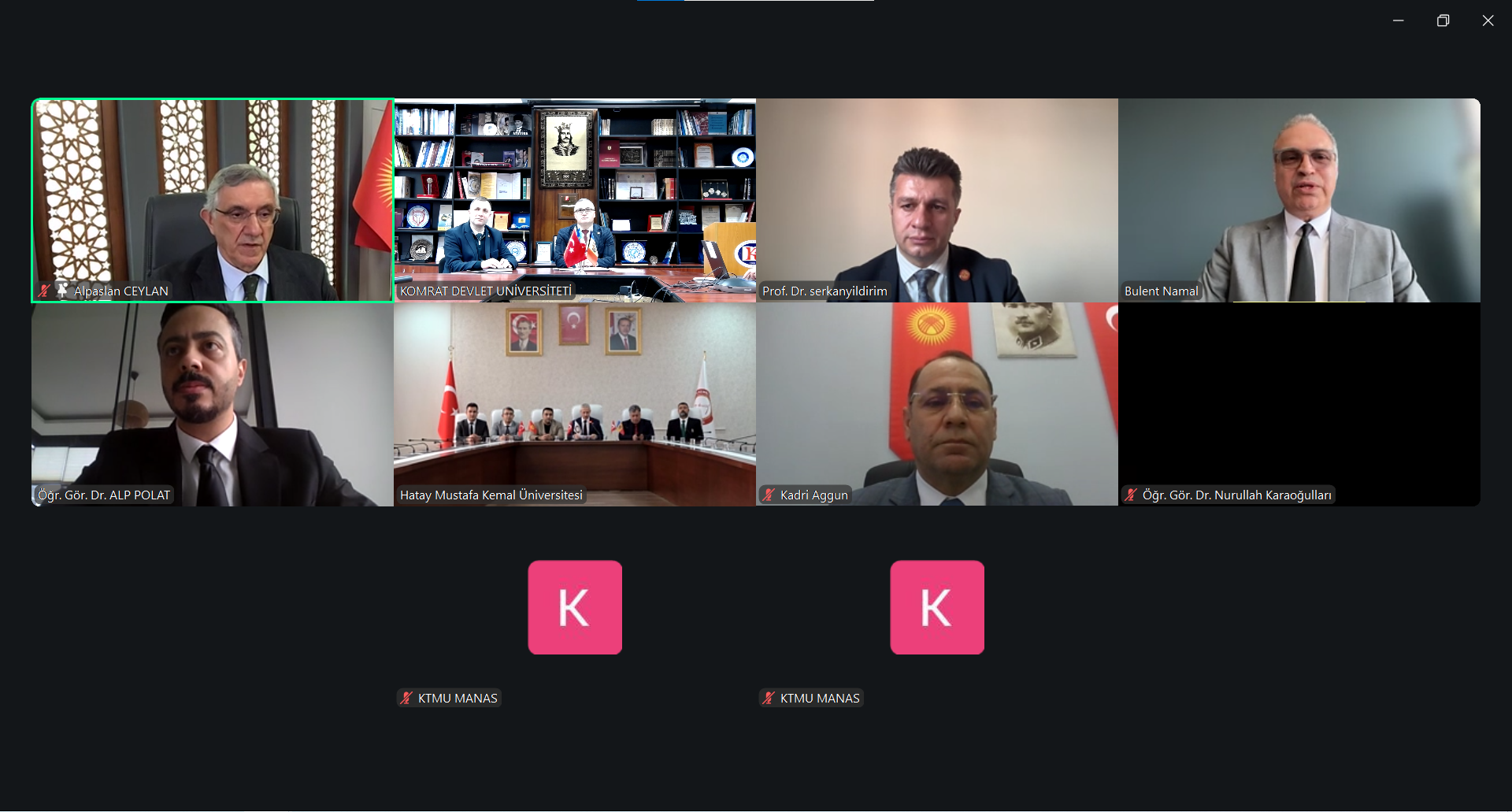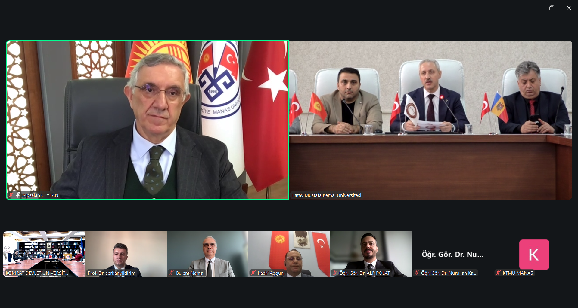 17 февраля 2026 года состоялась онлайн-встреча ректоров трёх университетов, имеющая стратегическое значение для развития международного сотрудничества и укрепления академических связей. В переговорах приняли участие ректор Комратского государственного университета, доктор, конференциар Сергей Захария, ректор Кыргызско-Турецкого университета «Манас», доктор, профессор Алпаслан Джейлан, а также ректор Университета Хатай Мустафа Кемаль, доктор, профессор Вейсель Эрен. В заседании также приняли участие координатор по внешним связям Кыргызско-Турецкого университета «Манас», доктор, профессор Серкан Йылдырым, директор по внешним связям, доктор Кадир Ааггюн, директор Центра преподавания турецкого языка Университета Хатай Мустафы Кемаля, доктор, доцент Хюсейин Куршат Туркан, назначенный от Университета Аксарай при Советнике по образованию Посольства Турецкой Республики в Кишинёве координатор по международным связям и Турции Комратского государственного университета, доктор, доцент Кудрет Сафа Гюмюш, директор Научно-исследовательского центра им. М.В. Маруневич АТО Гагаузия Ирина Константинова, а также сотрудники офисов международных связей и преподаватели трёх университетов.