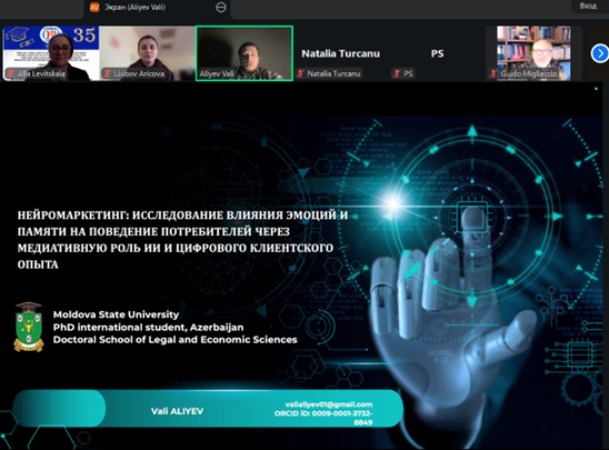 - Vali Aliyev (Moldova State University, Азербайджан) представил исследование в области нейромаркетинга, посвящённое анализу влияния эмоций и памяти на поведение потребителей через посредническую роль искусственного интеллекта и цифрового клиентского опыта.