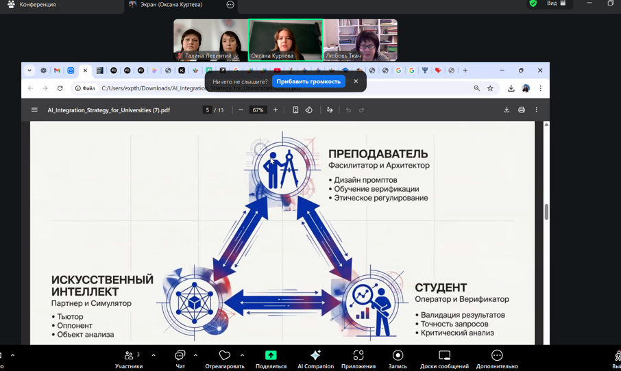 Цифровые технологии и ИИ: Куртева Оксана, доктор, конференциар подняла актуальную тему использования искусственного интеллекта, представив доклад «Применение нейросетевых ассистентов в учебном процессе вуза: дидактические подходы».