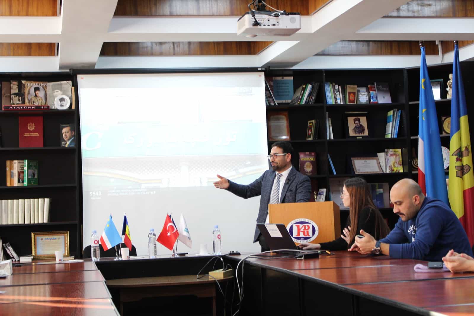 Во время визита, уважаемый профессор. Доктор. Адам ОГЕР провёл лекцию на тему “Тюркский мир и уйгурские турки”. На конференции он рассказал гостям и студентам где и как жили тюркские и уйгурские народы, корни и связи их народов, представив красивую презентацию. После презентации были заданы вопросы по этой теме.