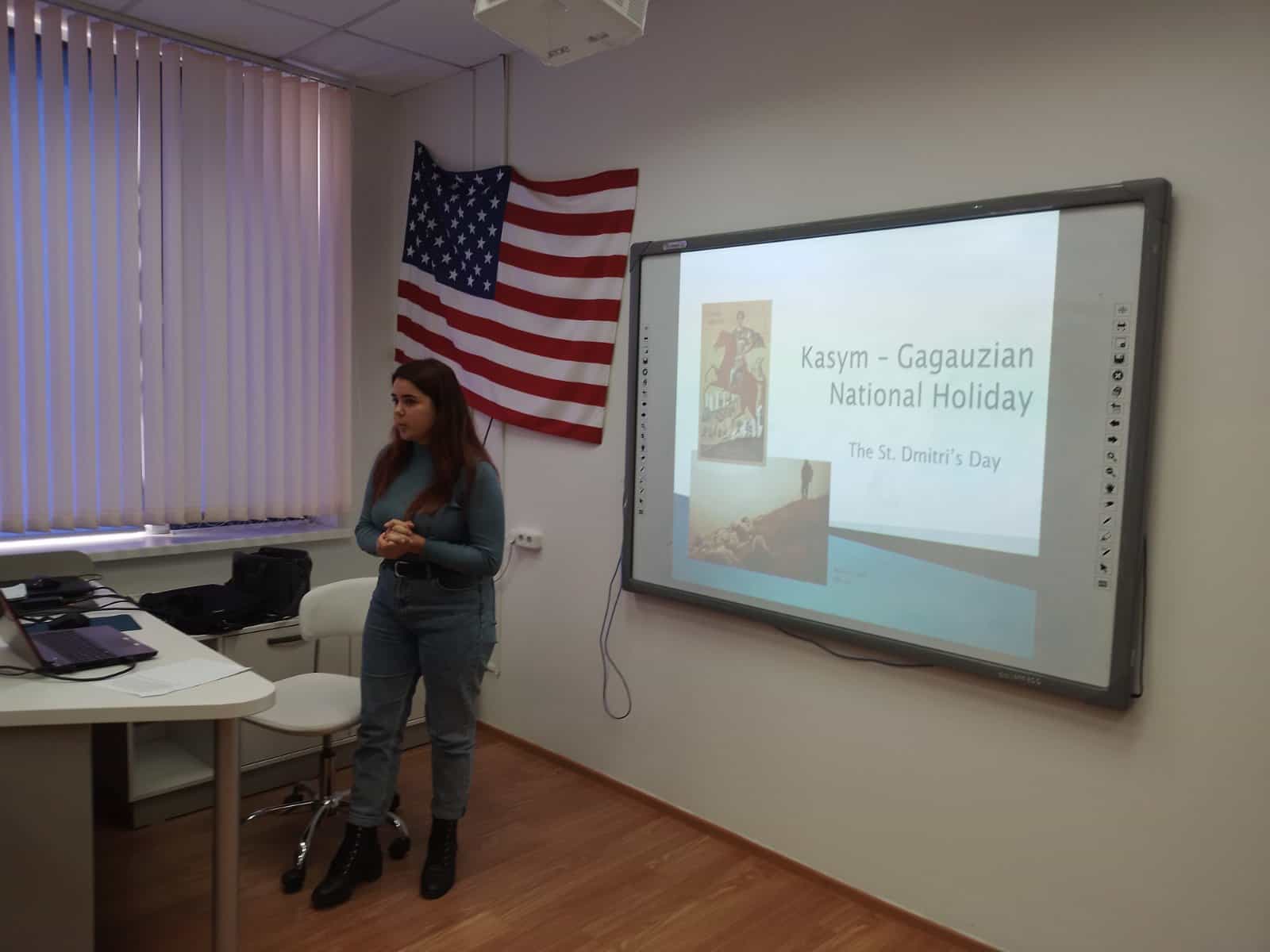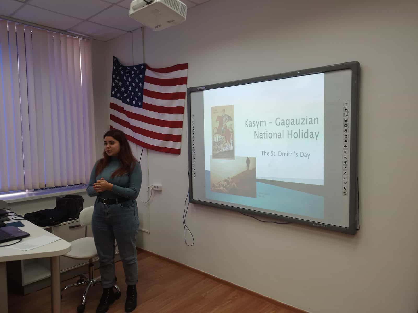 Стоит отметить тот факт, что все выступления студентов были на английском языке. Студенты побывали в роли переводчиков, так как им пришлось всю информацию переводить на английский язык. Кроме этого, им представилась прекрасная возможность на практике заимствовать слова из гагаузского языка в английский. Это такие слова как «Kasym, kurban, Allahlyk, klisyanin kurbany, steunoz kurban».