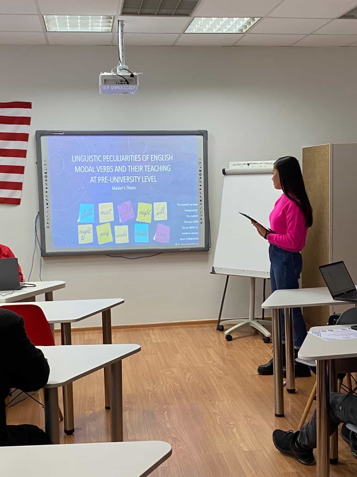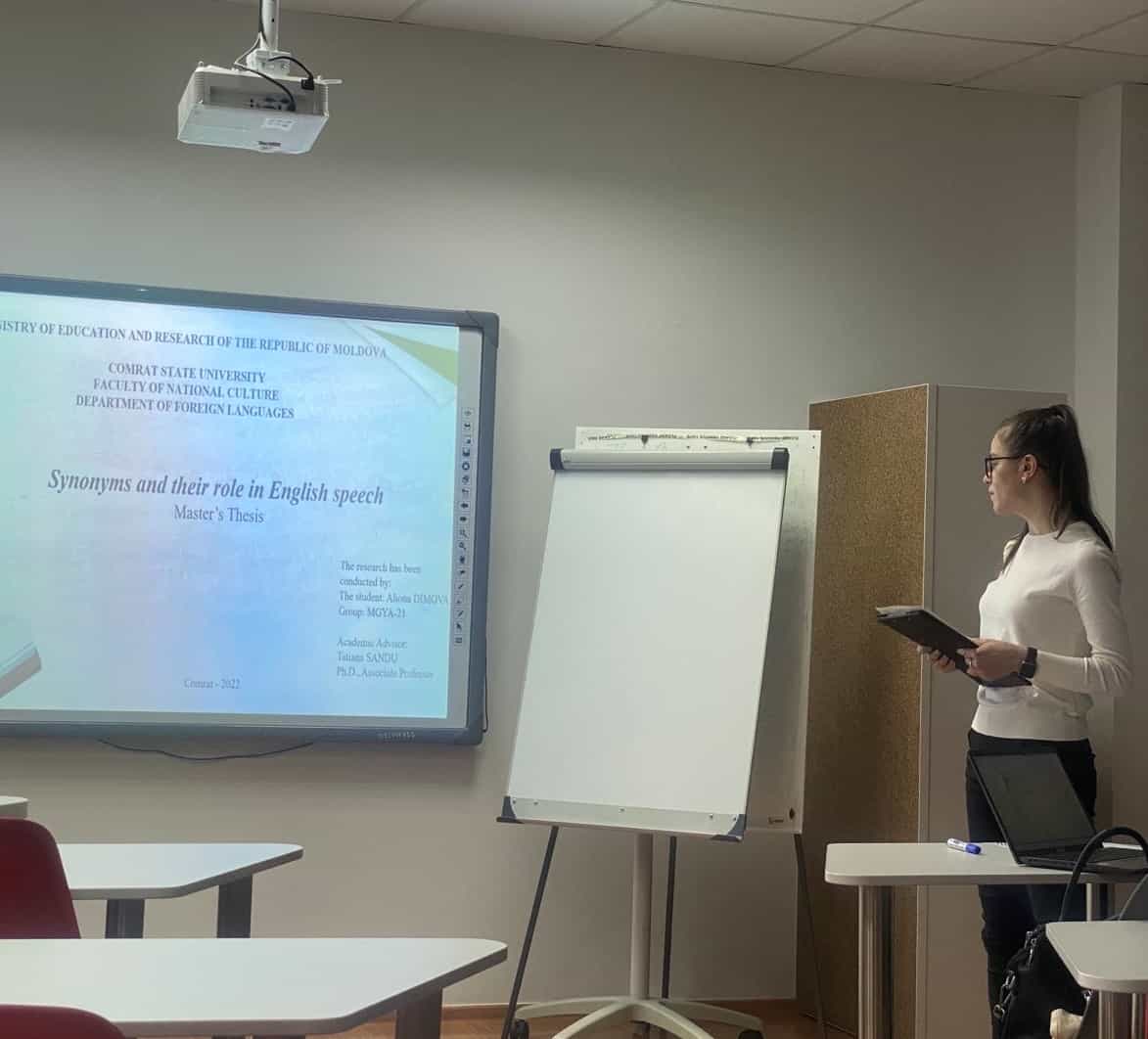 Наши магистранты трудятся в доуниверситетских учреждениях и имеют богатый преподавательский опыт, что и отражает содержание их магистерских диссертаций, имеющих прикладное лингводидактическое и педагогическое измерение. Тематика представленных работ широка и актуальна. Так, например, магистрантка Киор Людмила посвятила свою магистерскую диссертацию проблеме использования инновационных технологий в процессе обучения английскому языку; Калиогло Елена исследовала способы перевода английских идиом на русский язык; а Димова Алёна описала роль синонимов в развитии иноязычной коммуникативной компетенции студентов. Эти и другие работы отличаются продуманной структурой, эмпирической направленностью и обоснованностью выводов.